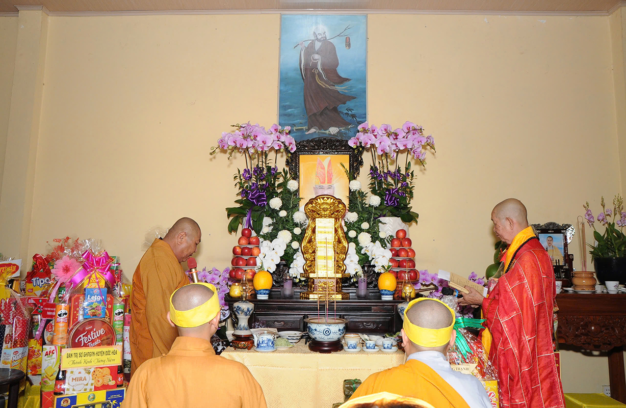 Buổi lễ có sự quang lâm chứng minh của: TLHT. Thích Thiện Huệ – Thành viên HĐCM TƯ, Chứng minh BTS GHPGVN tỉnh Long An; HT. Thích Thiện Tài – Chứng minh BTS GHPGVN tỉnh; HT. Thích Minh Thiện – UV HĐTS, Phó Trưởng Ban Hoằng pháp TƯ, Trưởng BTS GHPGVN tỉnh; TT. Thích Quảng Tâm – UV HĐTS, Phó ban Từ thiện Xã hội TƯ, Phó Trưởng ban Thường trực BTS GPHGVN tỉnh; ĐĐ. Thích Lệ Duyên – Phó ban kiêm Chánh Thư ký BTS GHPGVN tỉnh, Trưởng BTS GHPGVN huyện Đức Hòa; Chư tôn đức Tăng Ni đồng về chứng minh và tham dự.