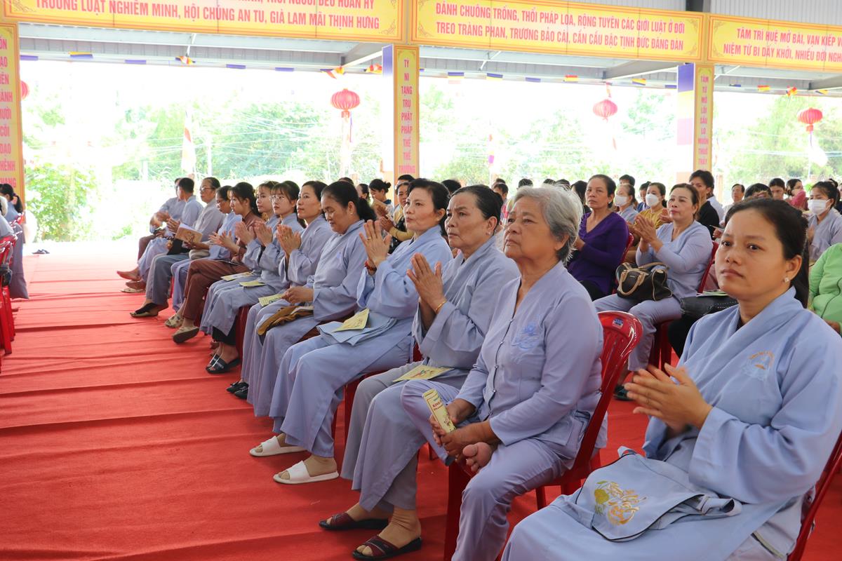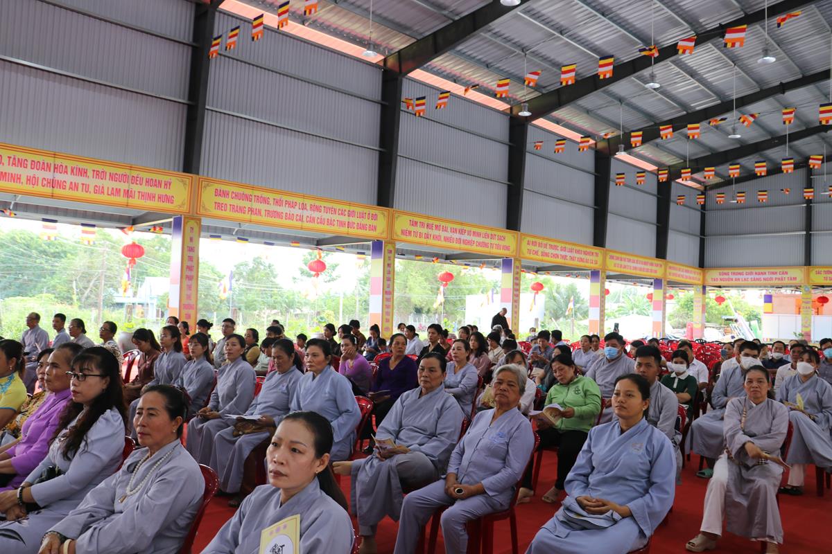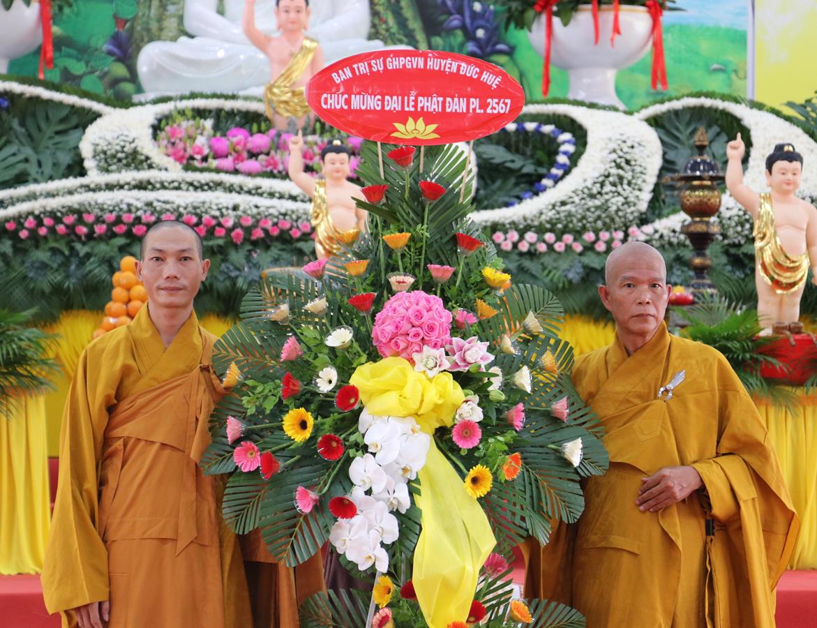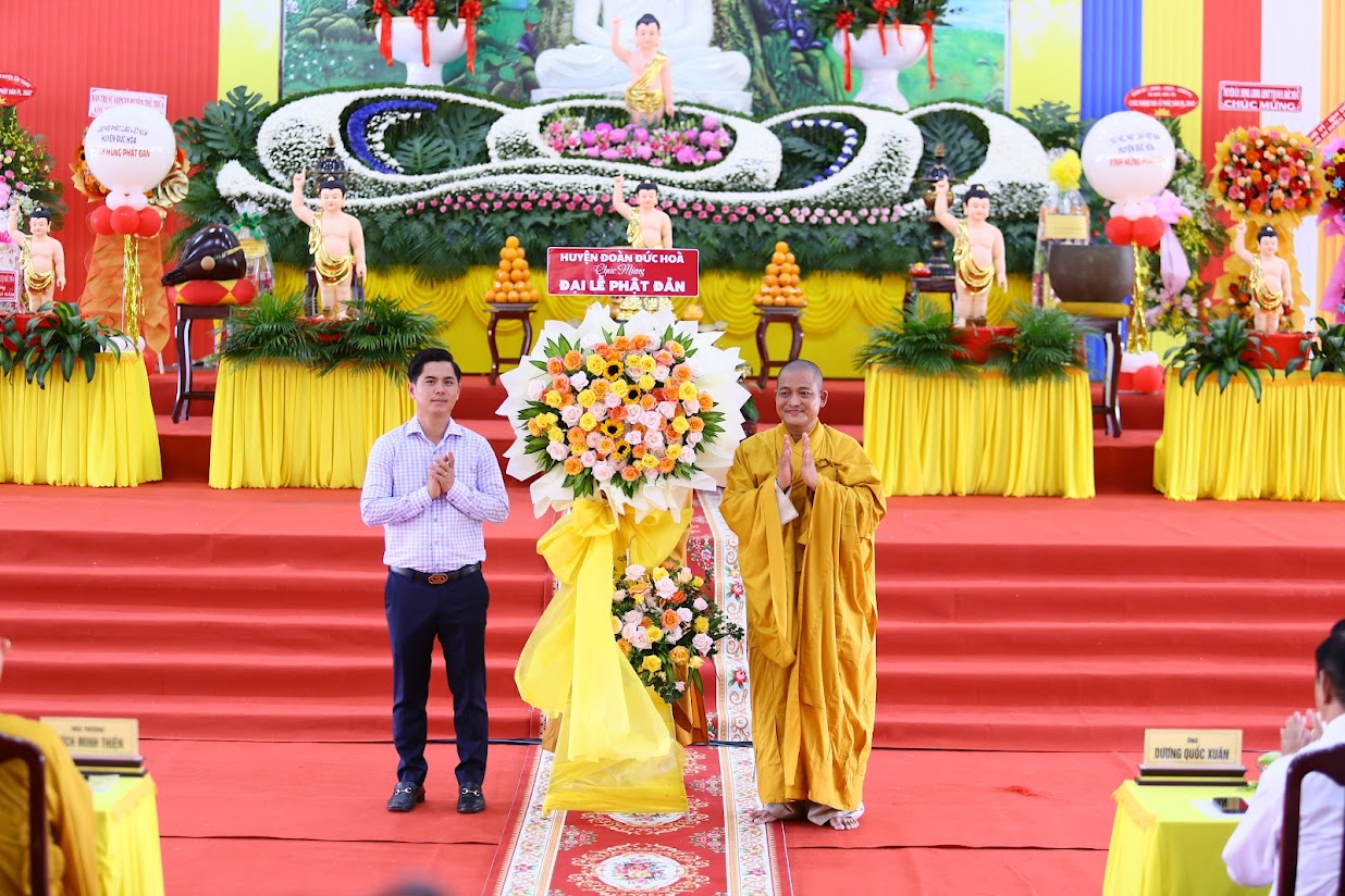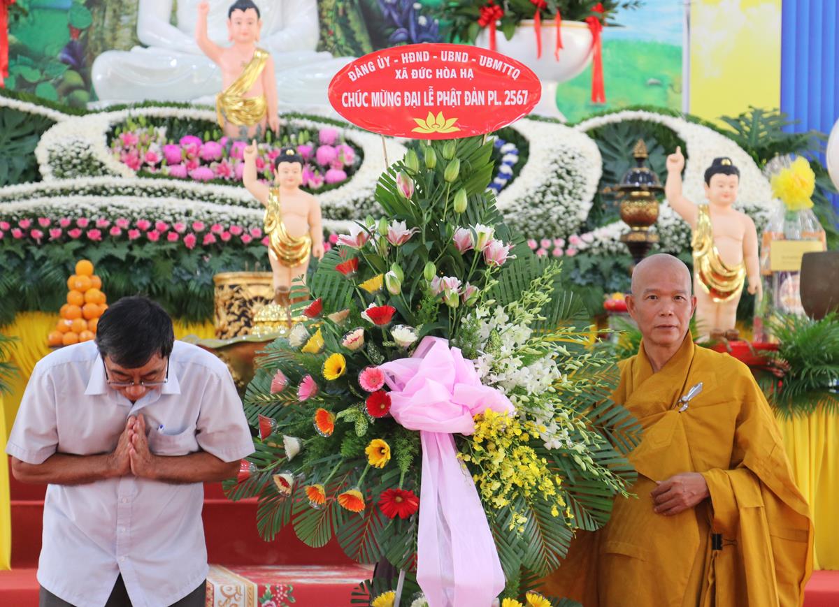 Quang lâm chứng minh và tham dự buổi lễ có: HT. Thích Huệ Hồng, HT. Thích Quảng Ý – đồng Chứng minh BTS GHPGVN tỉnh Long An; HT. Thích Minh Thiện – UV HĐTS, Phó ban Hoằng pháp TW, Trưởng BTS GHPVN tỉnh Long An, Chứng minh BTS GHPGVN huyện Đức Hòa; TT. Thích Quảng Tâm – UV HĐTS, Phó ban Từ thiện Xã hội TW, Phó Trưởng ban Thường trực BTS GHPGVN tỉnh; Chư tôn đức Phó BTS GHPGVN tỉnh: TT. Thích Minh Thọ, TT. Thích Đức Hoàng; ĐĐ. Thích Lệ Duyên – Phó ban kiêm Chánh Thư ký BTS GHPGVN tỉnh, Trưởng BTS GHPGVN huyện, Trưởng ban Tổ chức; TT. Thích Nhuận Thành – Trưởng ban Kinh tế Tài chính GHPGVN tỉnh, Phó BTS kiêm Trưởng ban Kinh tế Tài chính huyện; TT. Thích Phước Cường – Trưởng ban Nghi lễ GHPGVN tỉnh; TT. Thích Lệ Tấn – Trưởng BTS GHPGVN huyện Tân Thạnh; TT. Thích Minh Trung – Phó Trưởng ban Thường trực BTS GHPGVN huyện Đức Hòa; ĐĐ. Thích Trí Minh – Trưởng BTS GHPGVN huyện Cần Đước; ĐĐ. Thích An Khang – Trưởng BTS GHPGVN huyện Vĩnh Hưng; Chư tôn đức Ban Thường trực BTS GHPGVN tỉnh Long An, huyện Đức Hòa, huyện Đức Huệ, huyện Tân Thạnh, huyện Châu Thành, huyện Cần Đước, huyện Thủ Thừa… Tăng Ni tu học trên địa bàn huyện Đức Hòa, Tăng Ni sinh Lớp Sơ cấp Phật học Long An, Trường TCPH Long An đồng về tham dự.