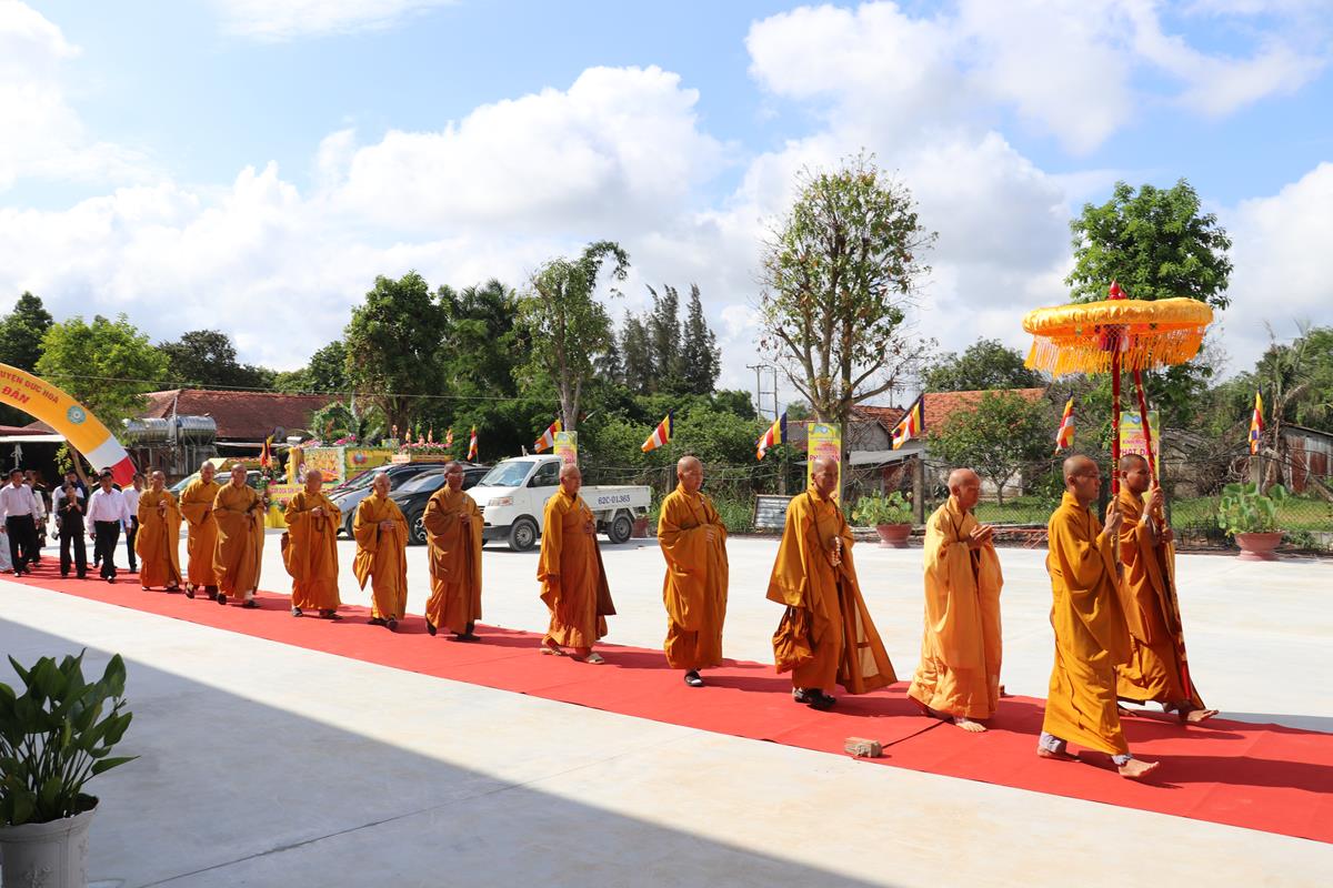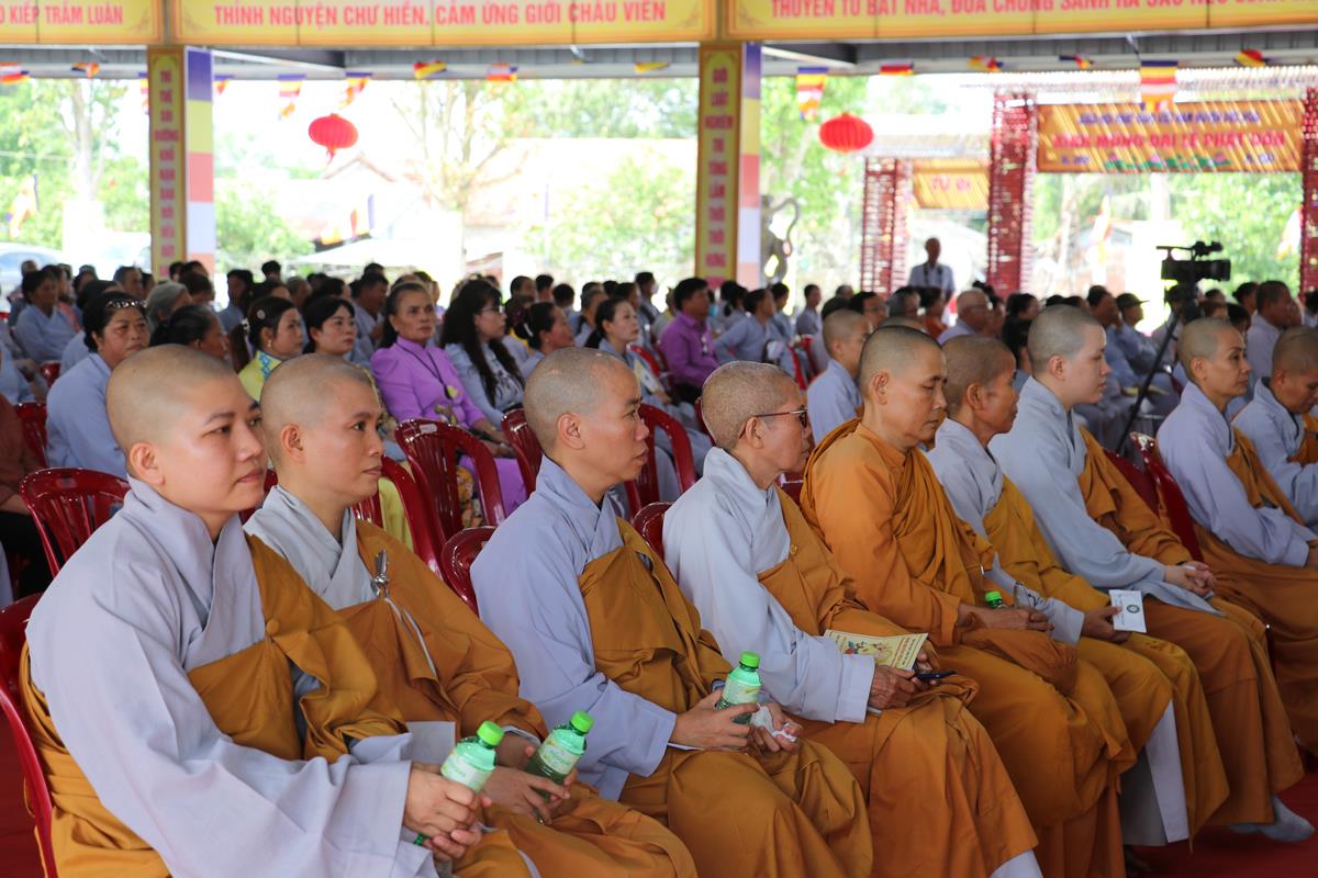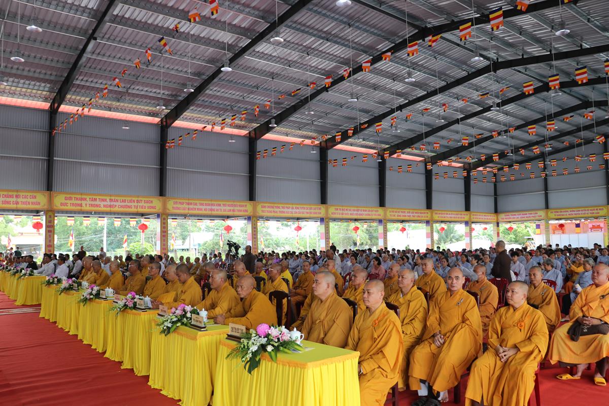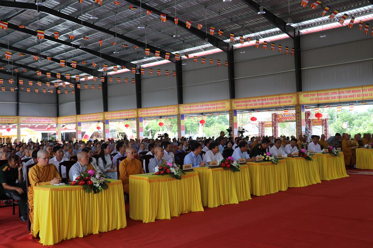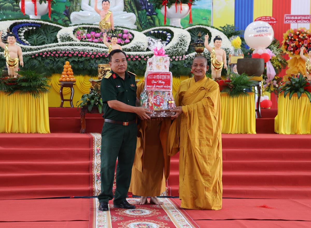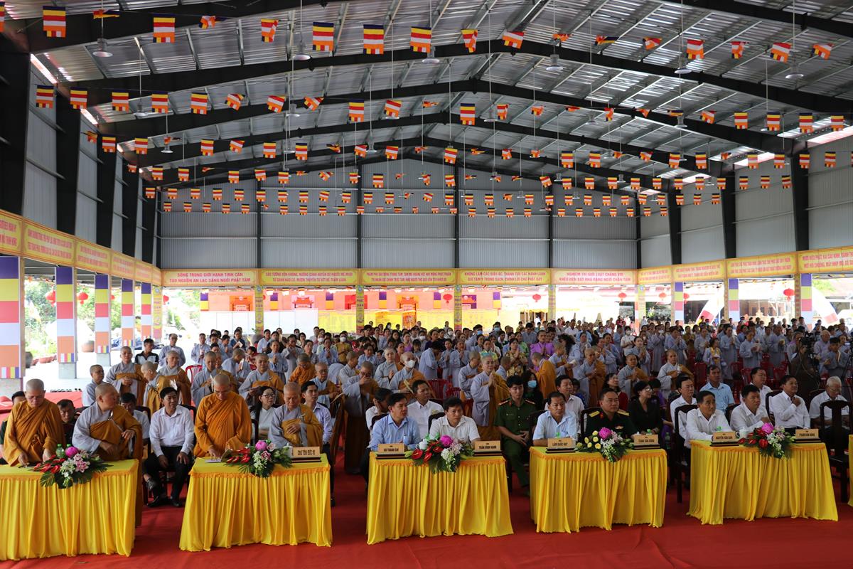 Quang lâm chứng minh và tham dự buổi lễ có: HT. Thích Huệ Hồng, HT. Thích Quảng Ý – đồng Chứng minh BTS GHPGVN tỉnh Long An; HT. Thích Minh Thiện – UV HĐTS, Phó ban Hoằng pháp TW, Trưởng BTS GHPVN tỉnh Long An, Chứng minh BTS GHPGVN huyện Đức Hòa; TT. Thích Quảng Tâm – UV HĐTS, Phó ban Từ thiện Xã hội TW, Phó Trưởng ban Thường trực BTS GHPGVN tỉnh; Chư tôn đức Phó BTS GHPGVN tỉnh: TT. Thích Minh Thọ, TT. Thích Đức Hoàng; ĐĐ. Thích Lệ Duyên – Phó ban kiêm Chánh Thư ký BTS GHPGVN tỉnh, Trưởng BTS GHPGVN huyện, Trưởng ban Tổ chức; TT. Thích Nhuận Thành – Trưởng ban Kinh tế Tài chính GHPGVN tỉnh, Phó BTS kiêm Trưởng ban Kinh tế Tài chính huyện; TT. Thích Phước Cường – Trưởng ban Nghi lễ GHPGVN tỉnh; TT. Thích Lệ Tấn – Trưởng BTS GHPGVN huyện Tân Thạnh; TT. Thích Minh Trung – Phó Trưởng ban Thường trực BTS GHPGVN huyện Đức Hòa; ĐĐ. Thích Trí Minh – Trưởng BTS GHPGVN huyện Cần Đước; ĐĐ. Thích An Khang – Trưởng BTS GHPGVN huyện Vĩnh Hưng; Chư tôn đức Ban Thường trực BTS GHPGVN tỉnh Long An, huyện Đức Hòa, huyện Đức Huệ, huyện Tân Thạnh, huyện Châu Thành, huyện Cần Đước, huyện Thủ Thừa… Tăng Ni tu học trên địa bàn huyện Đức Hòa, Tăng Ni sinh Lớp Sơ cấp Phật học Long An, Trường TCPH Long An đồng về tham dự.