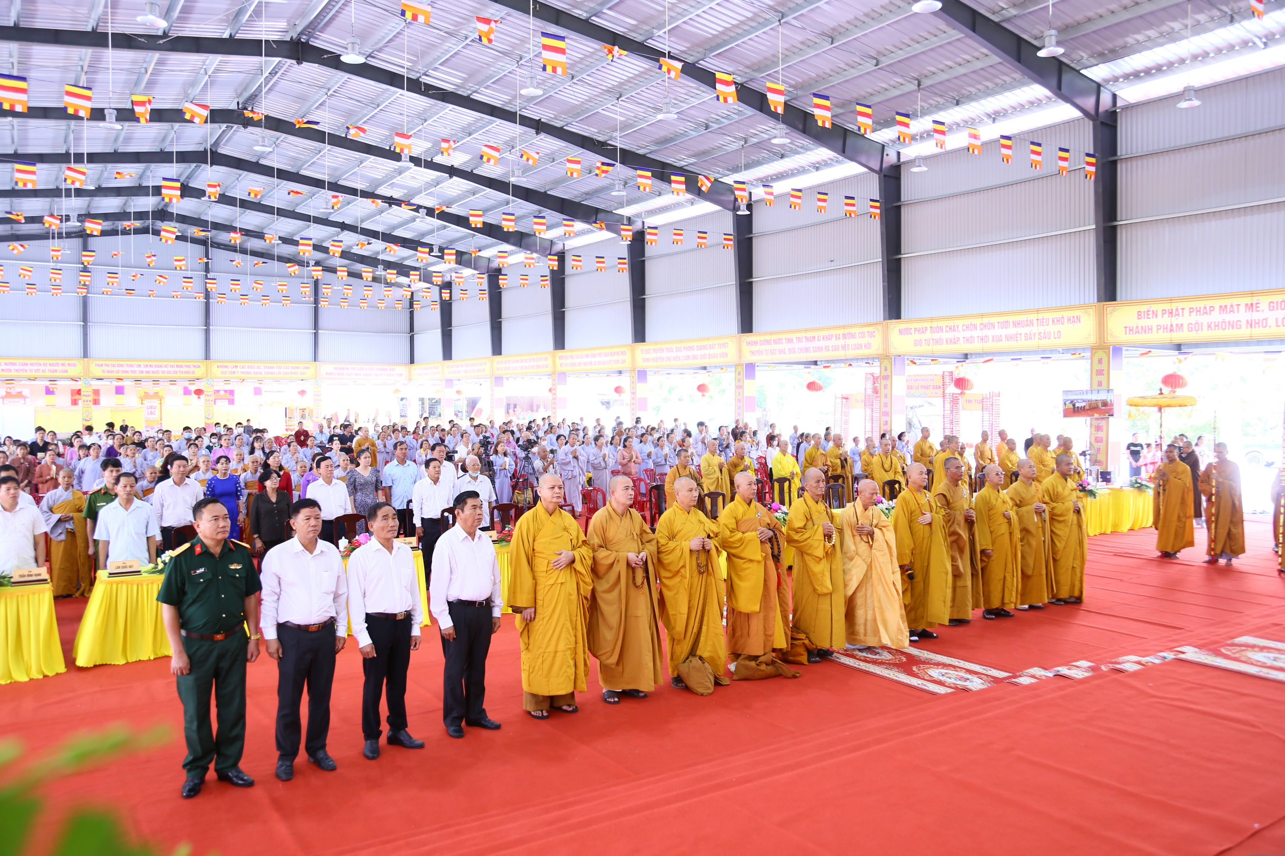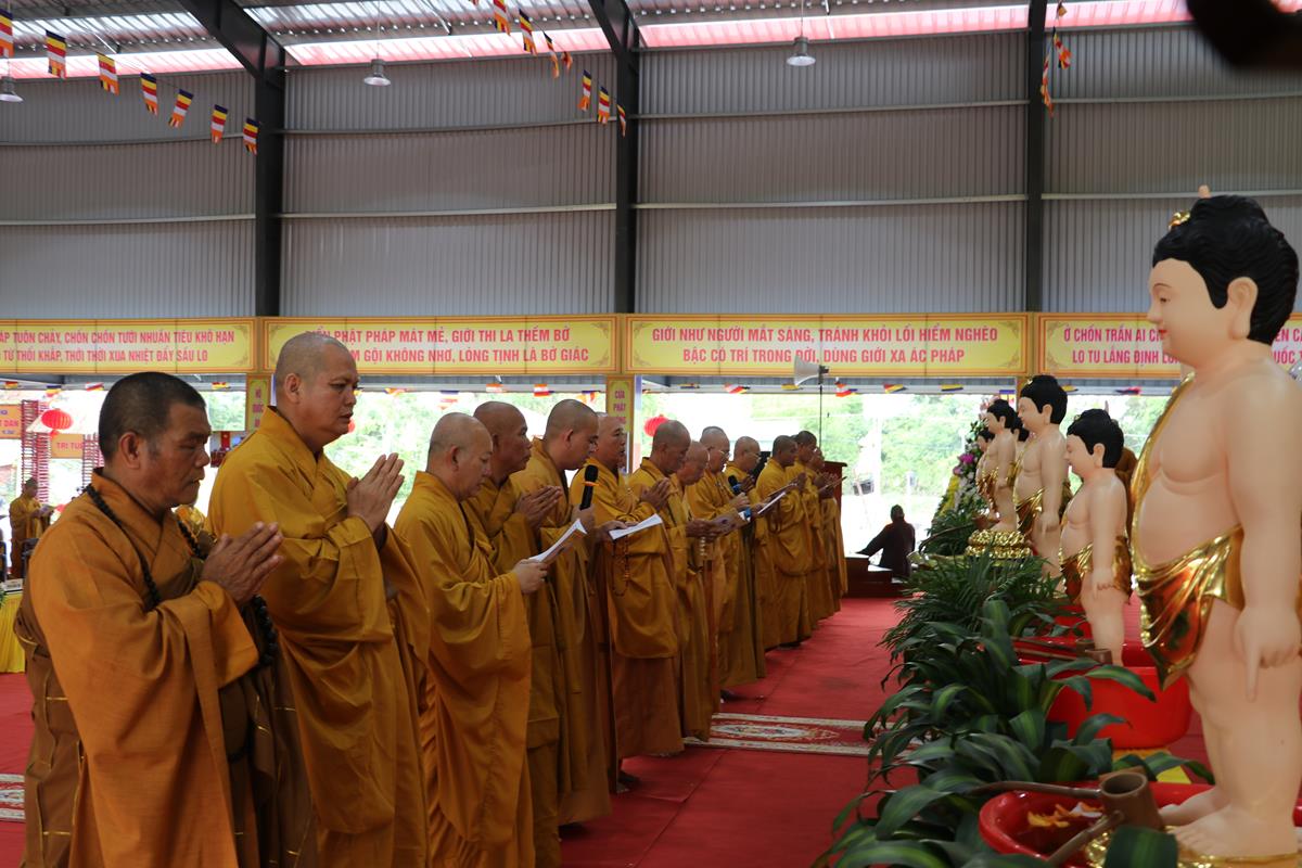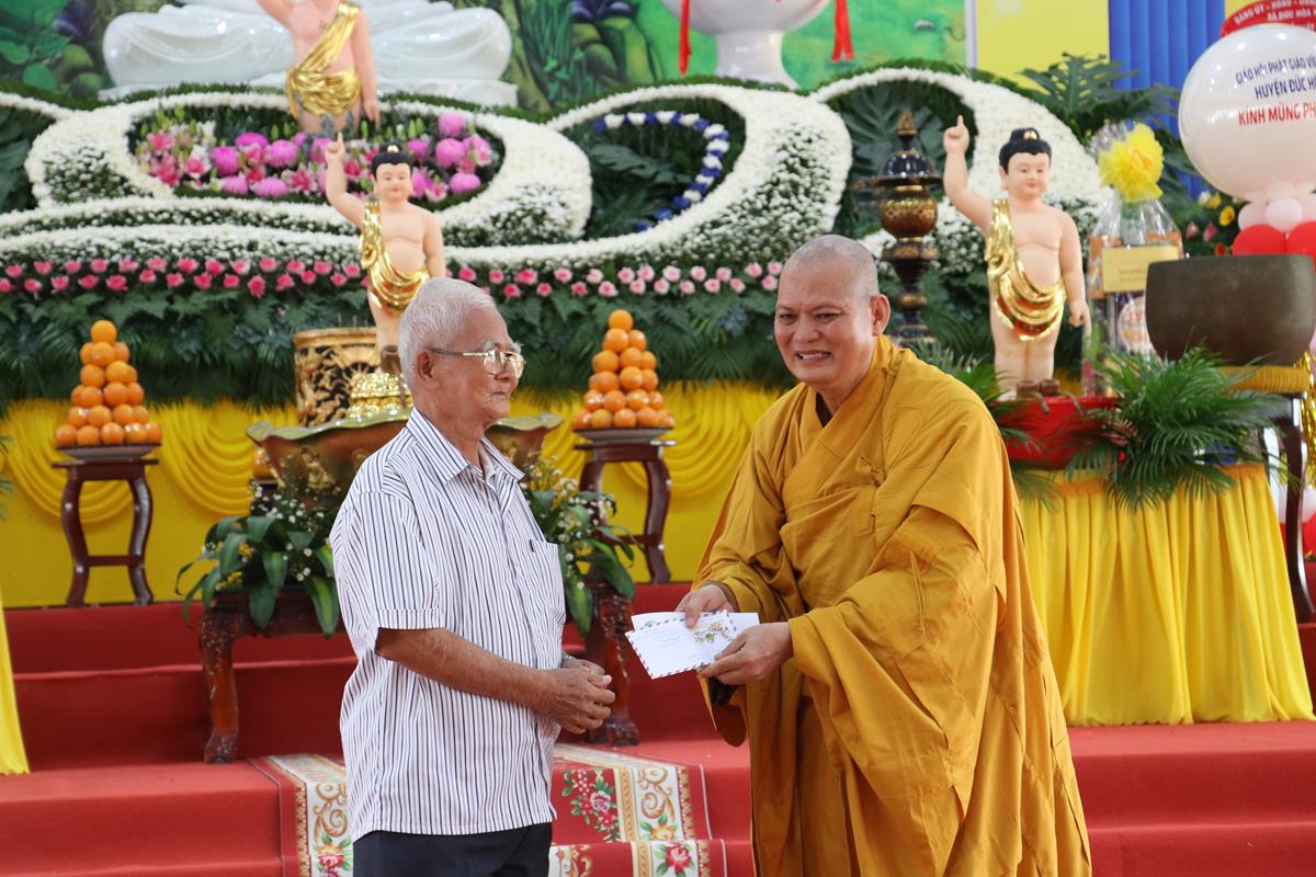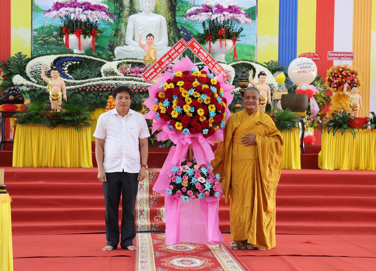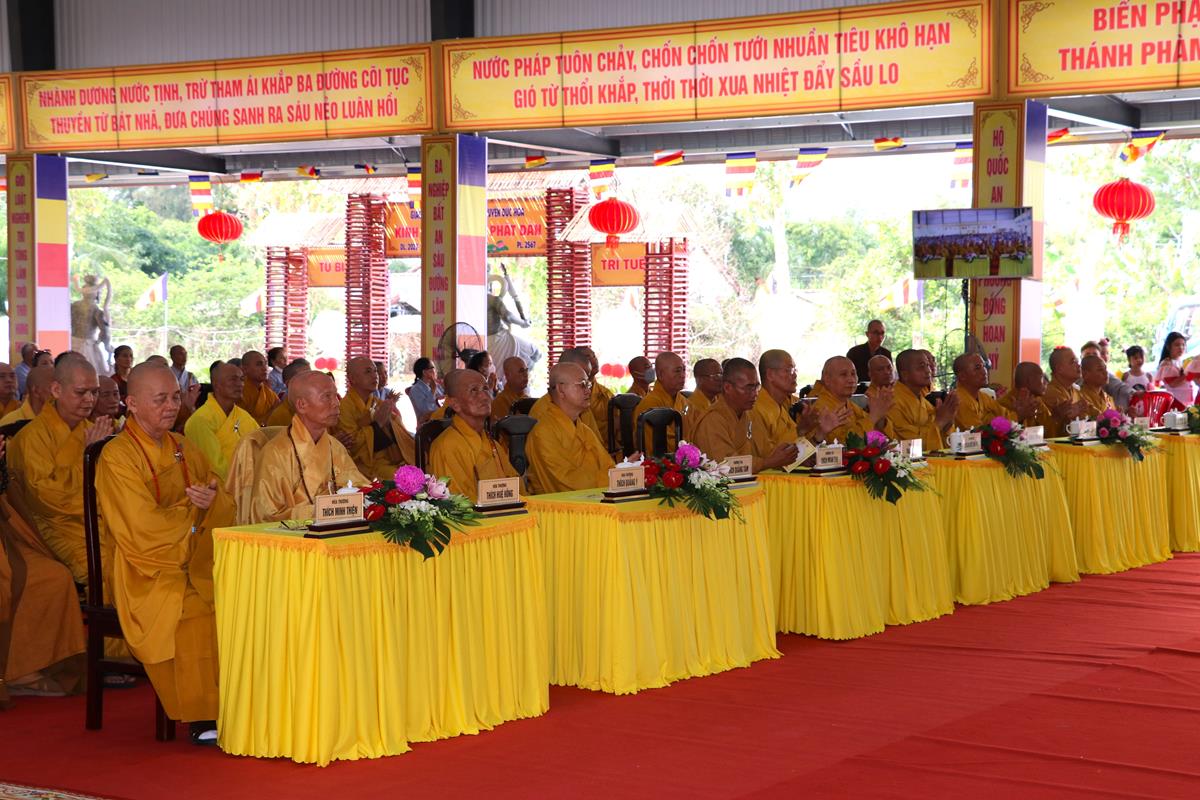 Quang lâm chứng minh và tham dự buổi lễ có: HT. Thích Huệ Hồng, HT. Thích Quảng Ý – đồng Chứng minh BTS GHPGVN tỉnh Long An; HT. Thích Minh Thiện – UV HĐTS, Phó ban Hoằng pháp TW, Trưởng BTS GHPVN tỉnh Long An, Chứng minh BTS GHPGVN huyện Đức Hòa; TT. Thích Quảng Tâm – UV HĐTS, Phó ban Từ thiện Xã hội TW, Phó Trưởng ban Thường trực BTS GHPGVN tỉnh; Chư tôn đức Phó BTS GHPGVN tỉnh: TT. Thích Minh Thọ, TT. Thích Đức Hoàng; ĐĐ. Thích Lệ Duyên – Phó ban kiêm Chánh Thư ký BTS GHPGVN tỉnh, Trưởng BTS GHPGVN huyện, Trưởng ban Tổ chức; TT. Thích Nhuận Thành – Trưởng ban Kinh tế Tài chính GHPGVN tỉnh, Phó BTS kiêm Trưởng ban Kinh tế Tài chính huyện; TT. Thích Phước Cường – Trưởng ban Nghi lễ GHPGVN tỉnh; TT. Thích Lệ Tấn – Trưởng BTS GHPGVN huyện Tân Thạnh; TT. Thích Minh Trung – Phó Trưởng ban Thường trực BTS GHPGVN huyện Đức Hòa; ĐĐ. Thích Trí Minh – Trưởng BTS GHPGVN huyện Cần Đước; ĐĐ. Thích An Khang – Trưởng BTS GHPGVN huyện Vĩnh Hưng; Chư tôn đức Ban Thường trực BTS GHPGVN tỉnh Long An, huyện Đức Hòa, huyện Đức Huệ, huyện Tân Thạnh, huyện Châu Thành, huyện Cần Đước, huyện Thủ Thừa… Tăng Ni tu học trên địa bàn huyện Đức Hòa, Tăng Ni sinh Lớp Sơ cấp Phật học Long An, Trường TCPH Long An đồng về tham dự.