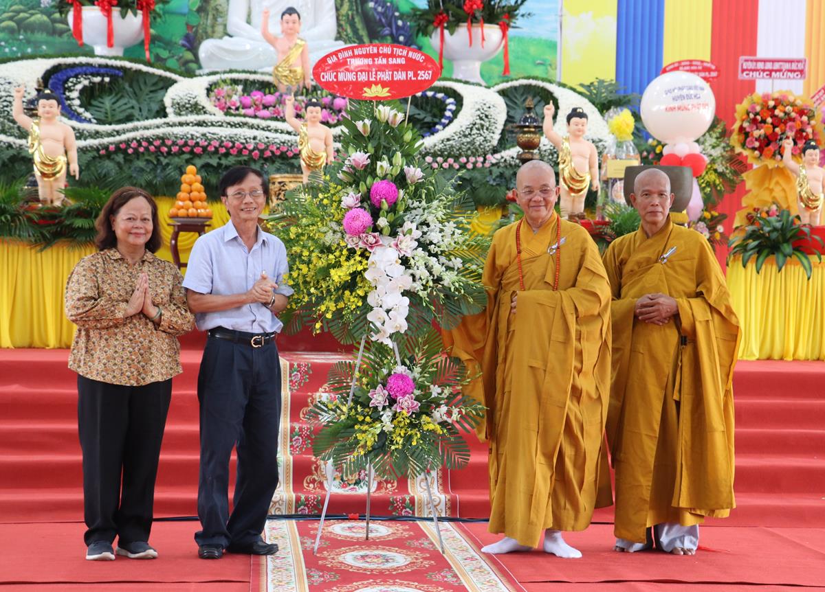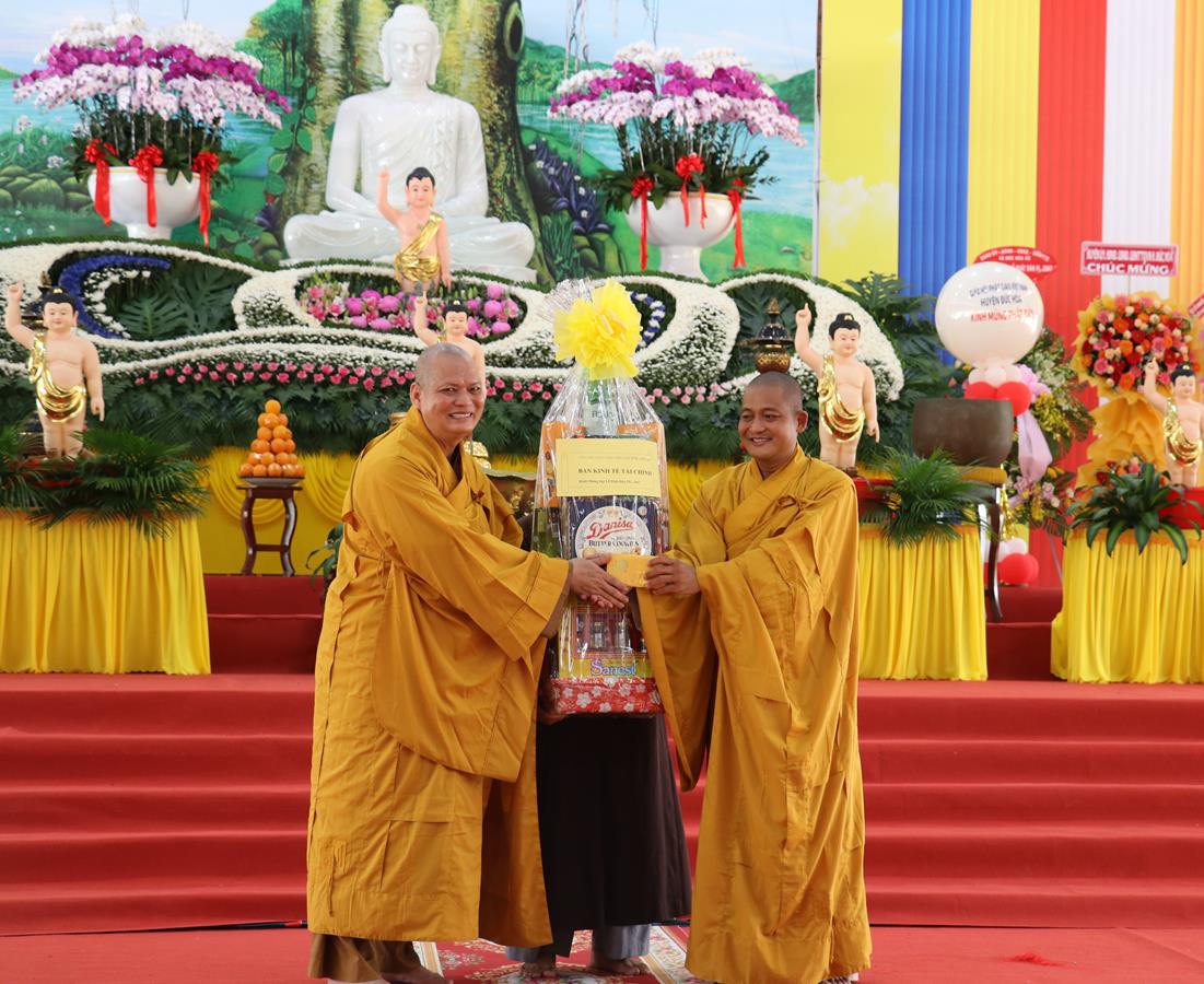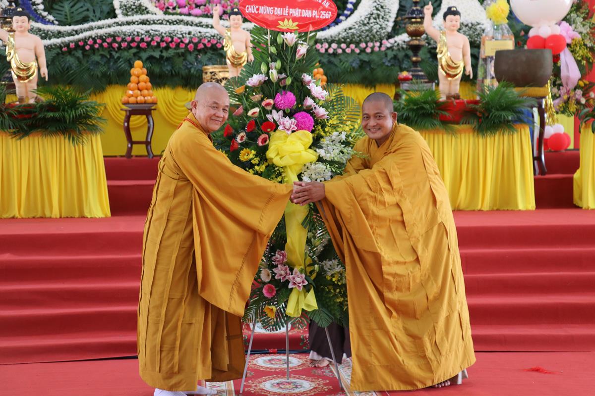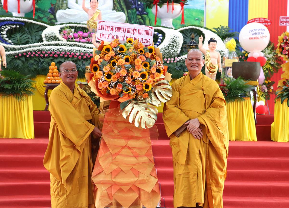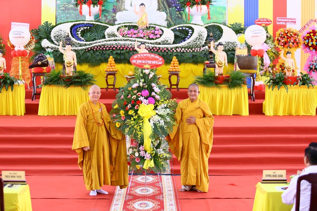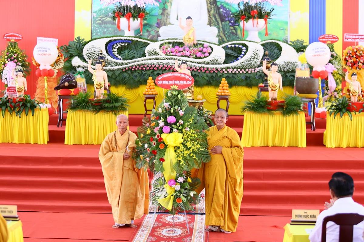 Tại buổi lễ Ban tổ chức đã được đón nhận nhiều lẵng hoa, phần quà quý báu từ Chư tôn đức Ban Trị sự các huyện thị trực thuộc tỉnh, Chư tôn đức Tăng Ni trụ trì các Tự viện, quý chức sắc đại diện Tôn giáo bạn, quý lãnh đạo chính quyền khách quý, ban ngành đoàn thể, hội đồng bào cộng đồng doanh nghiệp, Phật tử chúc mừng.
