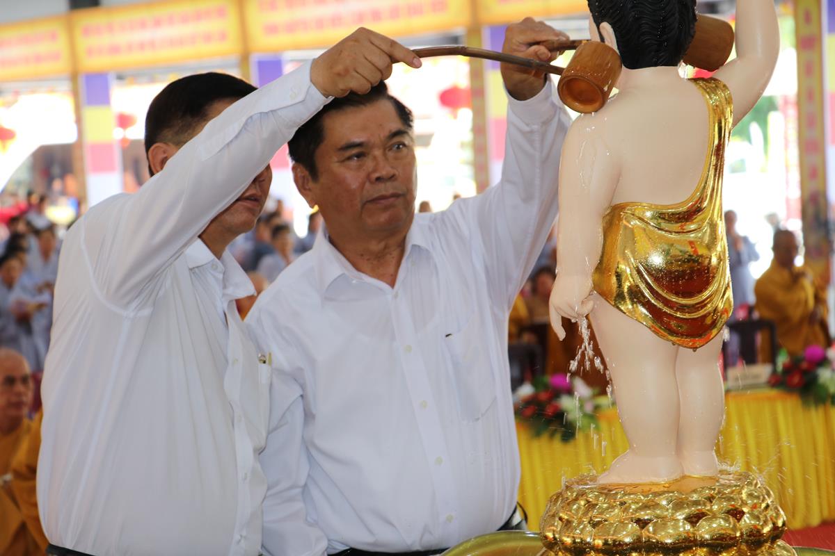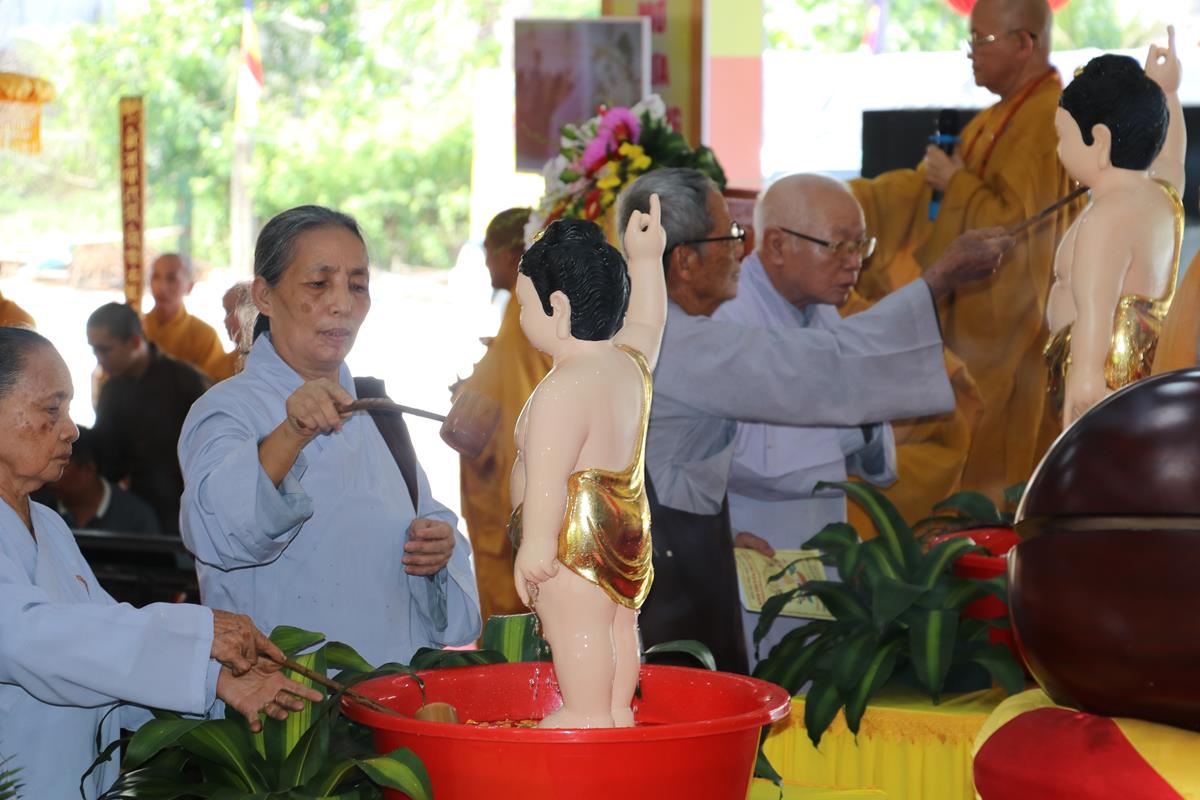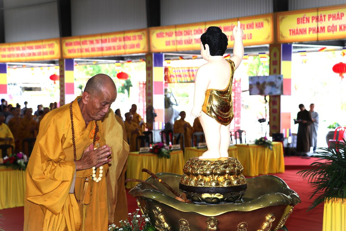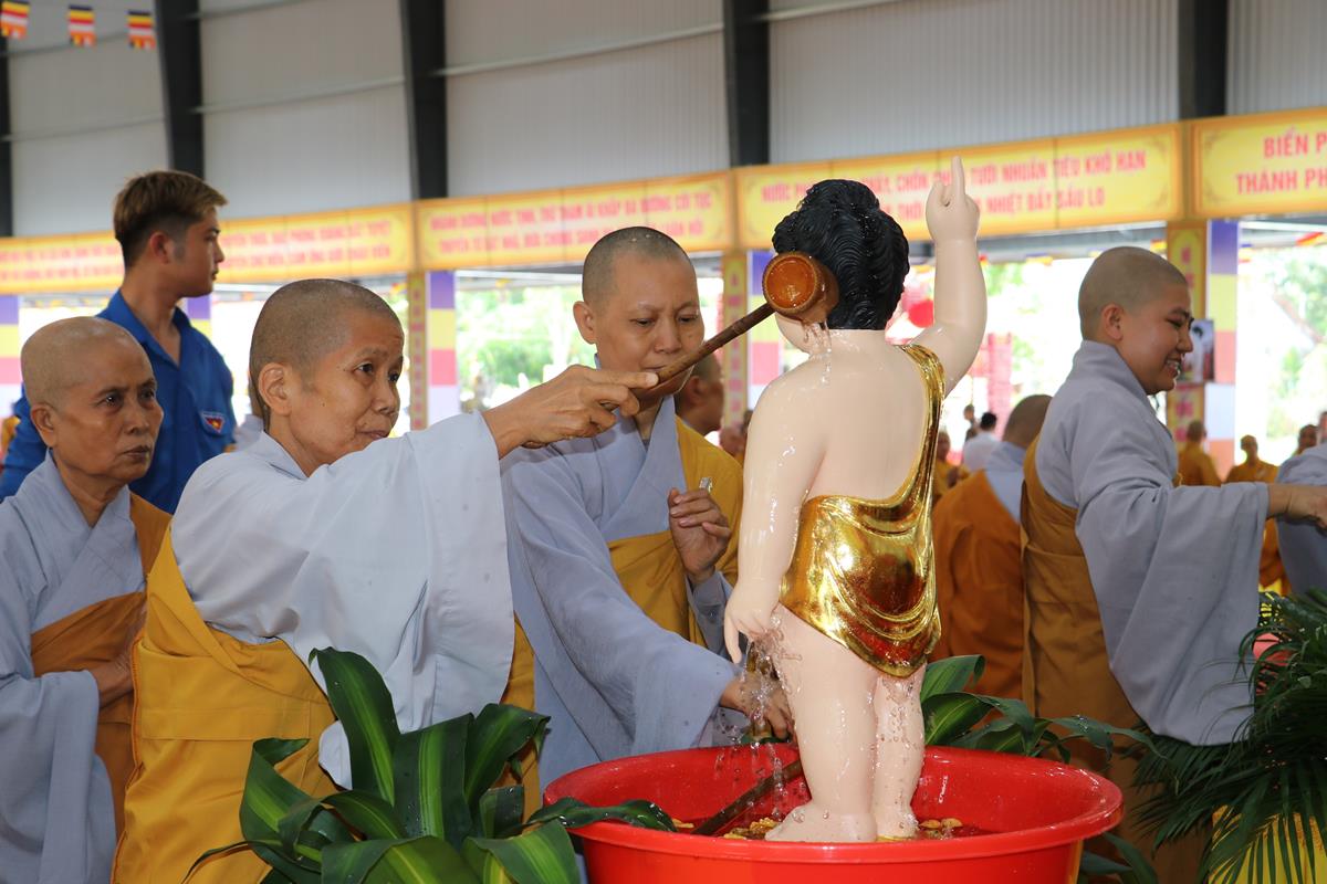Sau lễ hành chính, dưới sự chứng minh của Chư tôn đức, toàn thể hội trường đồng âm phúng tụng Kinh Chuyển Pháp Luân theo khóa tụng thống nhất của Ban Văn hóa TƯ. Tiếp sau Nghi thức Tắm Phật được diễn ra trong không khí trang ngiêm, trọng thể, Ban tổ chức và đại chúng hồi hướng hoàn mãn, kết thúc buổi lễ.