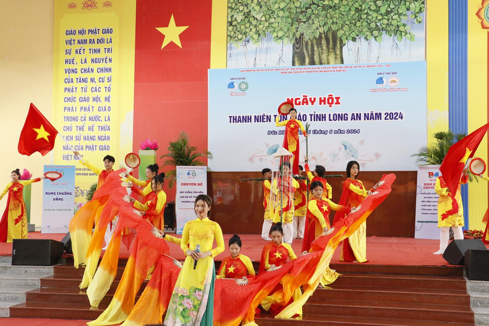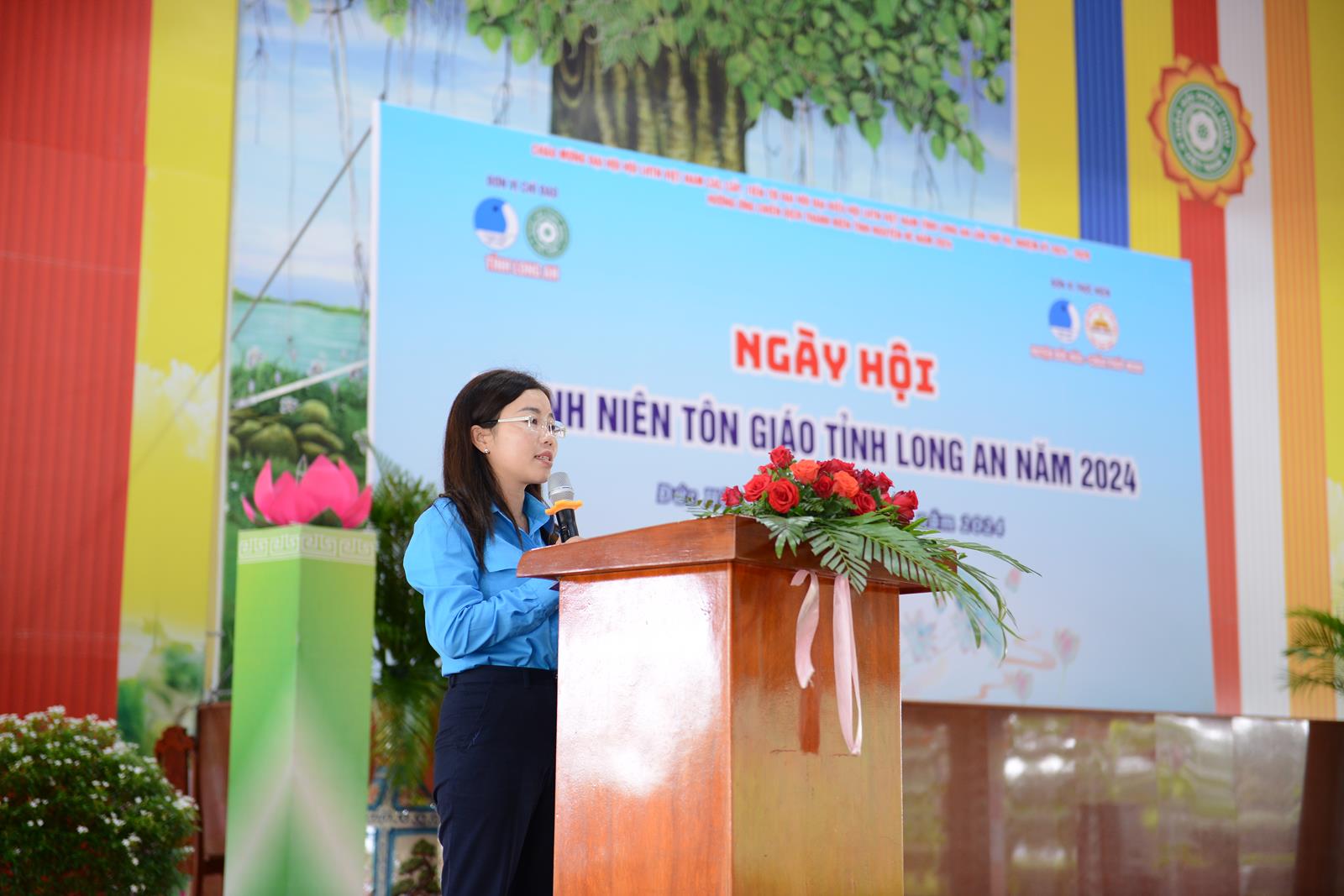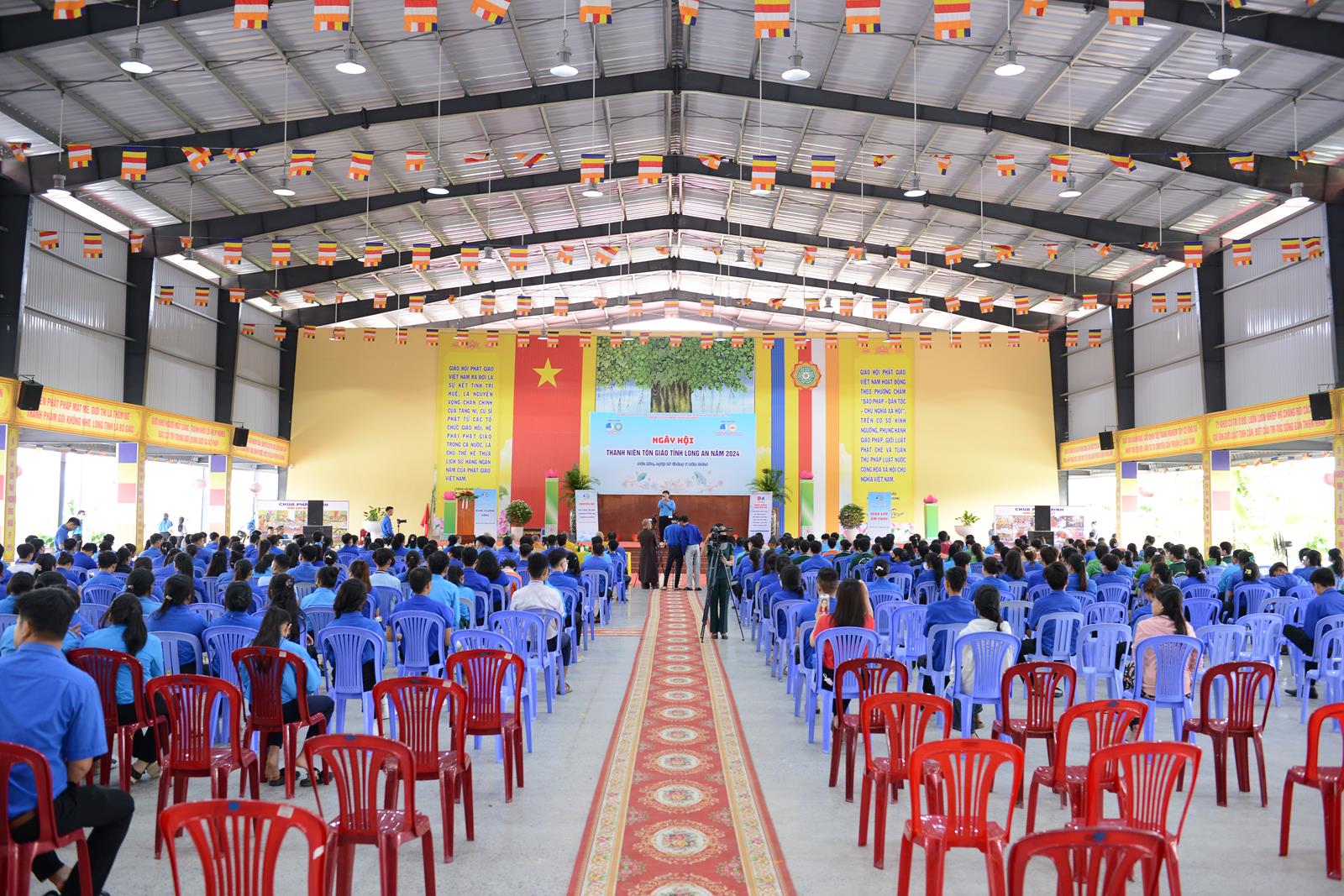Tại Lễ Khai mạc, Hoà thượng Thích Minh Thiện – Trưởng BTS GHPGVN tỉnh Long An có lời phát biểu. Hòa thượng đã gởi lời vấn an trân trọng đến quý đại biểu, khách mời cùng các Đoàn viên thanh niên có mặt tại ngày hội và kính chúc ngày hội diễn ra thành công tốt đẹp. Hòa thượng nhắc nhở các bạn đoàn viên, thanh niên là Phật tử hoặc theo tín ngưỡng Phật giáo; các bạn hãy quan tâm thực hành theo lời Đức Phật dạy “không làm các điều ác, siêng làm các việc lành, giữ tâm ý trong sạch” và nhất là giữ gìn năm điều đạo đức, để xây dựng hạnh phúc ngay trong cuộc đời này: (1) không giết hại chúng sinh nhằm nuôi dưỡng lòng từ bi, tôn trọng sự sống của muôn loài, (2) không trộm cắp nhằm tôn trọng sở hữu của mọi người (2) không tà dâm để bảo vệ hạnh phúc lứa đôi, hạnh phúc gia đình (4) không nói dối, nhằm tôn trọng sự thật (5) không sử dụng rượu bia, các chất gây nghiện, không sa đọa nhằm bảo toàn hạt giống trí tuệ và ngăn ngừa những nguyên nhân sinh ra tội lỗi. Hòa thượng mong rằng các bạn đoàn viên, thanh niên hãy đoàn kết thật tốt phát huy hết khả năng của mình để học tập, rèn luyện bản thân, lao động sáng tạo để trở thành hiền tài, trụ cột của đất nước, góp phần phát triển quê hương Long An nói riêng, Việt Nam nói chung ngày càng phát triển, văn minh, giàu đẹp.