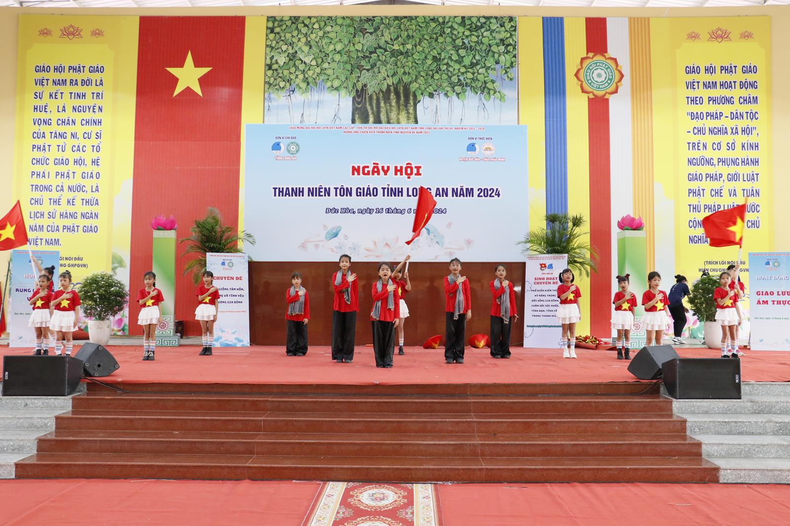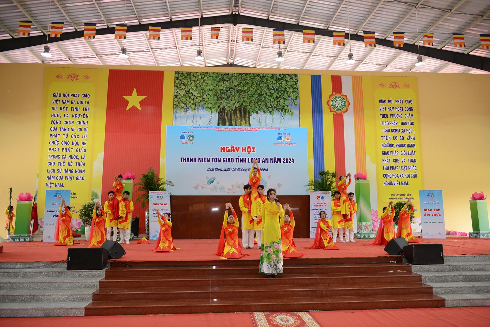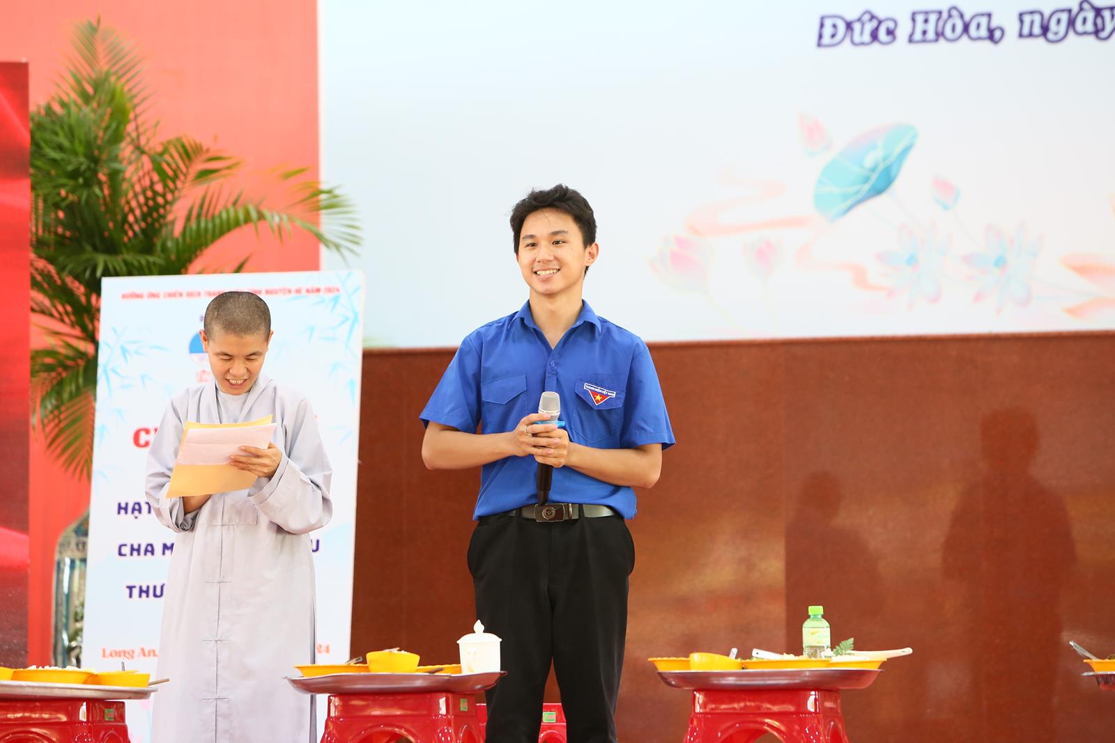 Tại Lễ Khai mạc, Hoà thượng Thích Minh Thiện – Trưởng BTS GHPGVN tỉnh Long An có lời phát biểu. Hòa thượng đã gởi lời vấn an trân trọng đến quý đại biểu, khách mời cùng các Đoàn viên thanh niên có mặt tại ngày hội và kính chúc ngày hội diễn ra thành công tốt đẹp. Hòa thượng nhắc nhở các bạn đoàn viên, thanh niên là Phật tử hoặc theo tín ngưỡng Phật giáo; các bạn hãy quan tâm thực hành theo lời Đức Phật dạy “không làm các điều ác, siêng làm các việc lành, giữ tâm ý trong sạch” và nhất là giữ gìn năm điều đạo đức, để xây dựng hạnh phúc ngay trong cuộc đời này: (1) không giết hại chúng sinh nhằm nuôi dưỡng lòng từ bi, tôn trọng sự sống của muôn loài, (2) không trộm cắp nhằm tôn trọng sở hữu của mọi người (2) không tà dâm để bảo vệ hạnh phúc lứa đôi, hạnh phúc gia đình (4) không nói dối, nhằm tôn trọng sự thật (5) không sử dụng rượu bia, các chất gây nghiện, không sa đọa nhằm bảo toàn hạt giống trí tuệ và ngăn ngừa những nguyên nhân sinh ra tội lỗi. Hòa thượng mong rằng các bạn đoàn viên, thanh niên hãy đoàn kết thật tốt phát huy hết khả năng của mình để học tập, rèn luyện bản thân, lao động sáng tạo để trở thành hiền tài, trụ cột của đất nước, góp phần phát triển quê hương Long An nói riêng, Việt Nam nói chung ngày càng phát triển, văn minh, giàu đẹp.