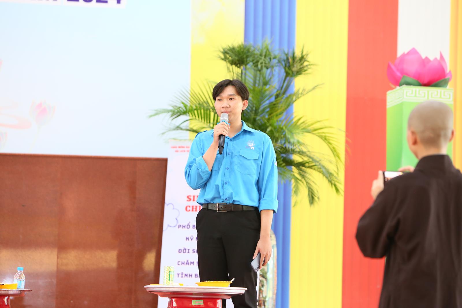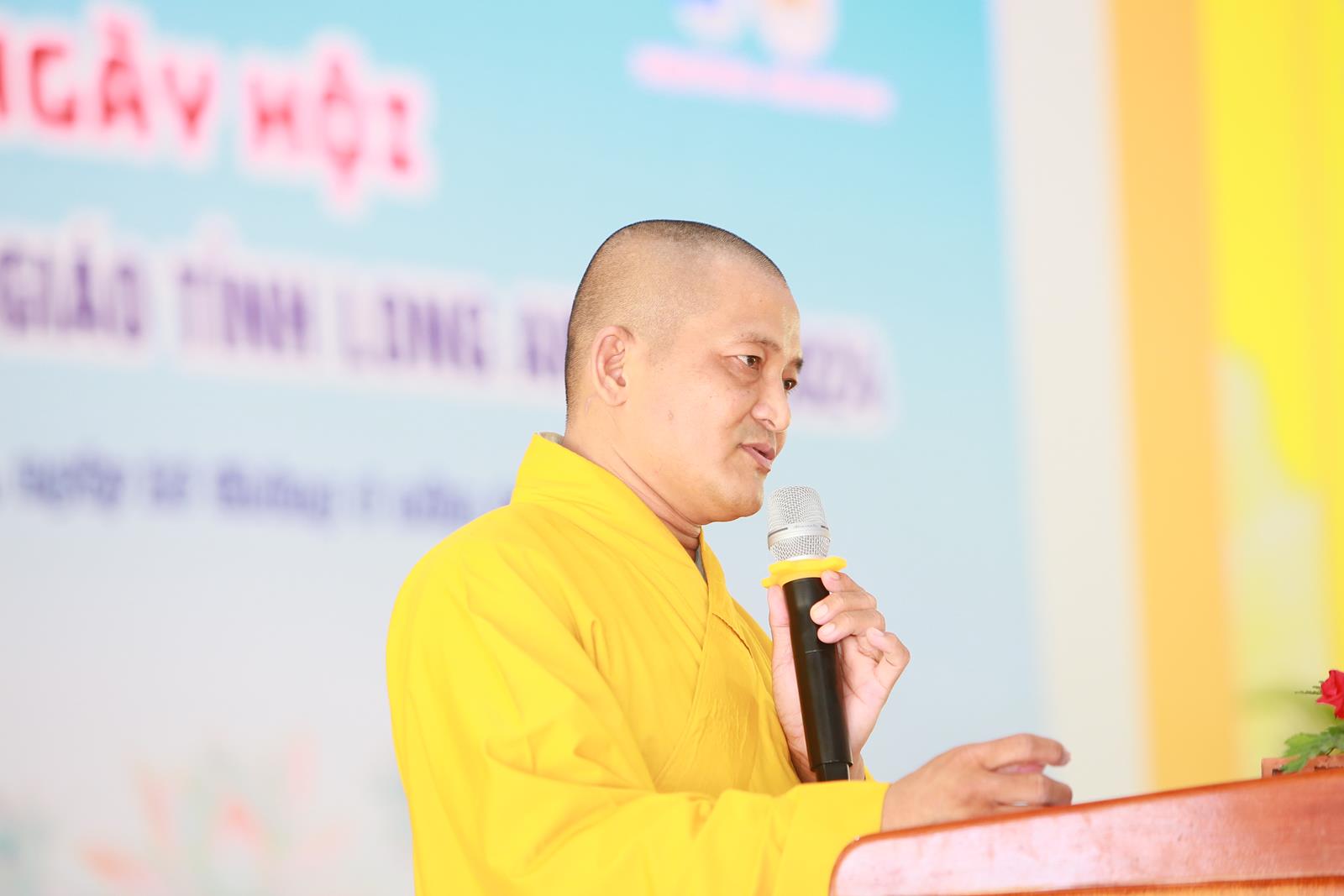 Đại đức Thích Lệ Duyên đã có những báo cáo khái quát về hoạt động phối hợp giữa Ban Trị sự GHPGVN huyện và Huyện Đoàn Đức Hòa trong những năm qua diễn ra rất tốt đẹp, tạo nhiều sân chơi lành mạnh, bổ ích, thiết thực cho Đoàn viên, Thanh niên và Thanh niên Phật tử. Đại đức trình bày các nội dung đã được Ban Trị sự GHPGVN tỉnh đã ký kết phối hợp với Hội Liên hiệp Thanh niên Việt Nam tỉnh năm 2024. Các nội dung này hướng đến việc tiếp tục vận động chức sắc, tăng ni trẻ và thanh thiếu niên Phật giáo sống tốt đời, đẹp đạo, thực hiện quyền và nghĩa vụ công dân, tích cực tham gia phát triển kinh tế – xã hội, bảo đảm an ninh trật tự, an toàn xã hội; tuyên truyền cho các phật tử và thanh niên tôn giáo trong thực hiện nếp sống văn minh, bảo vệ môi trường; tăng cường đoàn kết, tập hợp thanh niên là chức sắc, thanh niên phật tử thông qua các hoạt động chăm lo, đồng hành, hỗ trợ thực hành sinh hoạt tôn giáo đúng pháp luật, phù hợp với văn hoá truyền thống dân tộc; triển khai tổ chức các hoạt động an sinh xã hội…Ngày hội thanh niên tôn giáo hôm nay cũng nằm trong nội dung đã ký kết trên.