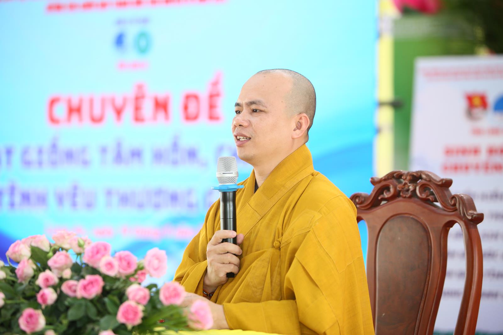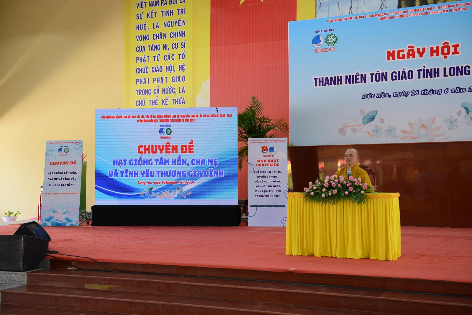 Đại đức Thích Thiện Lâm – Giảng viên Học viện PGVN tại TP.HCM, Giáo thọ Trường TCPH Long An đã thân lâm giảng đường chia sẻ với các đại biểu thanh niên về chuyên đề: “Kỹ năng trong đời sống gia đình, sức khoẻ, tình bạn, tình yêu trong thanh niên”. Qua phần chia sẻ, các đại biểu thanh niên đã rút ra được những kinh nghiệm quý báu, góp phần xây dựng và làm vững mạnh đời sống tinh thần của mỗi thanh niên tôn giáo trong thời đại mới.