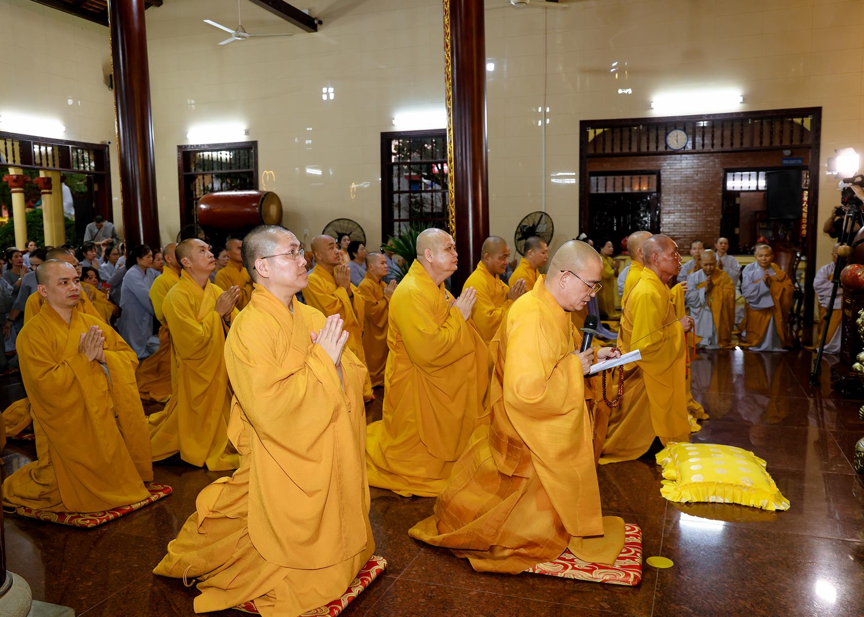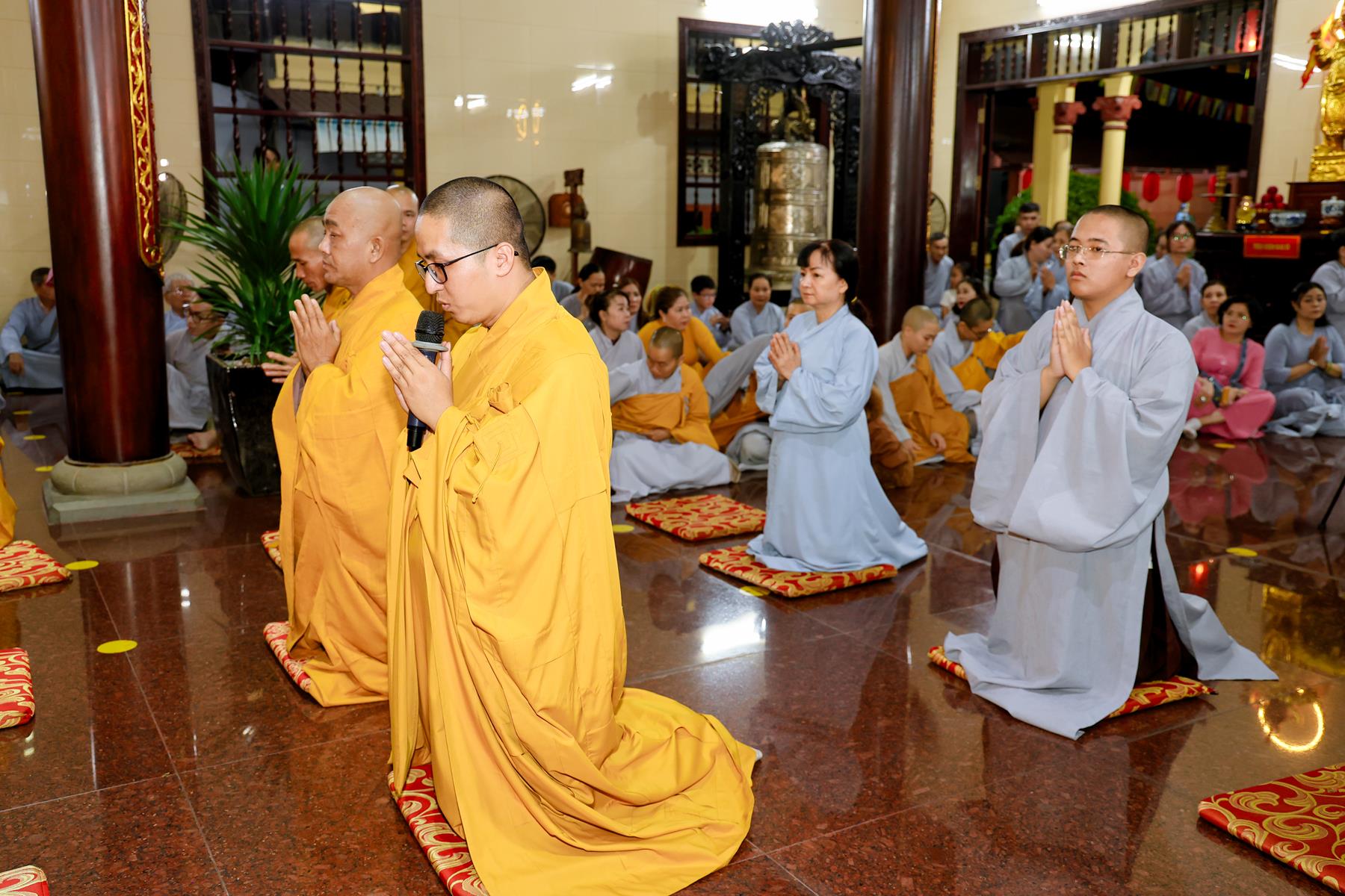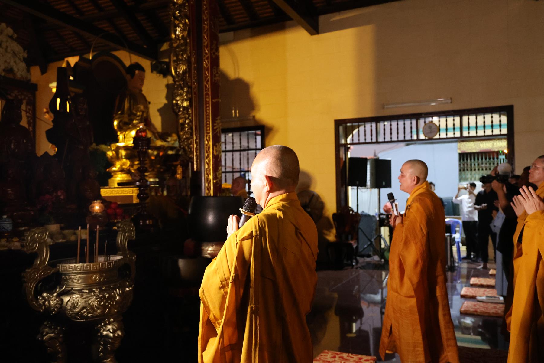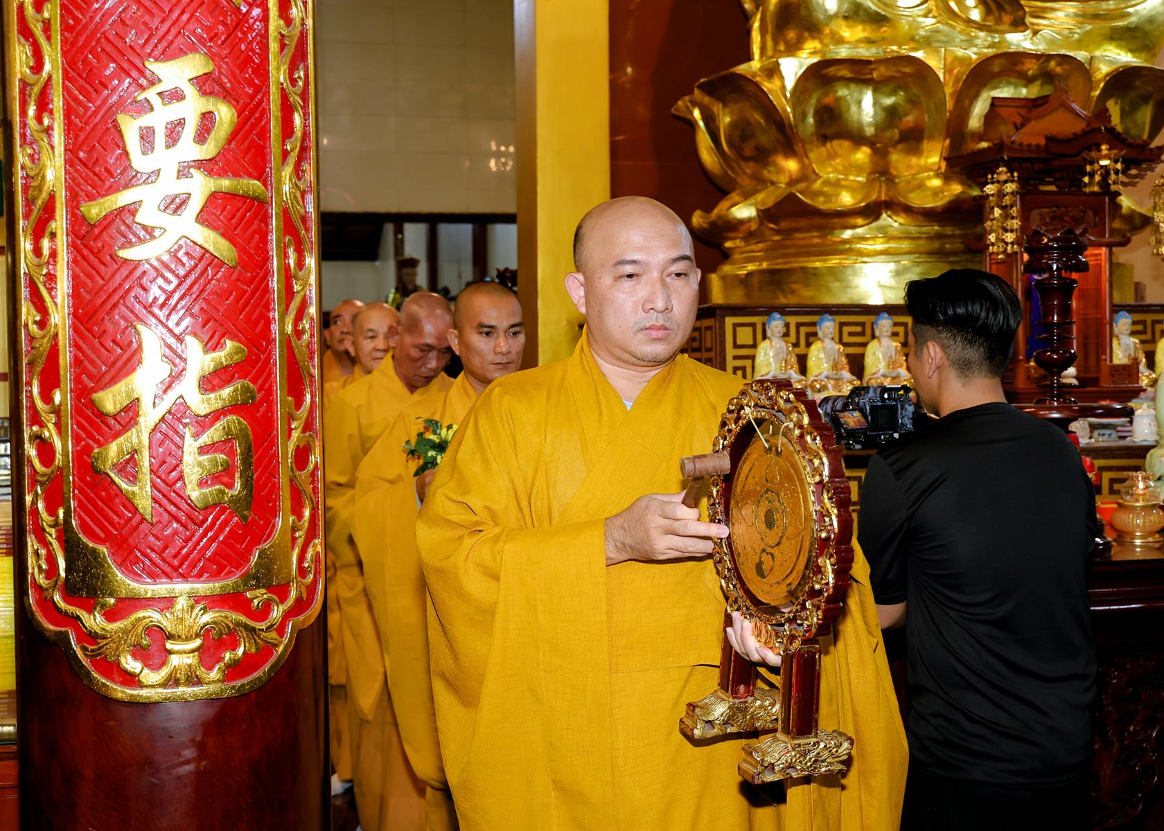 Buổi lễ được cử hành theo nghi lễ thiền môn truyền thống. Sau khi quang lâm Phật điện, Hòa thượng Thích Minh Thiện chủ trì khóa lễ. Chư Tôn đức đã thực hiện nghi thức niêm hương bạch Phật, đảnh lễ Tam bảo và cử hành nghi thức sái tịnh an vị tôn tượng. Đại chúng đồng xướng niệm hồng danh chư Phật, tụng tán và tán thán công đức Đức Thế Tôn thị hiện thành đạo, soi sáng con đường giác ngộ, giải thoát cho nhân thiên.