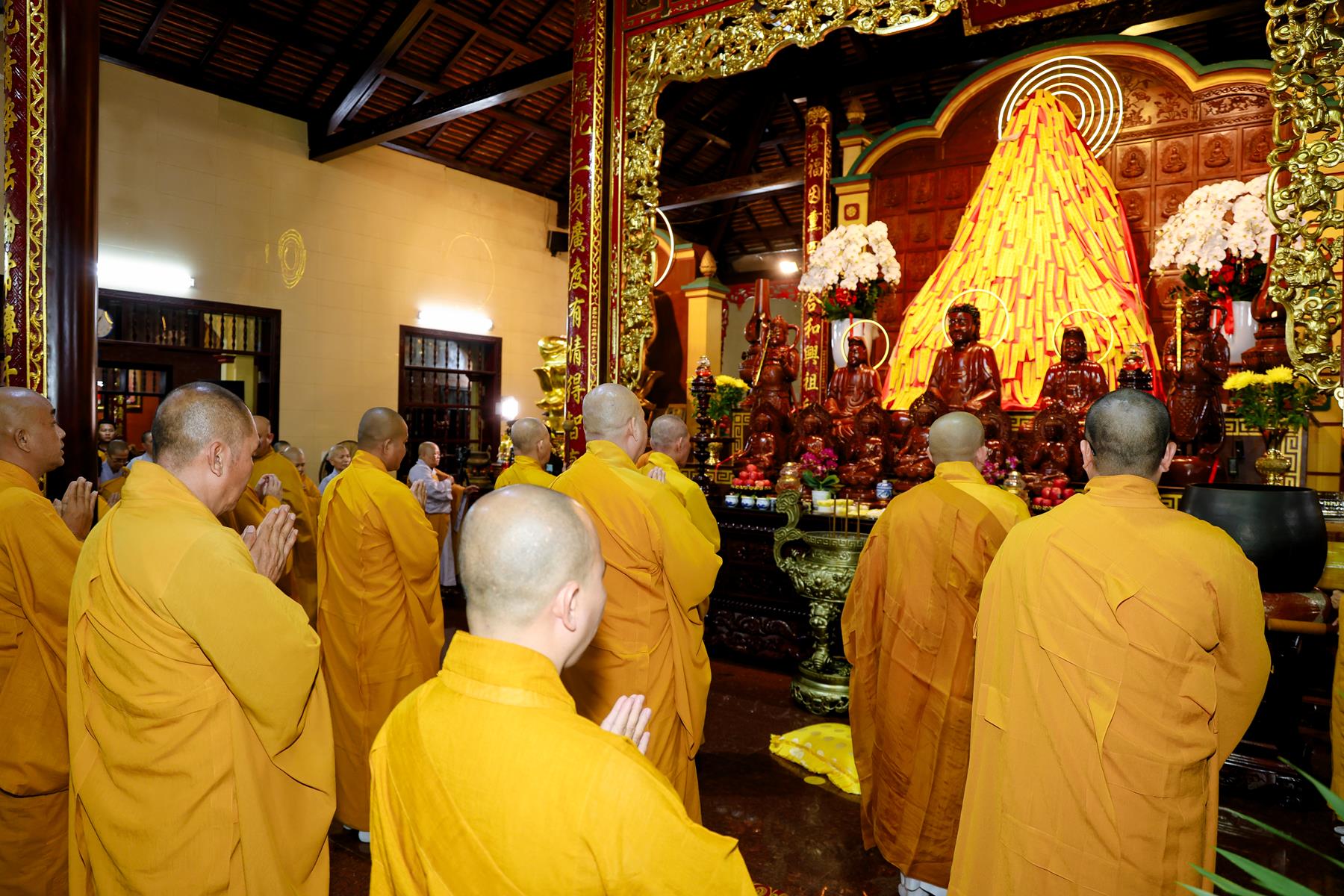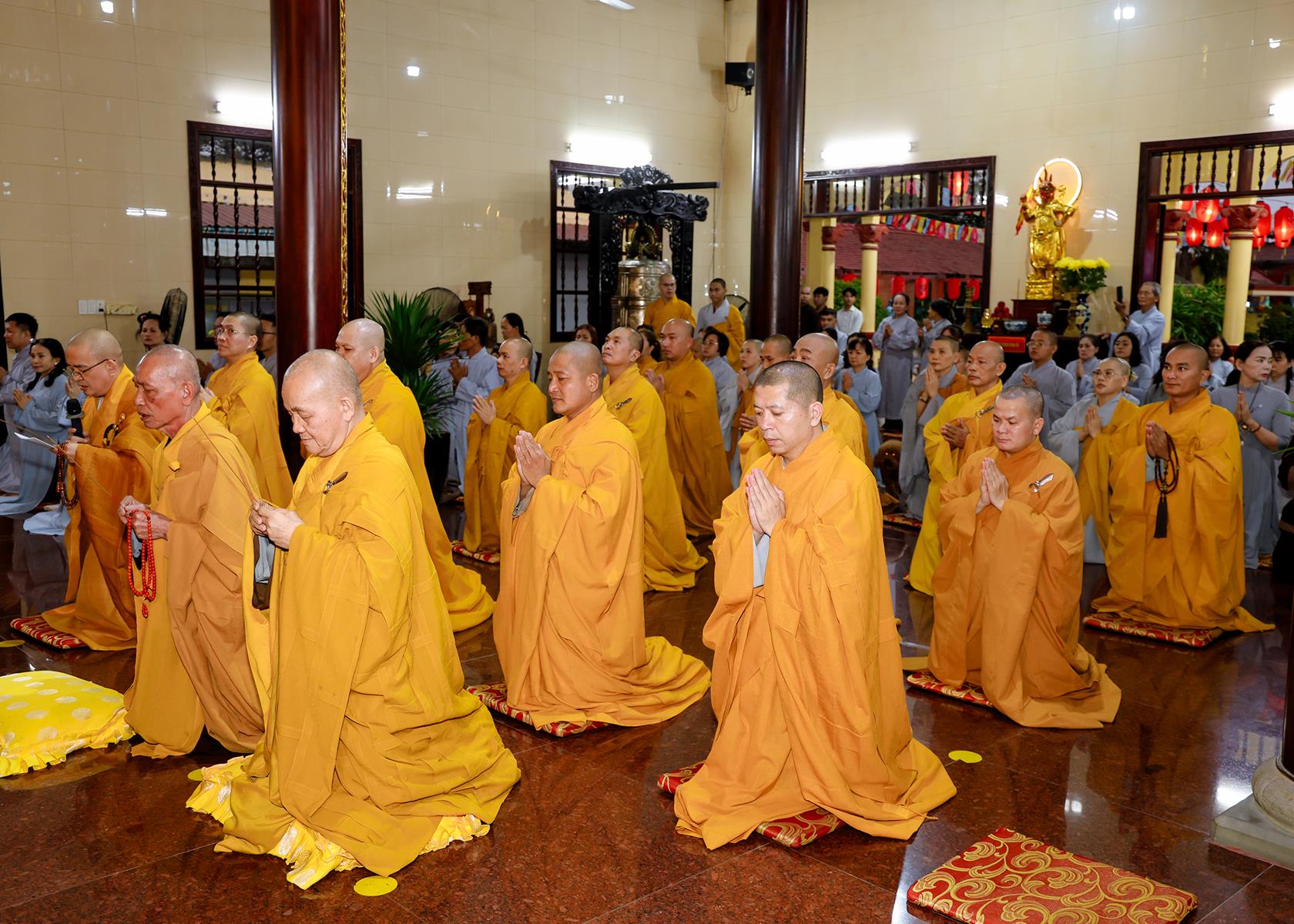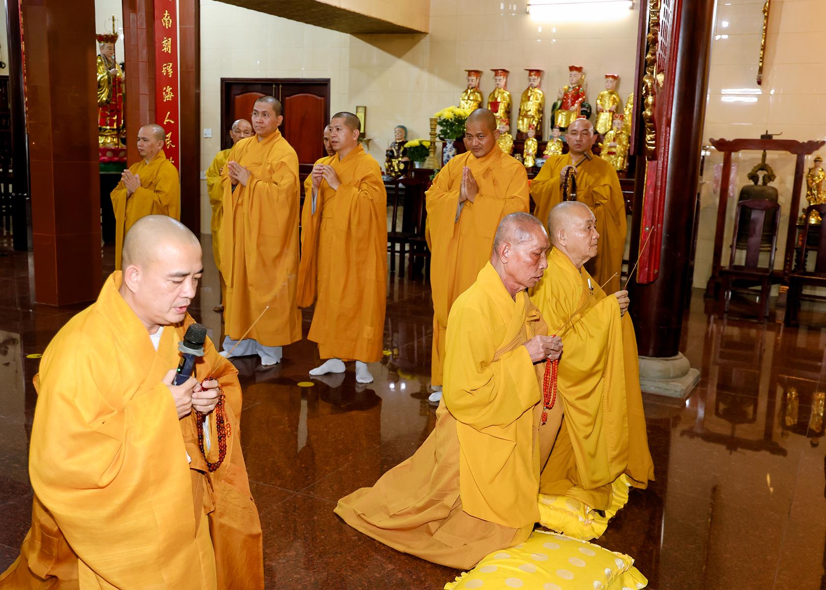 Buổi lễ được cử hành theo nghi lễ thiền môn truyền thống. Sau khi quang lâm Phật điện, Hòa thượng Thích Minh Thiện chủ trì khóa lễ. Chư Tôn đức đã thực hiện nghi thức niêm hương bạch Phật, đảnh lễ Tam bảo và cử hành nghi thức sái tịnh an vị tôn tượng. Đại chúng đồng xướng niệm hồng danh chư Phật, tụng tán và tán thán công đức Đức Thế Tôn thị hiện thành đạo, soi sáng con đường giác ngộ, giải thoát cho nhân thiên.
