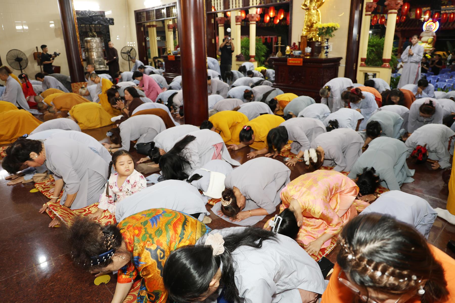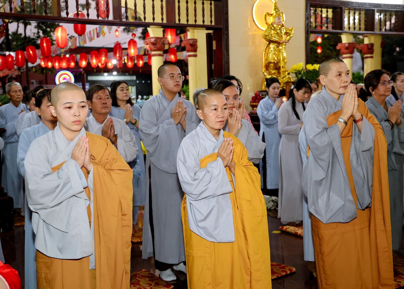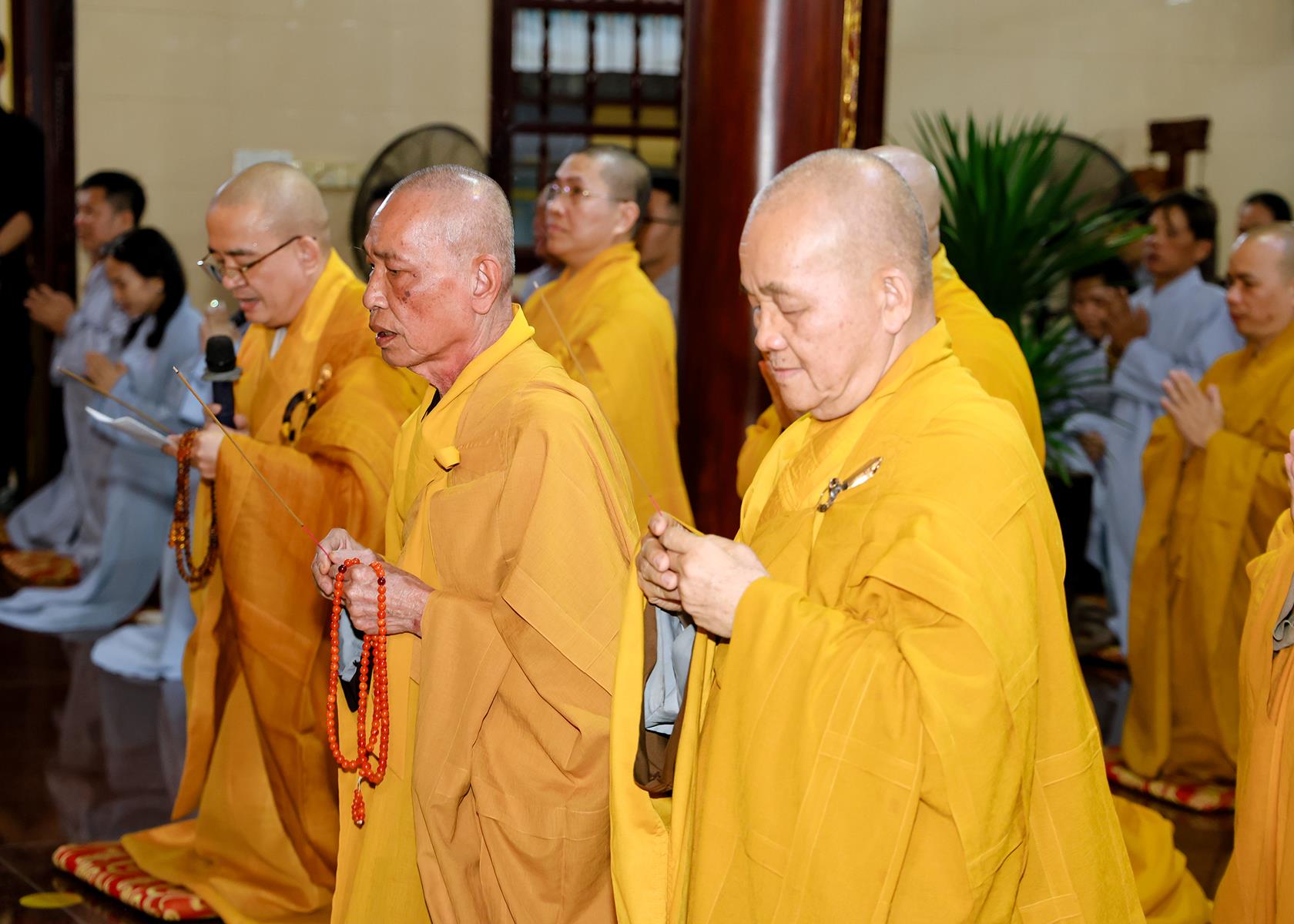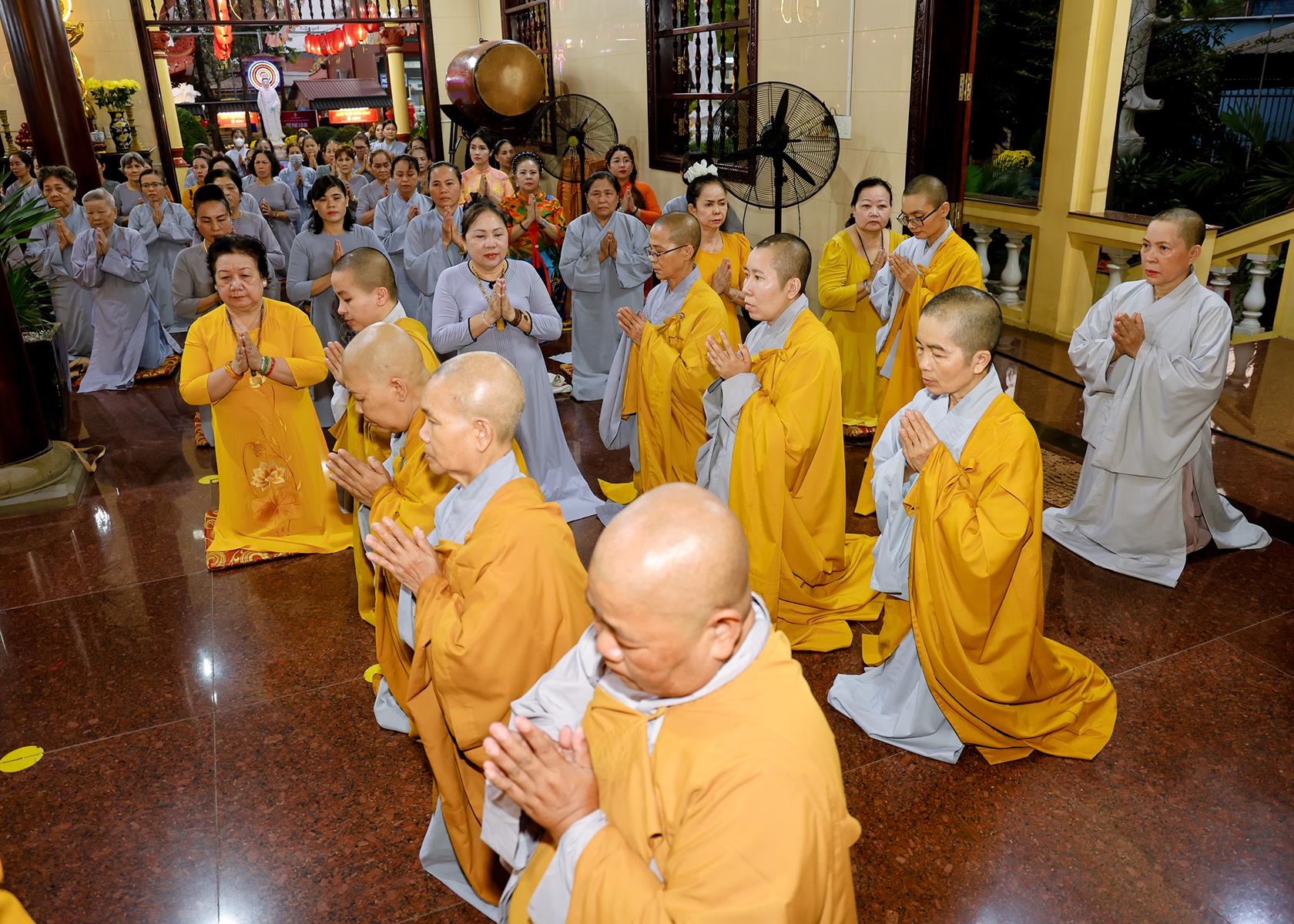 Buổi lễ được cử hành theo nghi lễ thiền môn truyền thống. Sau khi quang lâm Phật điện, Hòa thượng Thích Minh Thiện chủ trì khóa lễ. Chư Tôn đức đã thực hiện nghi thức niêm hương bạch Phật, đảnh lễ Tam bảo và cử hành nghi thức sái tịnh an vị tôn tượng. Đại chúng đồng xướng niệm hồng danh chư Phật, tụng tán và tán thán công đức Đức Thế Tôn thị hiện thành đạo, soi sáng con đường giác ngộ, giải thoát cho nhân thiên.