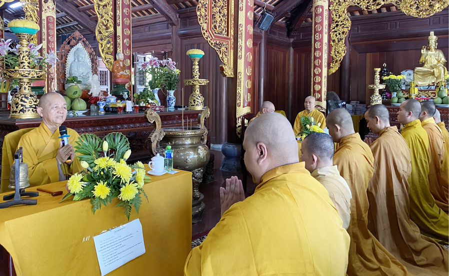 Dịp này, Hòa thượng Thích Minh Thiện Ủy viên Hội đồng Trị sự TW, Phó trưởng Ban Hoằng Pháp TW GHPG Việt Nam, Trưởng Ban trị sự GHPG Việt Nam tỉnh Long An, Hiệu trưởng trường Sơ Trung Cấp Phật học tỉnh Long An, Trưởng Ban tổ chức khóa An cư Kiết hạ tỉnh Long An PL.2565, Thiền chủ Hạ trường Chùa Pháp Minh đã có lời giáo giới trước toàn thể đại chúng. Hòa thượng nhấn mạnh tính quan trọng của việc An cư đối với các hành giải tu tập Phật pháp, đây là nhân duyên để các hành giả có nhiều thời gian hơn cho việc tu tập nhất là đối với chư Tăng sinh lớp Sơ cấp Phật học Long An sơ tâm xuất gia, ngoài các giờ học trên lớp nên tinh tấn công phu công quả nhiều hơn nhằm tạo công đức lành để phát triển Bồ Đề tâm và có thái độ ứng xử phù hợp trong Chánh pháp của Đức Thế Tôn.