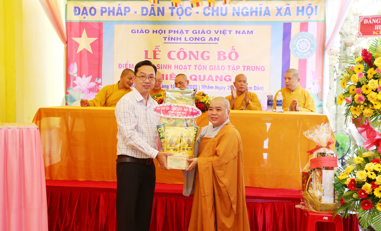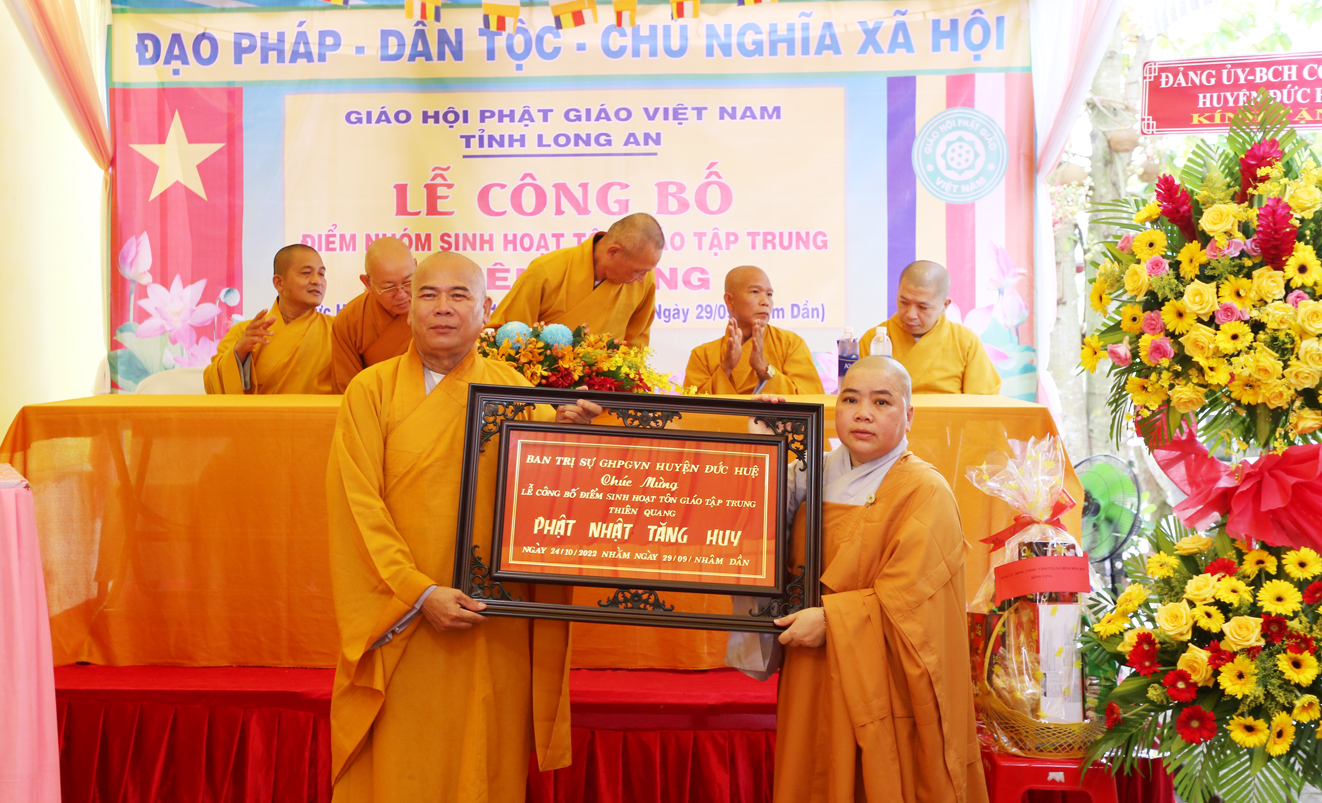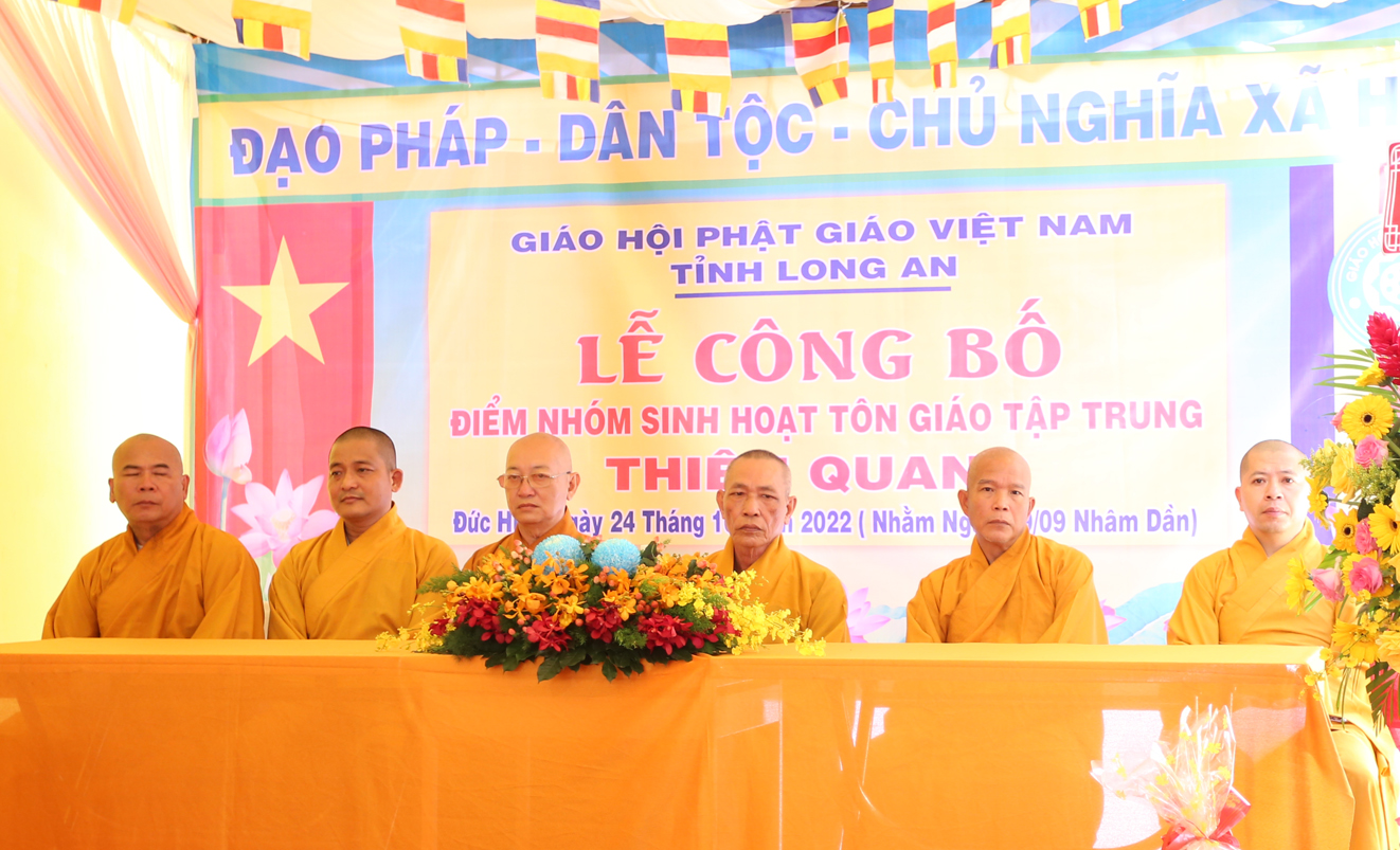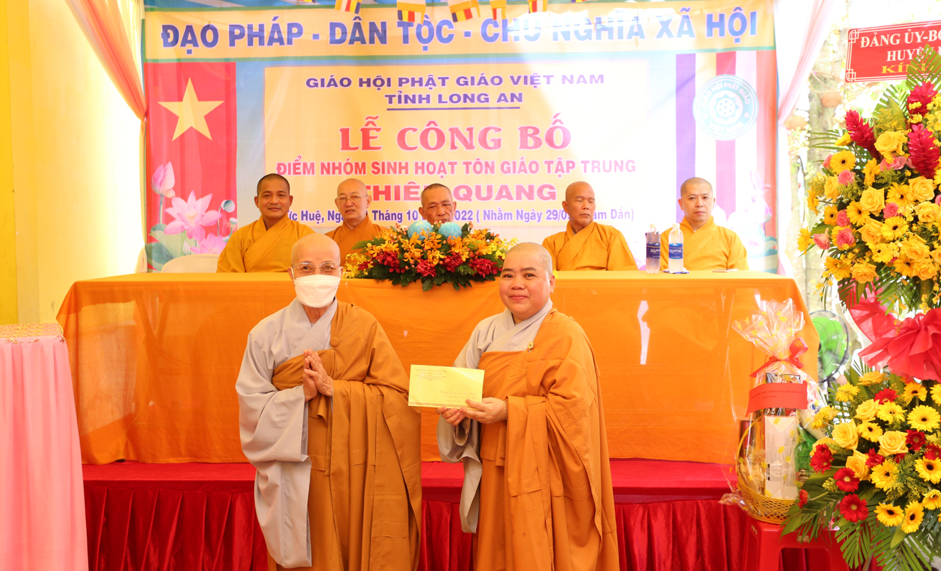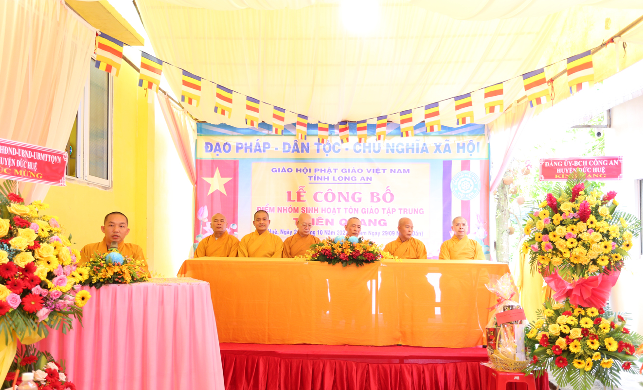 Tại buổi lễ, Đại đức Thích Lệ Duyên – Chánh Thư Ký BTS GHPGVN tỉnh Long An công bố quyết định công nhận điểm nhóm sinh hoạt tôn giáo tập trung Thiên Quang toạ lạc tại ấp Tân Hoà, xã Bình Hoà Bắc, huyện Đức Huệ, tỉnh Long An với người đại diện là Sư cô TN. Diệu Nhàn; Để tình hình sinh hoạt được ổn định, Đại đức Thích Thiện Danh triển khai nội dung tu tập, hành trì thường nhật tại nơi điểm nhóm sinh hoạt tôn giáo Thiên Quang.