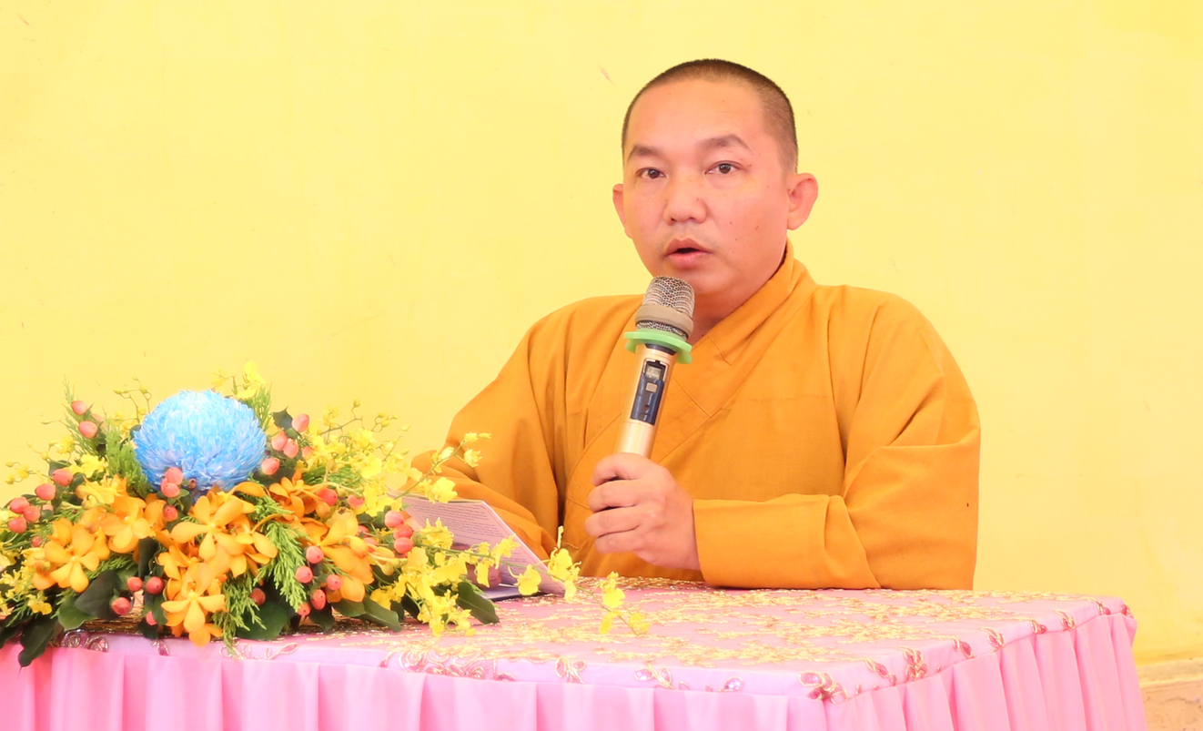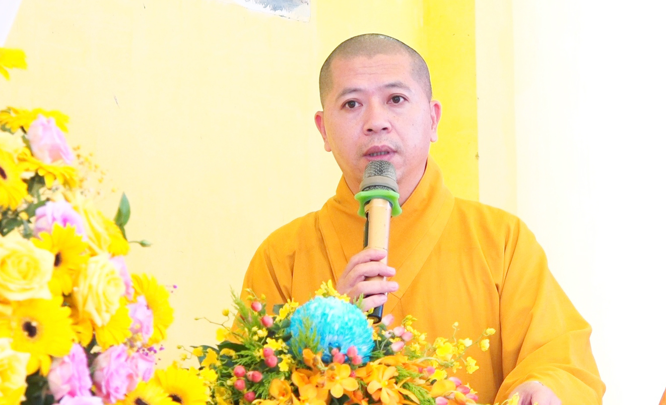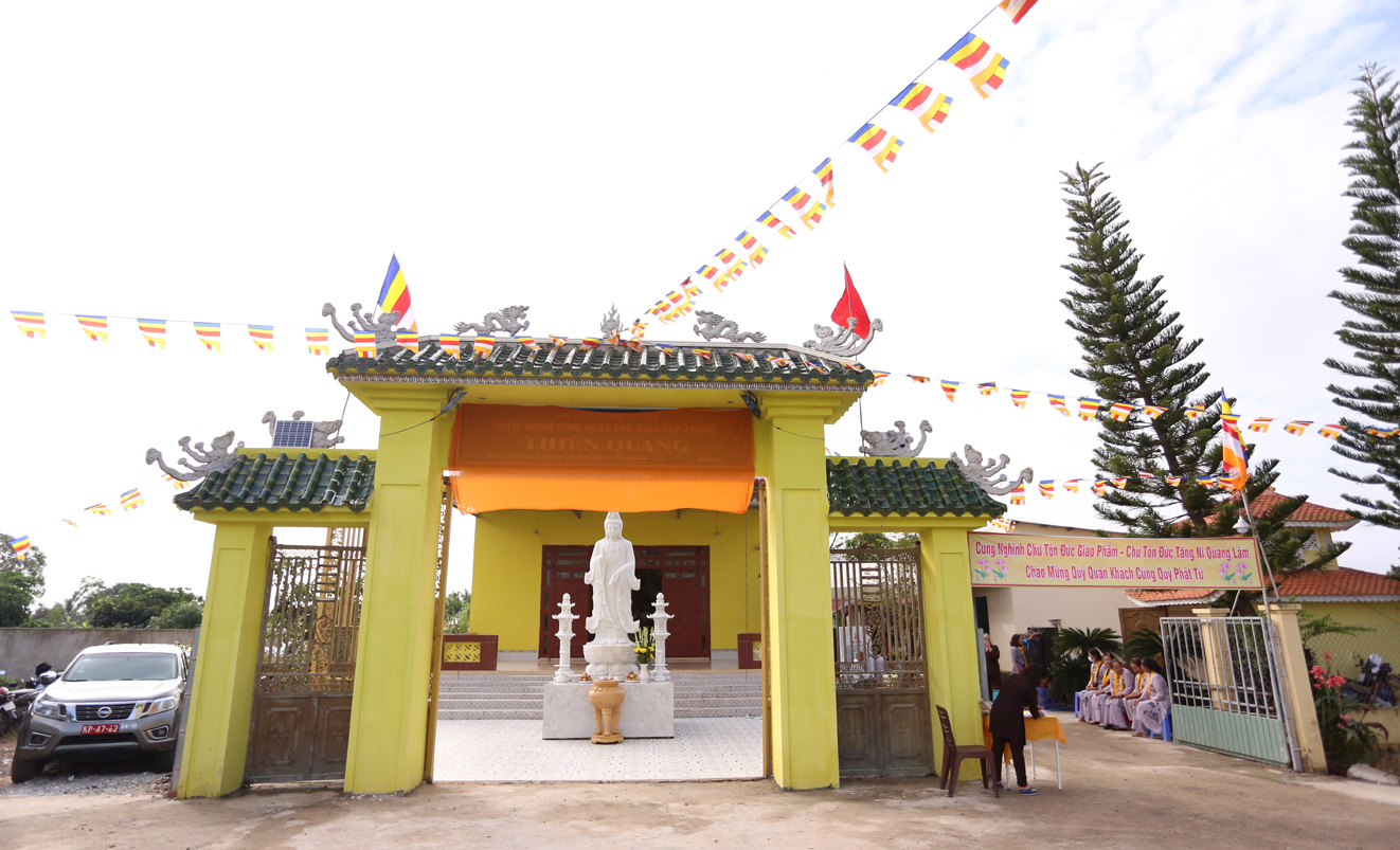 Buổi lễ được lắng nghe lời đạo từ sách tấn cao quý của Hoà thượng Thích Thiện Huệ – Chứng minh BTS GHPGVN tỉnh Long An, trong lời đạo từ Hòa thượng nhắc về những mục đích quan trọng của việc thành lập điểm nhóm sinh hoạt tôn giáo tập trung, không khác gì với những cở sở tự viện hợp pháp của GHPGVN với các thời khóa tu tập, chương trình hành đạo theo đúng Hiến chương GHPGVN và Pháp luật Nhà nước hiện hành. Hòa thượng có lời sách tấn chư tôn đức Ni và Phật tử tại đạo tràng phải cố gắng tu tập thật tốt để lan truyền năng lượng từ bi, góp phần hóa giải những nỗi mất mát do chiến tranh từng đem lại trên mảnh đất Bình Hoà Bắc. Đồng thời Hòa thượng đã chúc nguyện cho ngôi Tam bảo đạo tràng Thiên Quang được trang nghiêm, thanh tịnh, thành tựu như pháp.
