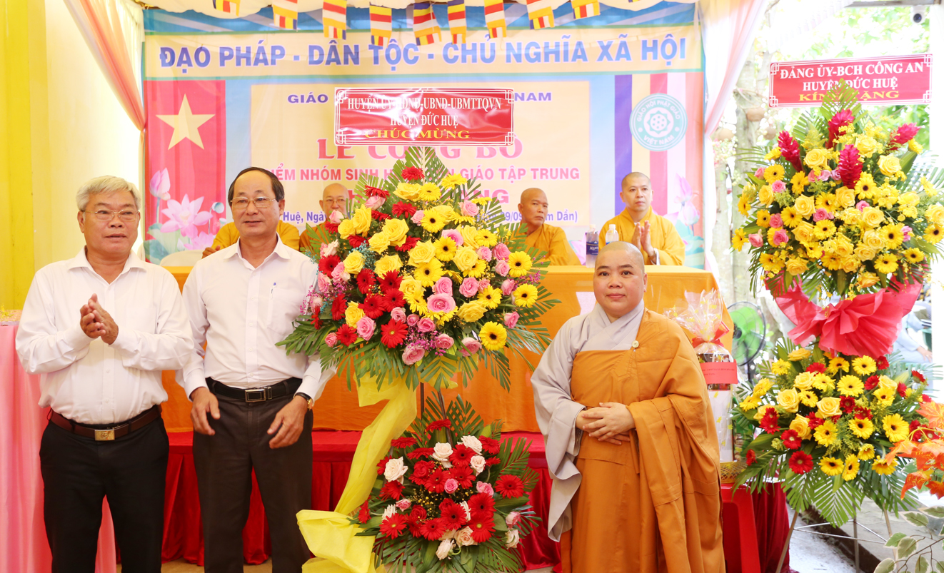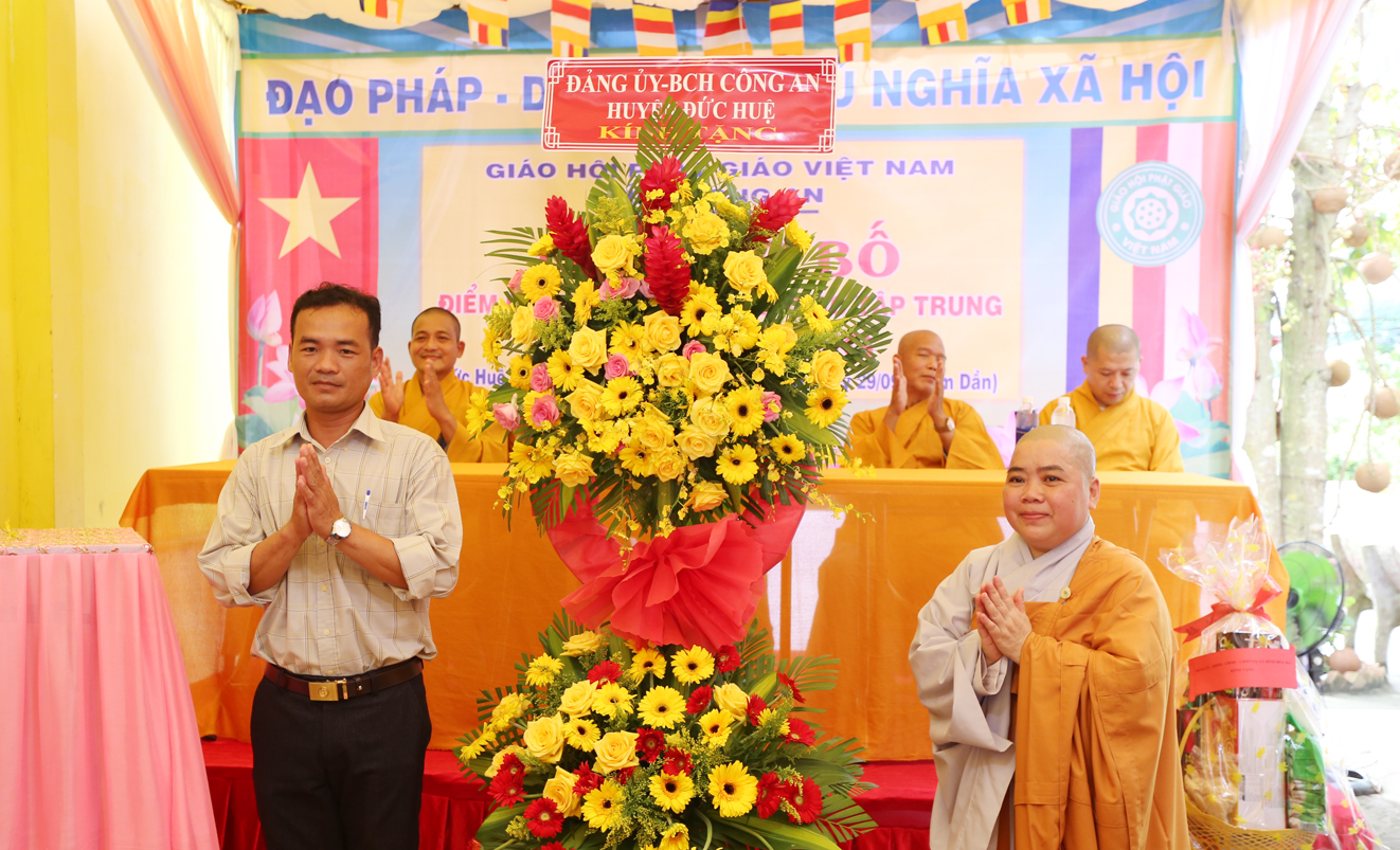 Buổi lễ được cung nghinh sự quang lâm chứng minh của Hoà thượng Thích Thiện Huệ – Chứng minh BTS GHPGVN tỉnh Long An; Thượng tọa Thích Quảng Tâm – UV HĐTS – Phó Trưởng ban Thường trực BTS GHPGVN tỉnh Long An; Đại đức Thích Lệ Duyên – Phó ban kiêm Chánh Thư ký BTS GHPGVN tỉnh Long An; Đại đức Thích Thiện Danh – Phó Thư ký kiêm Chánh Văn phòng BTS GHPGVN tỉnh Long An, cùng Chư tôn đức thường trực BTS GHPGVN tỉnh Long An; Đại đức Thích Thiện An – Uỷ viên BTS GHPGVN tỉnh Long An, Trưởng BTS GHPGVN huyện Đức Huệ; Thường trực BTS GHPGVN huyện Đức Huệ; Ni trưởng TN. Diệu Nhàn – Phó trưởng Phân ban Ni giới tỉnh Long An; Chư tôn đức tăng ni trong địa bàn huyện và Phật tử đồng thân lâm tham dự.