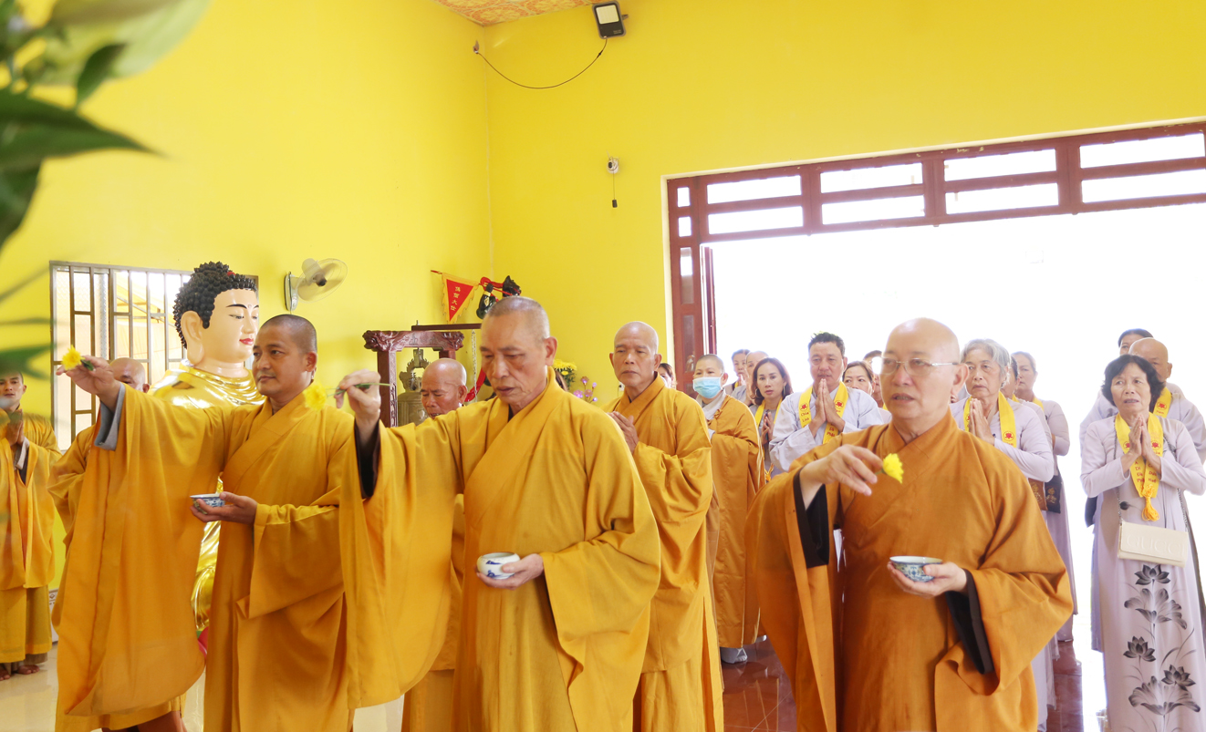 Cuối buổi lễ Đại đức Thích Thiện An thay lời Ban Tổ chức dâng lời cảm tạ đến Chư Tôn đức quang lâm và tham dự buổi lễ. Sau đó, cung thỉnh Chư tôn đức thực hiện nghi thức thượng bảng, thiết lễ An vị Phật và sái tịnh đàn tràng.