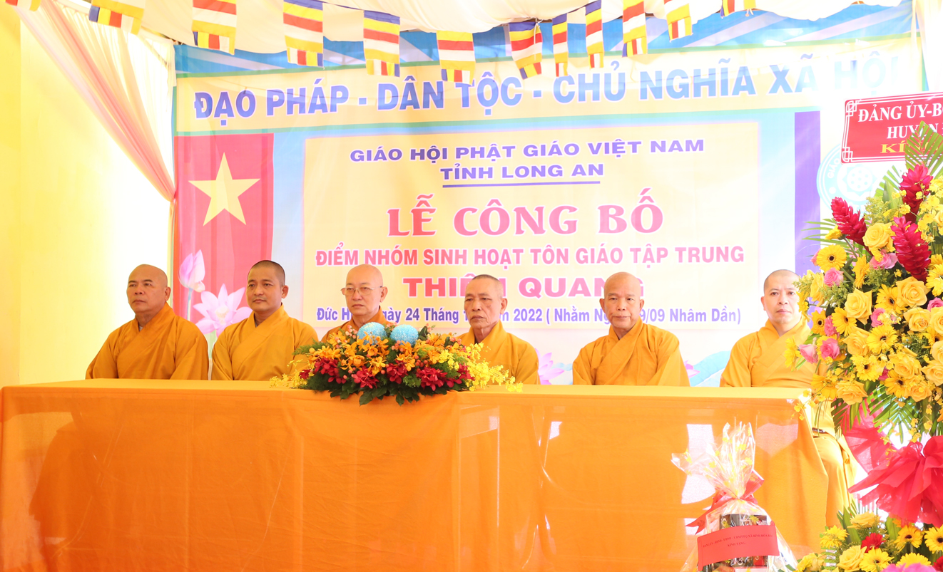 Sáng hôm nay ngày 24 tháng 10 năm 2022 (nhằm ngày 29/9 năm Nhâm Dần ), Thường trực BTS GHPGVN tỉnh Long An kết hợp cùng BTS GHPGVN huyện Đức Huệ tổ chức lễ công bố quyết định thành lập điểm nhóm sinh hoạt tôn giáo tập trung Thiên Quang.