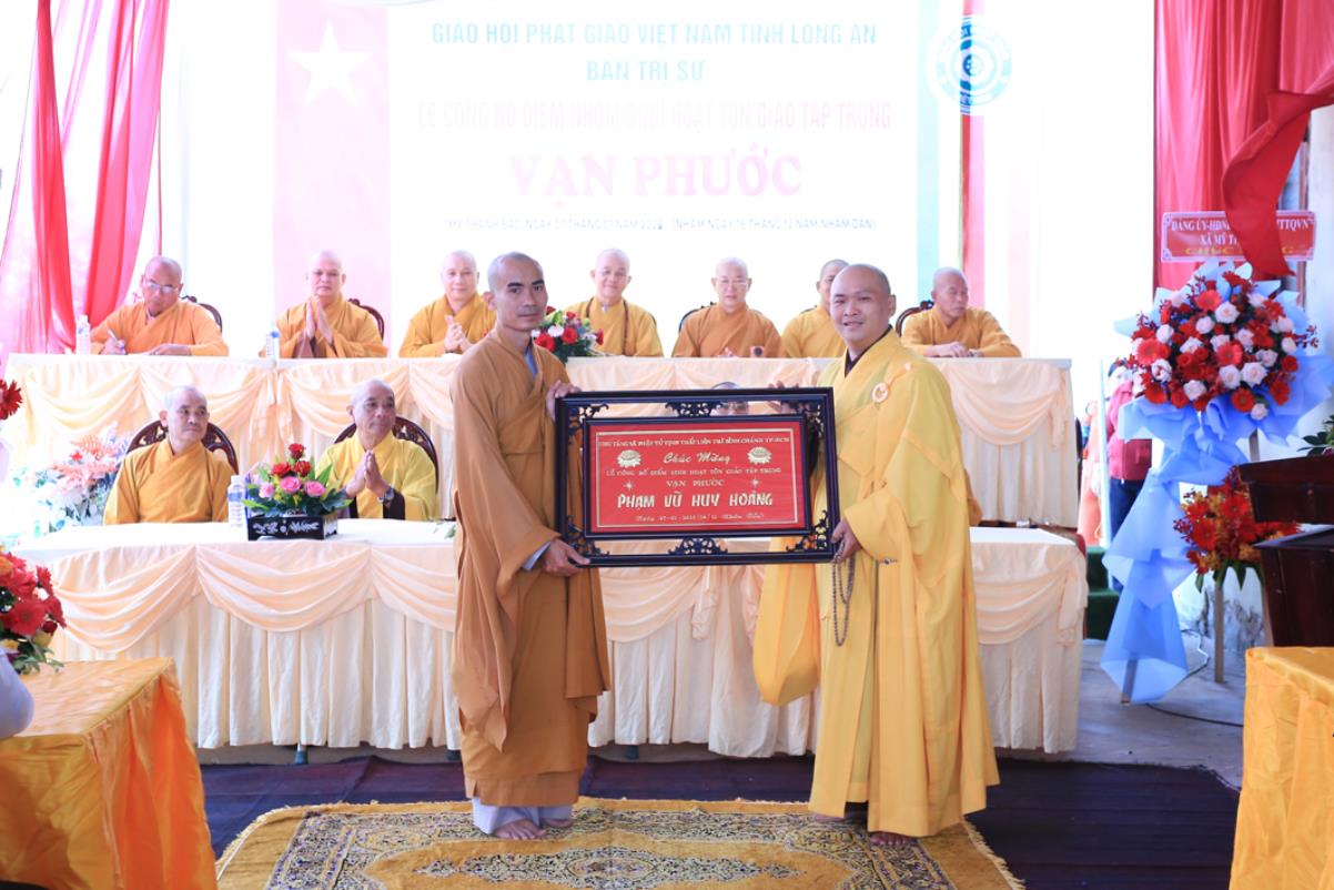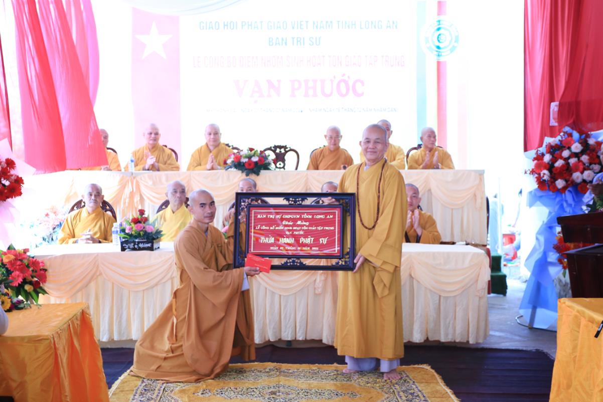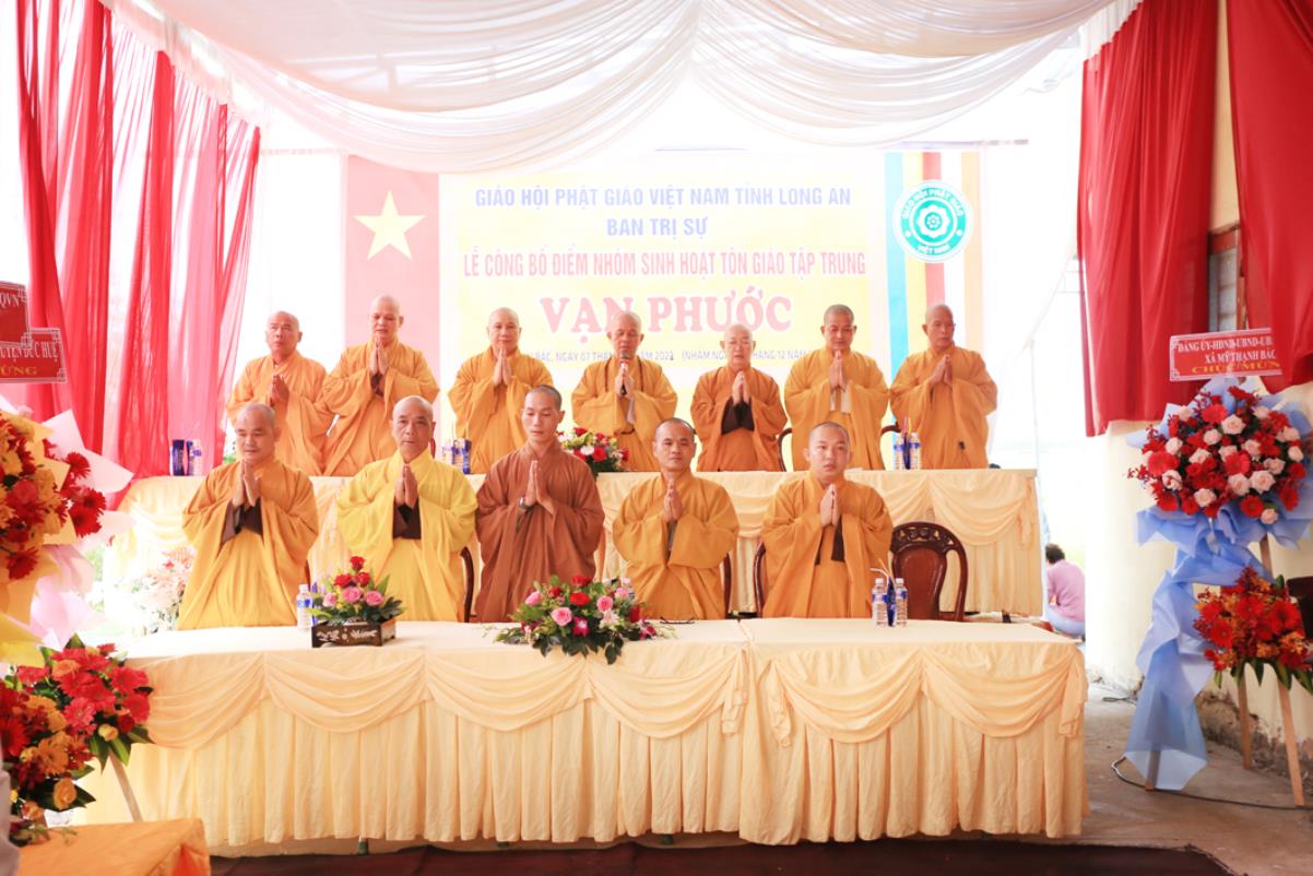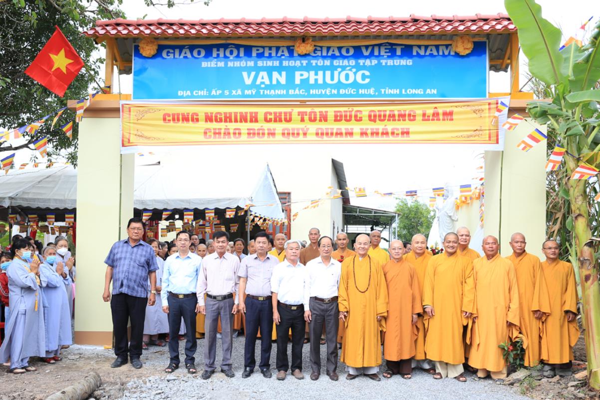 Được sự cho phép cho của Chư tôn đức Thường trực Ban Trị sự GHPGVN tỉnh Long An, TT. Thích Quảng Tâm – UV HĐTS, Phó Trưởng ban Thường trực BTS GHPGVN tỉnh Long An thông qua giấy chứng nhận đăng ký sinh hoạt tôn giáo tập trung Vạn Phước theo quyết định số 1133/GCN-UBND do Phó Chủ tịch UBND xã Mỹ Thạnh Bắc – bà Võ Thị Cẩm Vân ấn ký ngày 19 tháng 12 năm 2022. Điểm nhóm sinh hoạt tôn giáo tập trung Vạn Phước thuộc tổ chức tôn giáo Ban Trị sự GHPGVN tỉnh Long An với người đại diện là Đại đức Đức Thiện (thế danh Trần Văn Ngọt), sinh năm 1979, hộ khẩu thường trú: ấp 5, xã Mỹ Thạnh Bắc, huyện Đức Huệ, tỉnh Long An. Số lượng đăng ký tham gia sinh hoạt là 84 người.