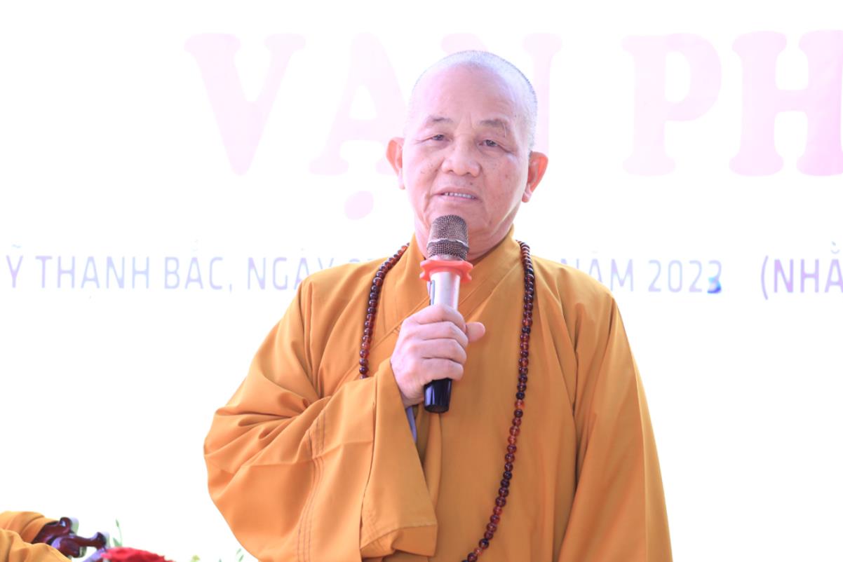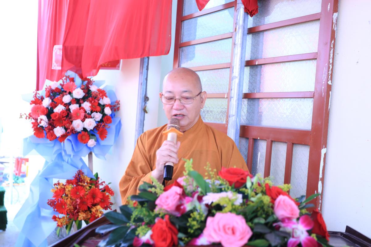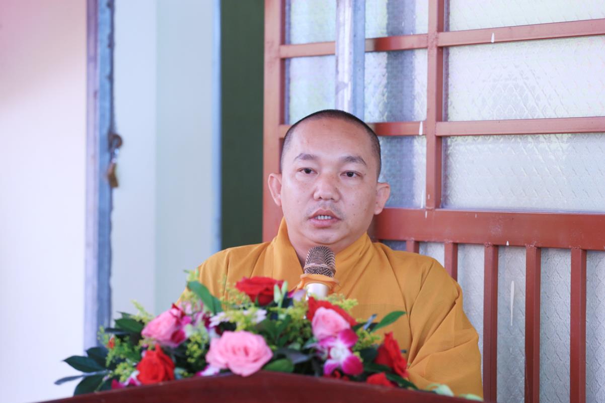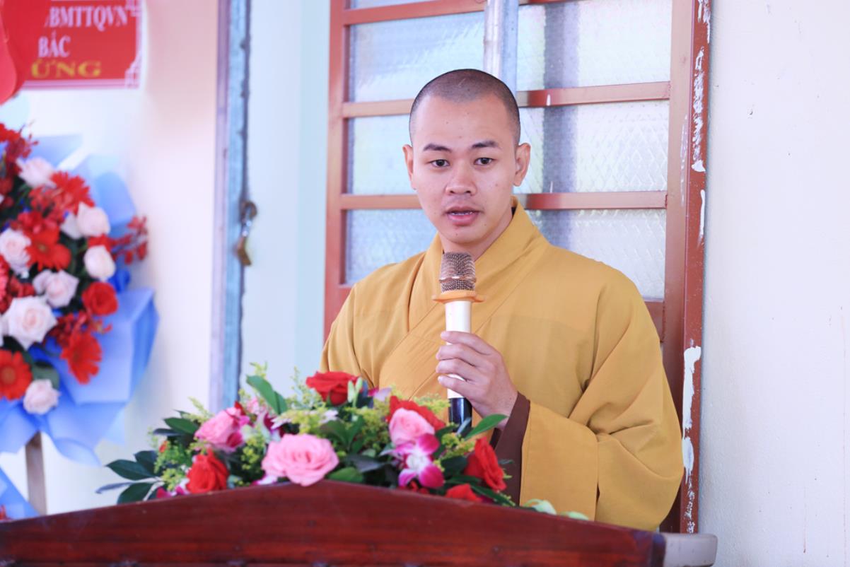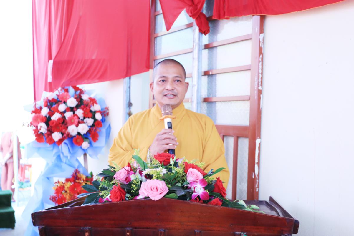 Thay mặt Thường trực BTS GHPGVN huyện Đức Huệ, Đại đức Thích Minh Trí – Phó Trưởng ban Thường trực BTS GHPGVN huyện Đức Huệ có lời cảm tạ tại buổi lễ.
