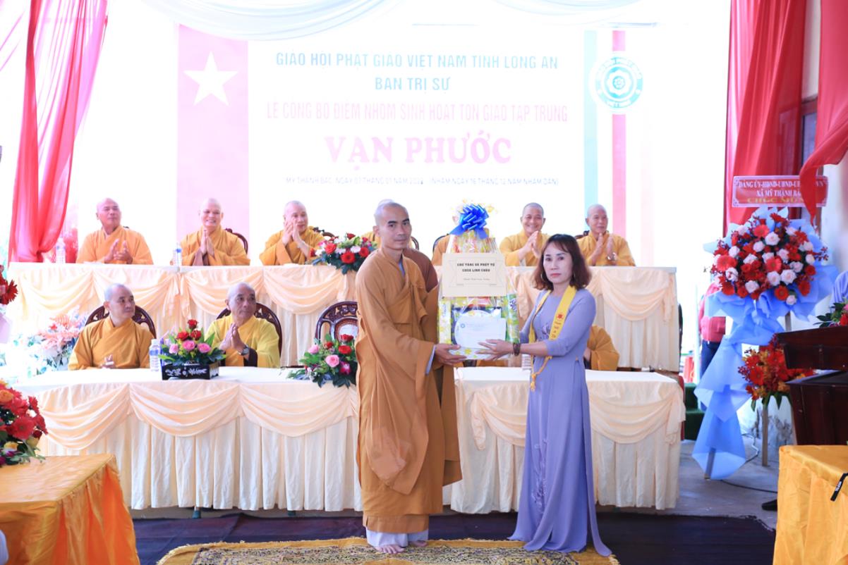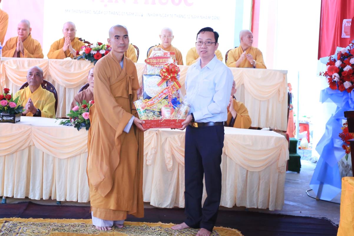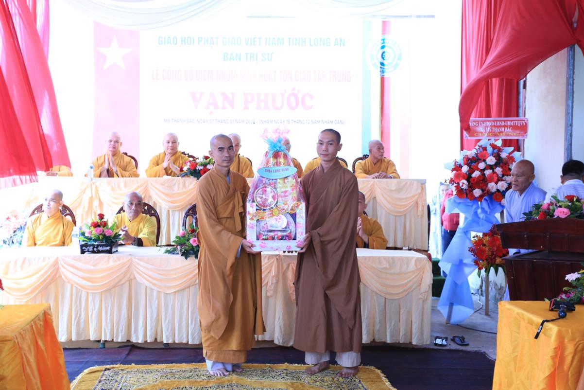 Buổi lễ được đón nhận nhiều phần quà cao quý từ: BTS GHPGVN tỉnh Long An, Ban Kinh tế Tài chính GHPGVN tỉnh Long An, BTS GHPGVN huyện Đức Huệ, UB MTTQVN – Ban Tôn giáo tỉnh Long An, Công an tỉnh Long An; Huyện ủy – HĐND – UBND – UBMTTQVN huyện Đức Huệ; Đảng ủy – Ban Chỉ huy Công an huyện Đức Huệ, Ban Chỉ huy Quân sự huyện Đức Huệ, Đảng ủy – HĐND – UBND – UBMTTQ xã Mỹ Thạnh Bắc, Tăng ni Phật giáo huyện Đức …