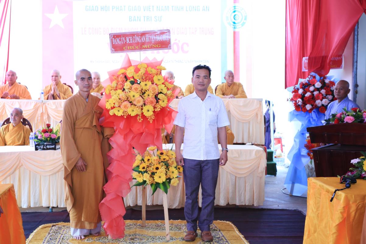 Quang lâm về chứng minh và tham dự buổi lễ có sự hiện diện của: HT. Thích Minh Thiện – UV HĐTS, Phó ban Hoằng pháp TW, Trưởng BTS GHPGVN tỉnh Long An; TT. Thích Quảng Tâm – UV HĐTS, Phó Trưởng ban Thường trực BTS GHPGVN tỉnh; Chư tôn đức Phó BTS GHPGVN tỉnh: TT. Thích Đức Hoàng, ĐĐ. Thích Lệ Duyên; TT. Thích Nhuận Thành – Trưởng ban Kinh tế Tài chính GHPGVN tỉnh, Phó BTS kiêm Trưởng ban Kinh tế Tài chính huyện Đức Hòa; TT. Thích Minh Trung – Phó Trưởng ban Thường trực BTS GHPGVN huyện Đức Hòa; ĐĐ. Thích Thiện An – Trưởng BTS GHPGVN huyện Đức Huệ; Chư tôn đức Thường trực BTS GHPGVN tỉnh Long An, huyện Đức Huệ; Chư tôn đức Tăng ni đồng về chứng minh và tham dự.