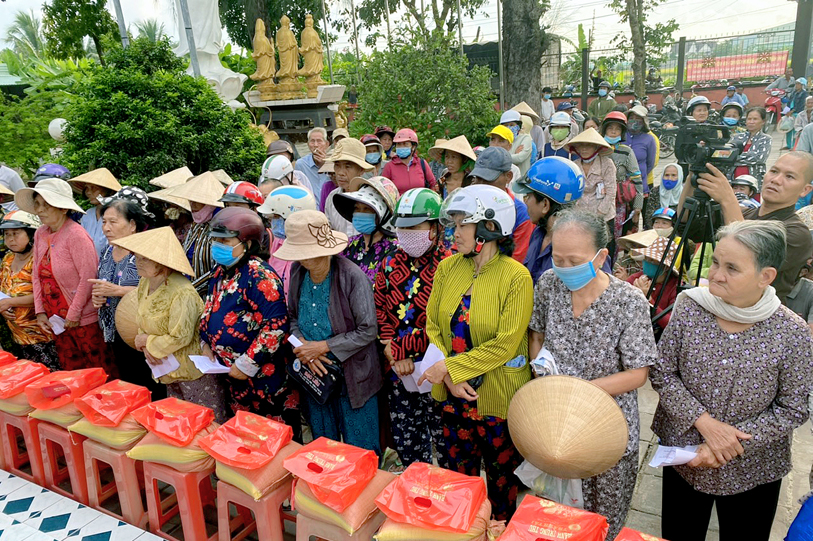 Phần quà gồm Mì, đường, bột ngọt, nước tương và nhiều nhu yếu phẩm với tổng trị giá 51 triệu, 400 ngàn đồng.