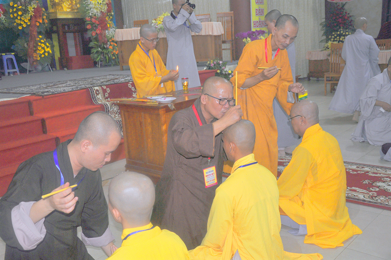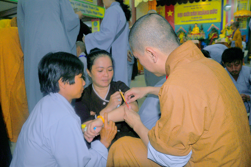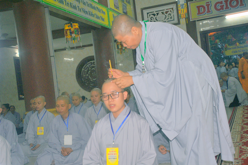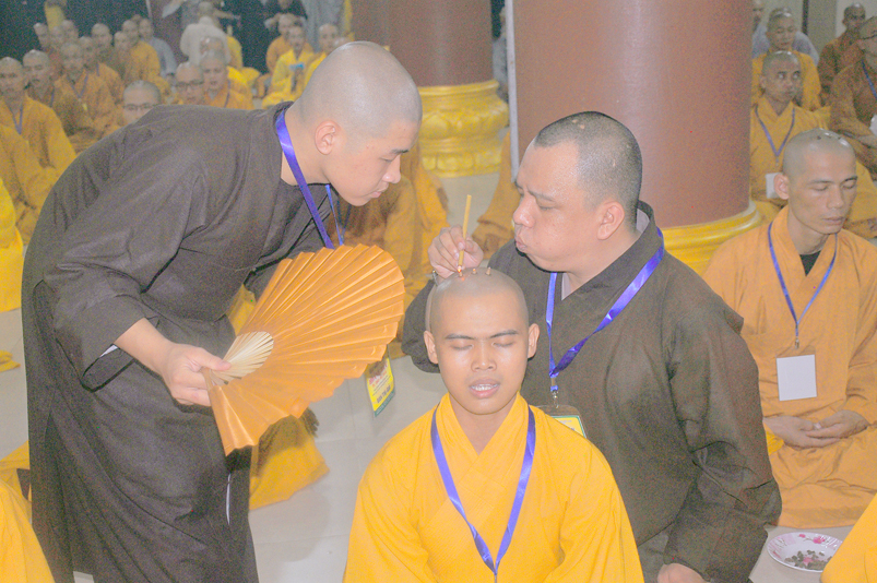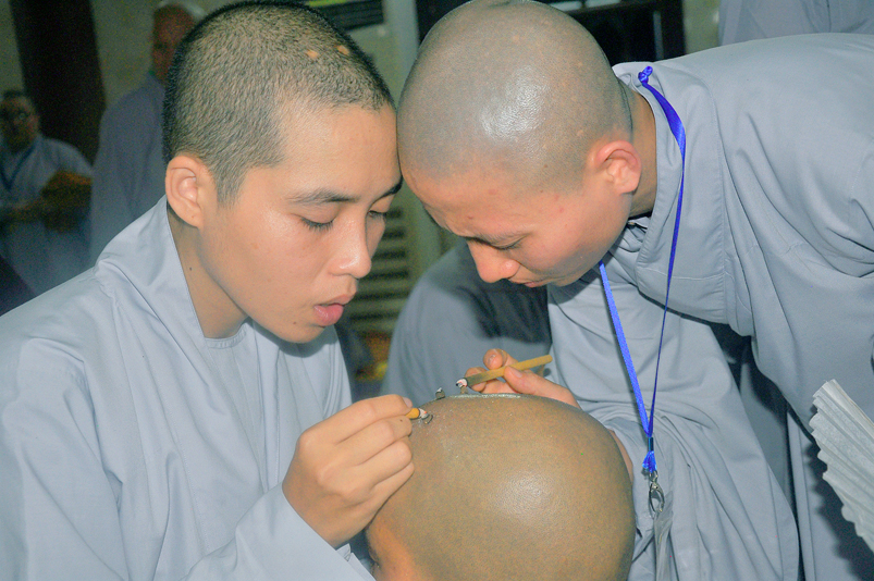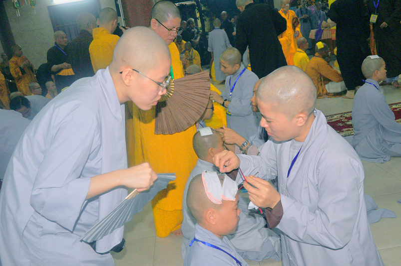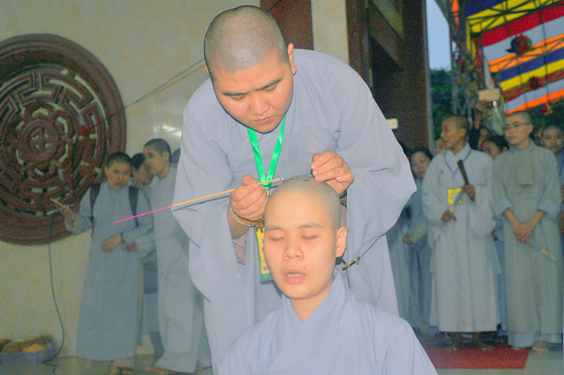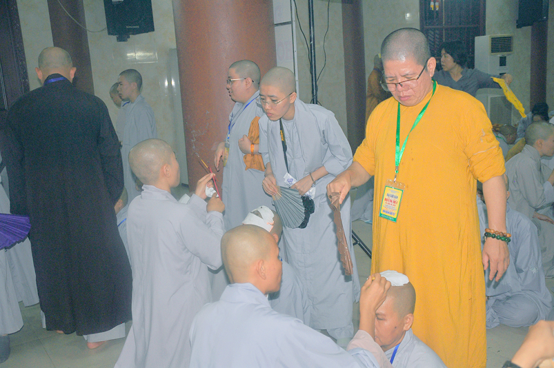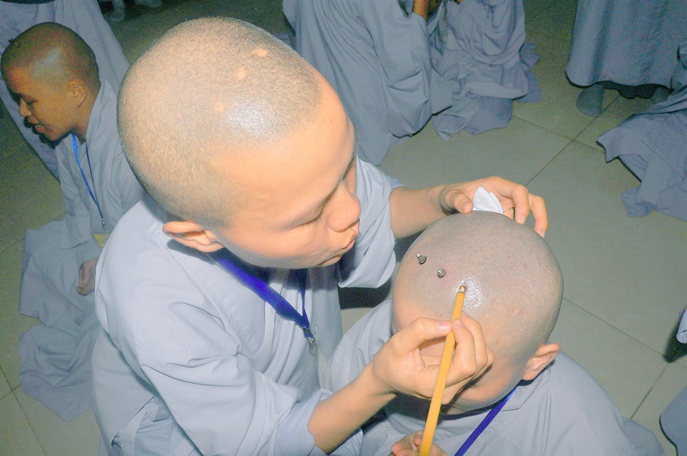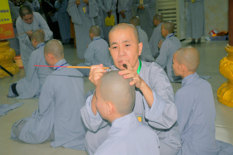 Quý giới tử được hướng dẫn cẩn thận, chi tiết trước khi được phát nguyện tấn hương. Các giới tử nhiếp tâm trong tiếng niệm Phật và hòa quyện trong tiếng trống bát nhã để vượt qua thử thách đau đớn của việc tấn hương.