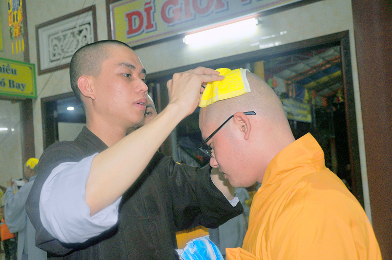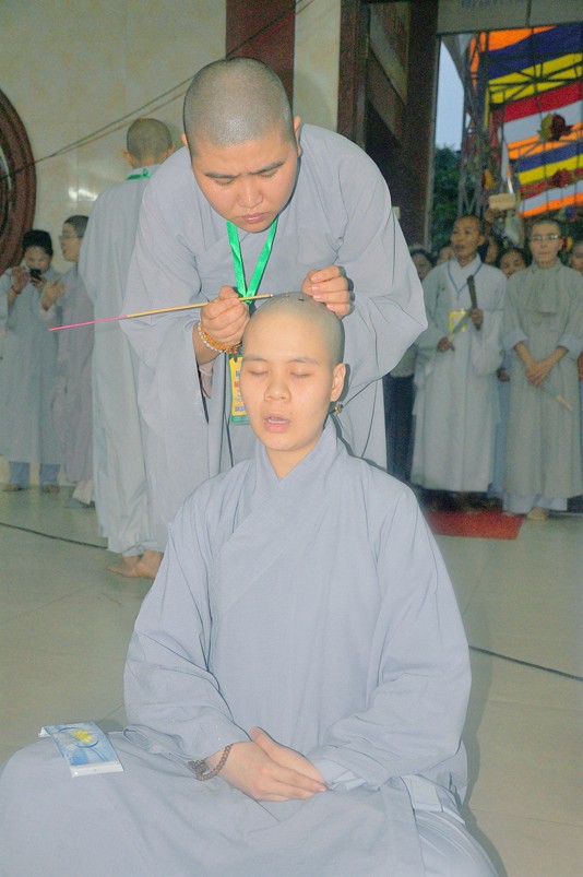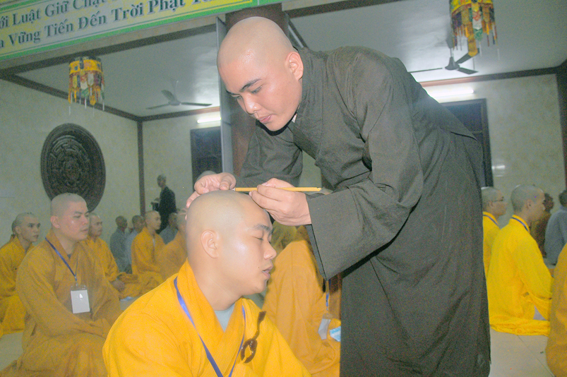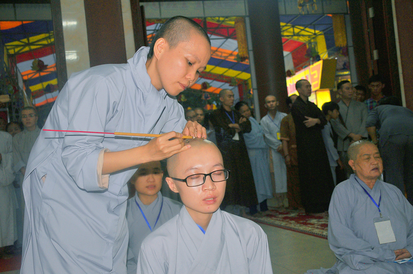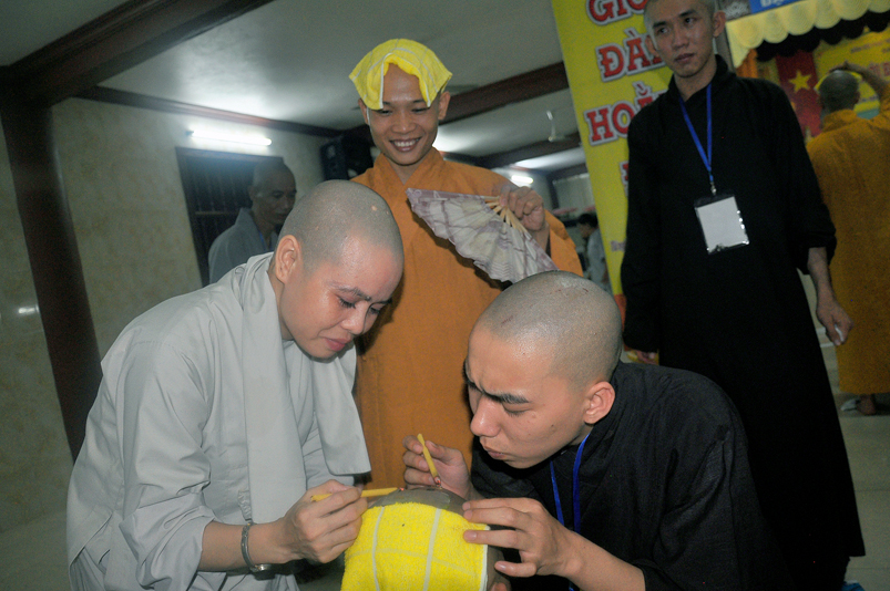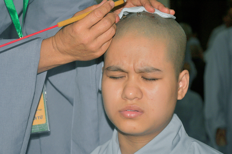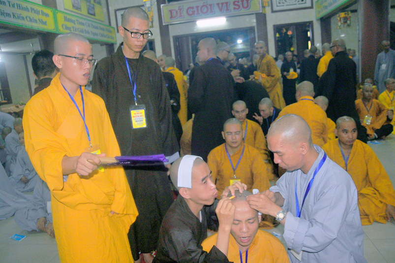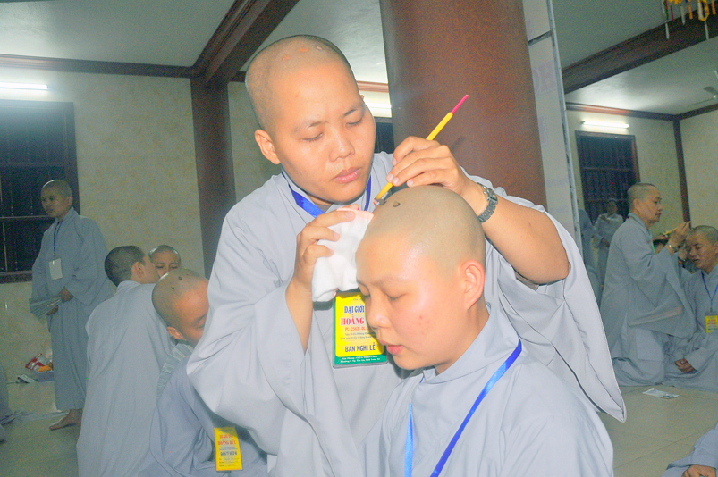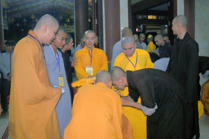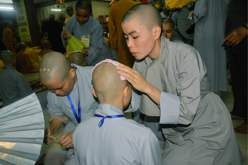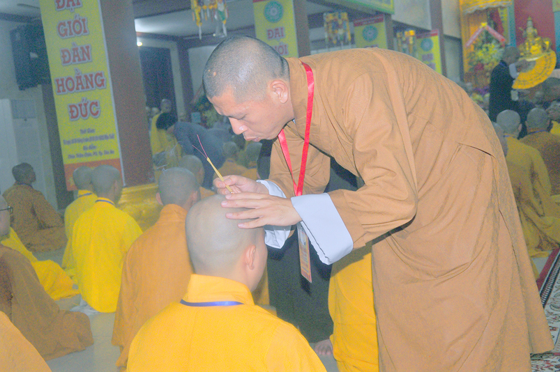 Quý giới tử được hướng dẫn cẩn thận, chi tiết trước khi được phát nguyện tấn hương. Các giới tử nhiếp tâm trong tiếng niệm Phật và hòa quyện trong tiếng trống bát nhã để vượt qua thử thách đau đớn của việc tấn hương.
