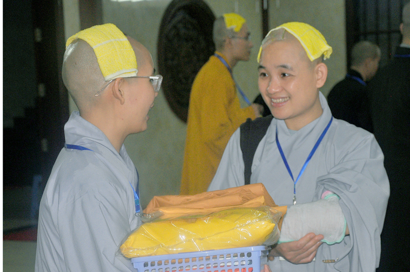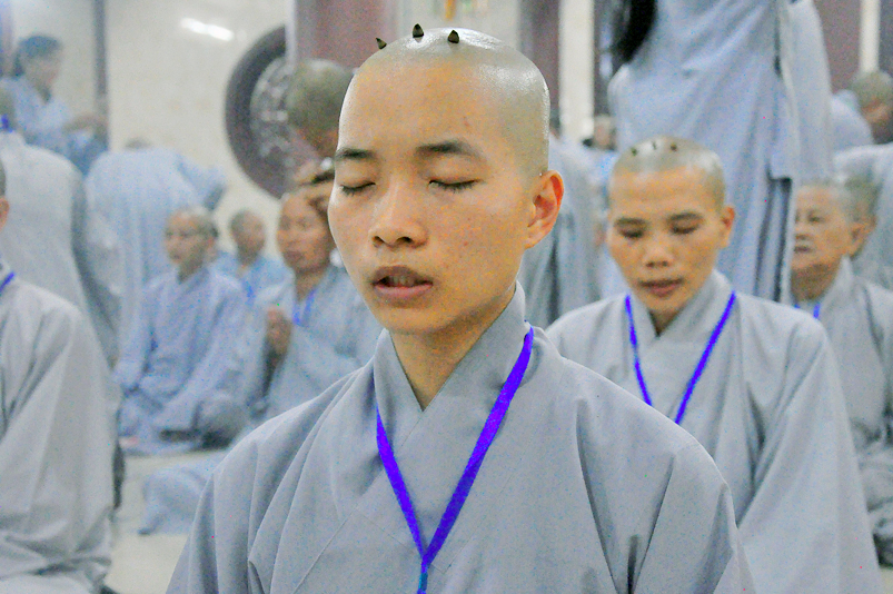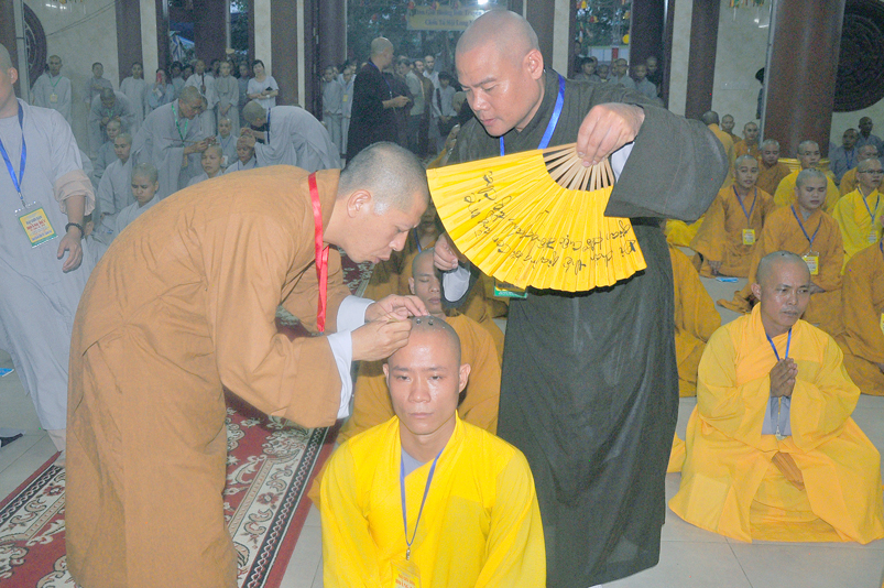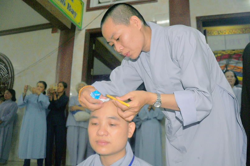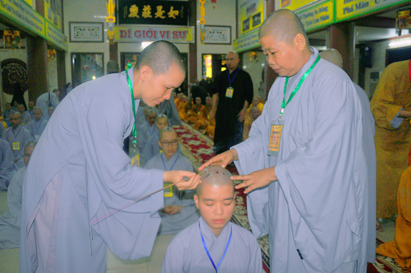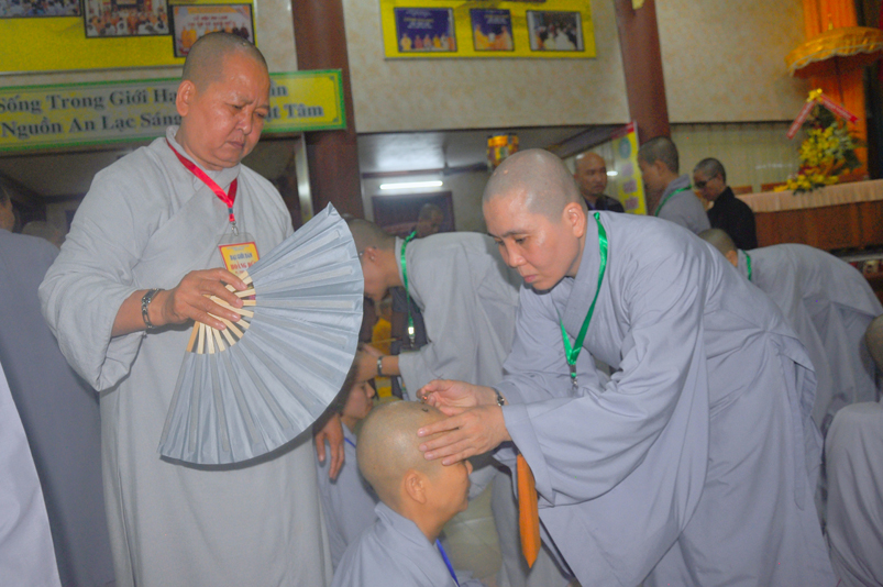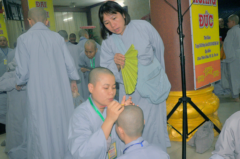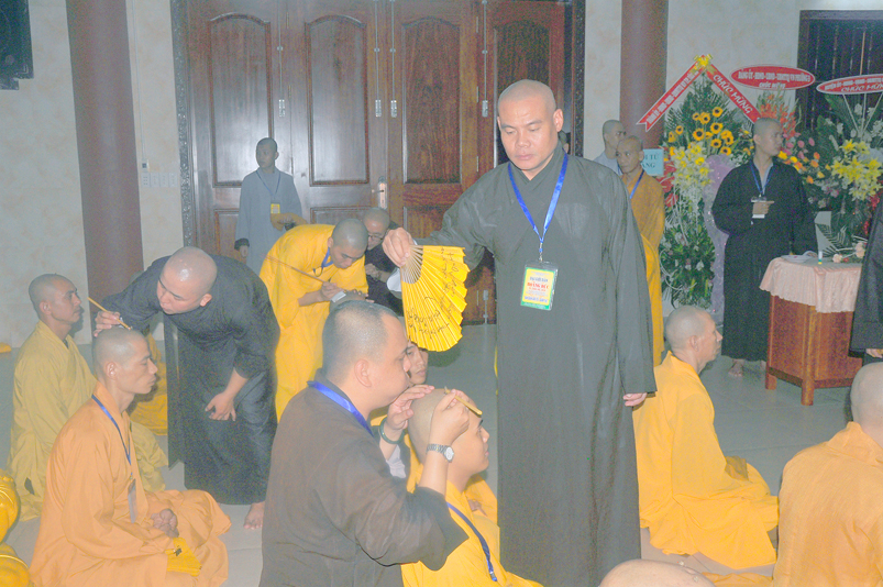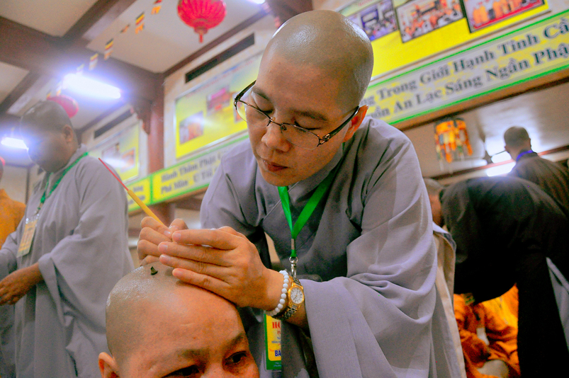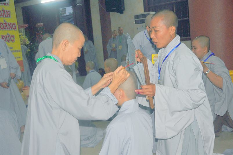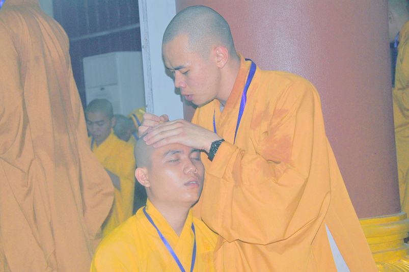 Quý giới tử được hướng dẫn cẩn thận, chi tiết trước khi được phát nguyện tấn hương. Các giới tử nhiếp tâm trong tiếng niệm Phật và hòa quyện trong tiếng trống bát nhã để vượt qua thử thách đau đớn của việc tấn hương.