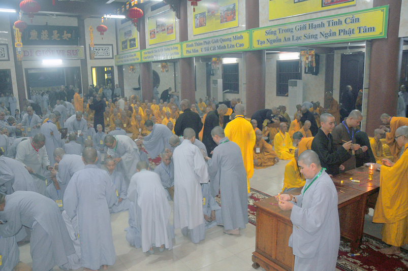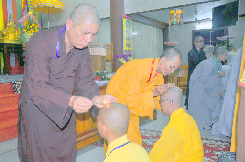 Cùng ngày 29/03/2018, sau phần thọ Bồ Tát Giới, có trên 150 giới tử phát nguyện tấn hương cúng dường Tam Bảo và thực hành Bồ Tát hạnh.