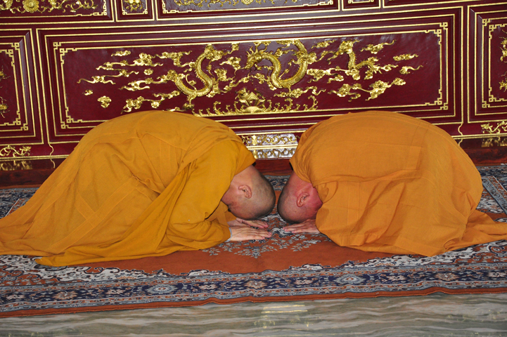 “Kính vâng”. Và lễ Thượng tọa ba lễ, lui về chỗ cũ, đợi những vị khác thọ xong và cùng hồi hướng.
