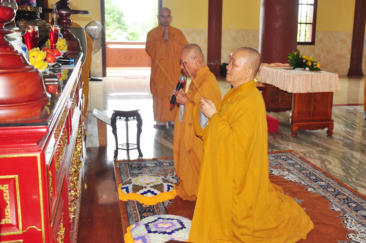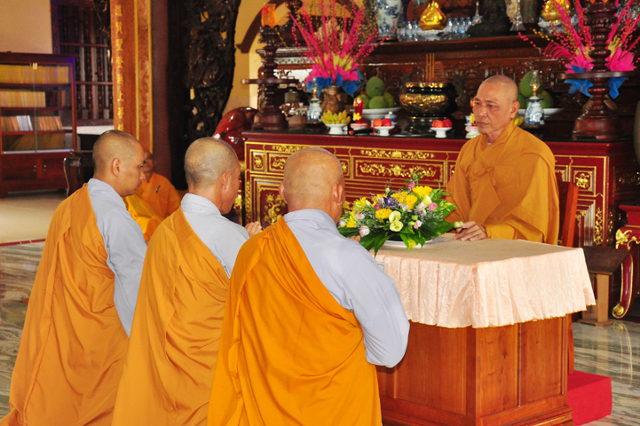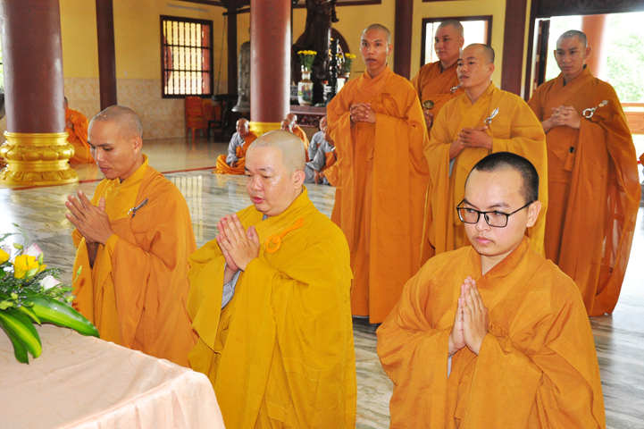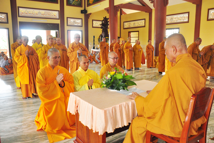 Lễ tác pháp có sự chứng minh của HT. Thích Thiện Huệ- Chứng minh Ban trị sự GHPGVN tỉnh Long An, Luật sư cho tất cả hạ trường tỉnh Long An; HT. Thích Minh Thiện- Uỷ viên HĐTSTƯ, Phó Ban Hoằng pháp trung ương, Trưởng Ban trị sự GHPGVN tỉnh Long An, Trưởng Ban tổ chức An Cư Kiết Hạ tỉnh Long An, Trụ trì chùa Thiên Châu; Đại đức Thích Đức Hoàng- Uỷ viên thường trực Ban trị sự GHPGVN tỉnh Long An, ĐĐ. Thích Quang Hạnh- Uỷ viên thường trực Ban trị sự GHPGVN tỉnh Long An, cùng Chư hành giả An cư hạ trường.