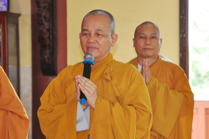 Kết thúc buổi HT. Thích Minh Thiện cung thỉnh HT. Thích Thiện Huệ ban đạo từ. Trong lời đạo từ Hoà thượng khuyến tấn toàn thể đại chúng tinh tấn tu học.