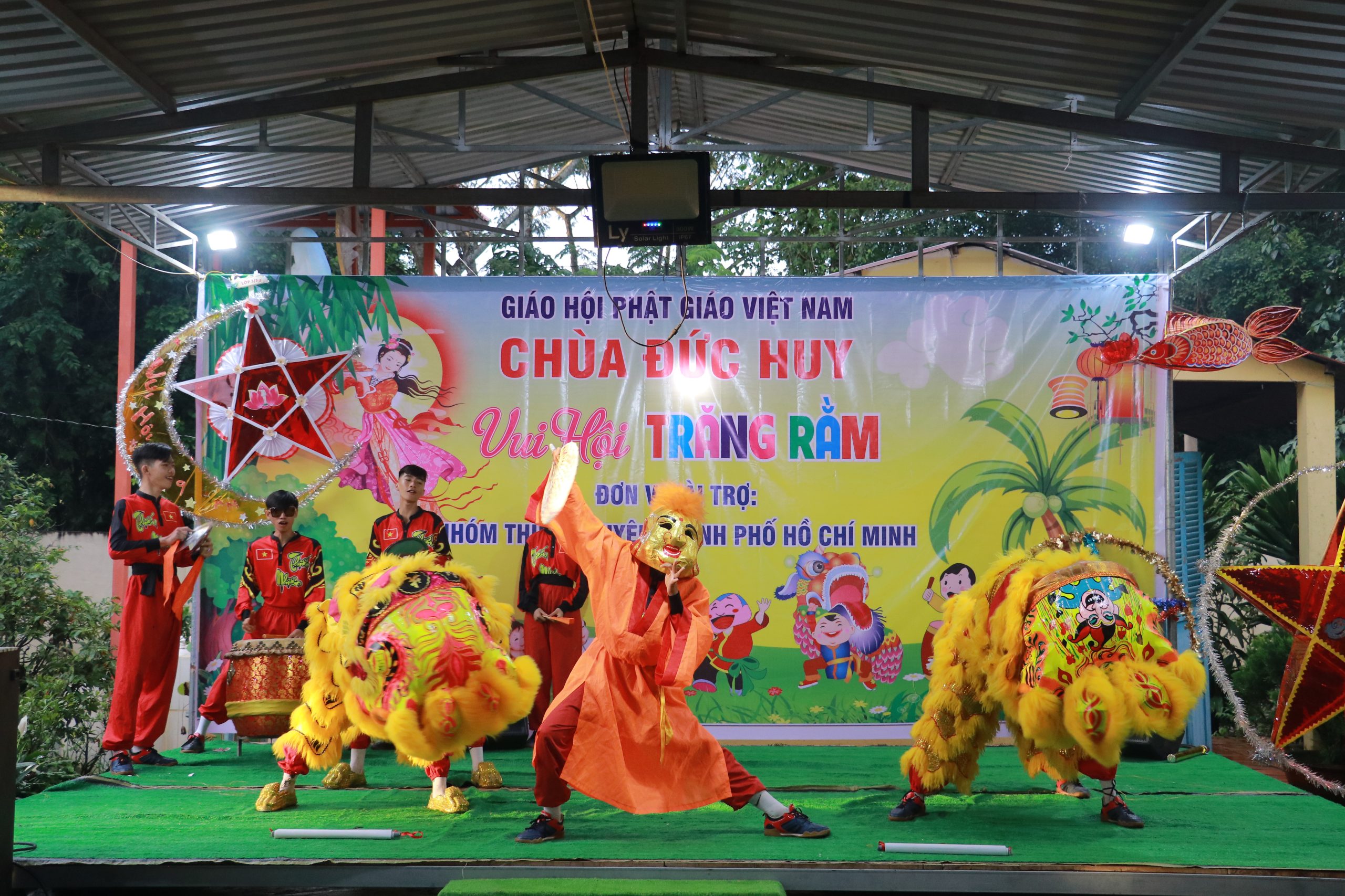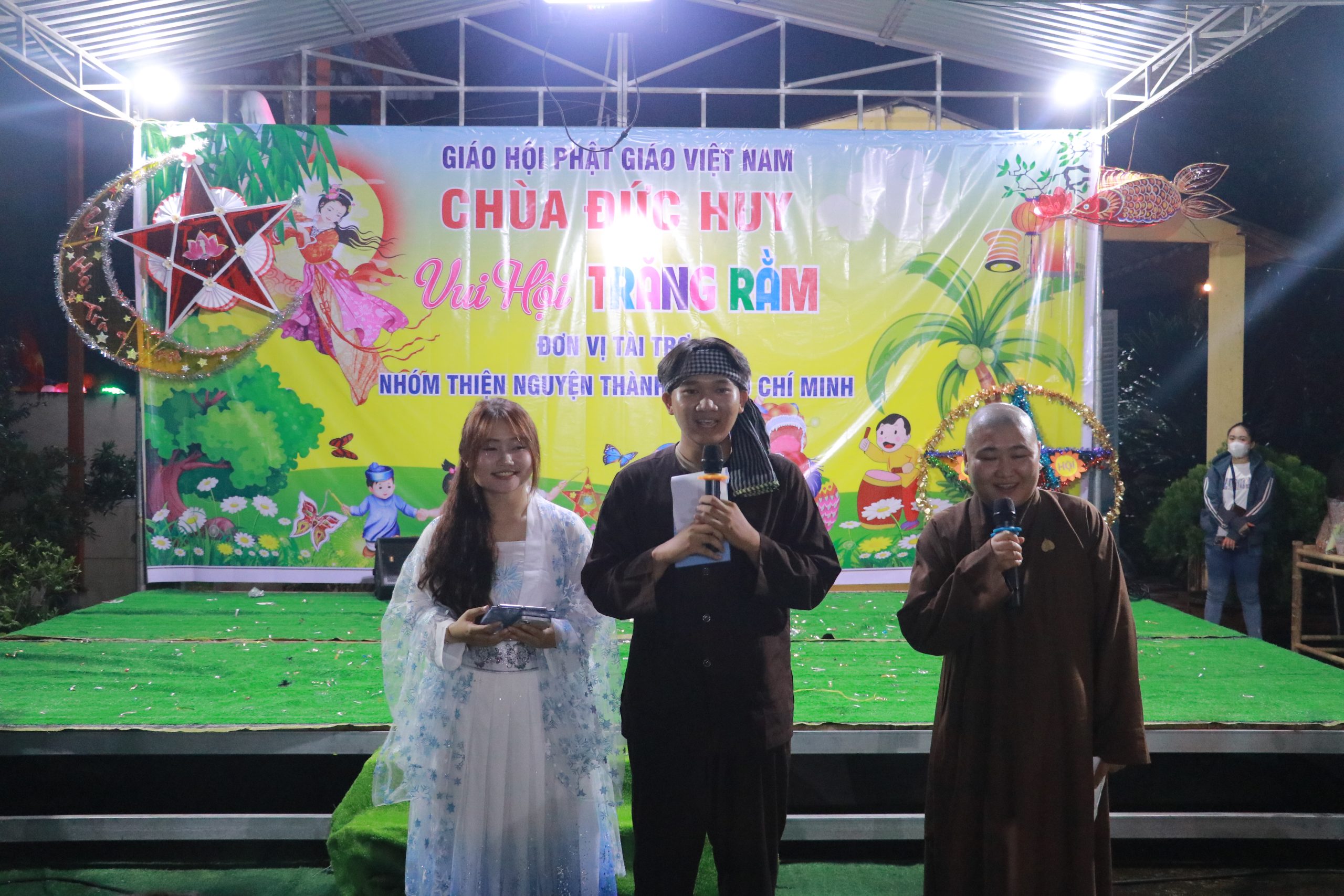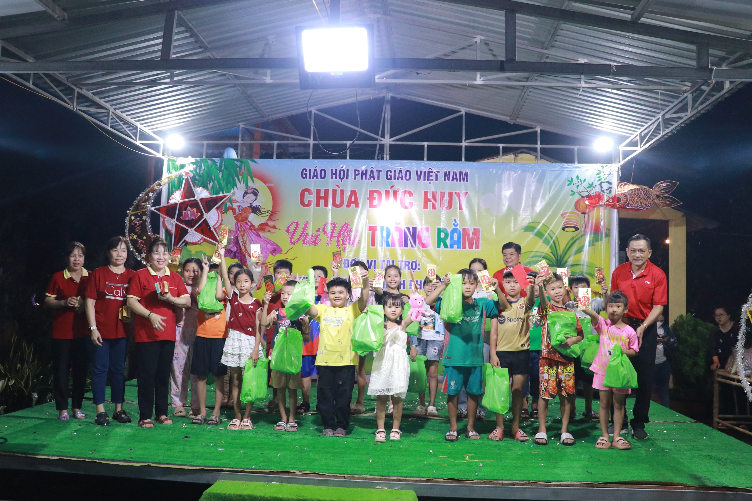 Tại đêm hội, các em nhỏ cùng gặp gỡ Chú Cuội và Chị Hằng, tham gia vào các hoạt động hoạt náo vui nhộn và cùng thưởng thức các tiết mục văn nghệ. Dịp này, chùa Đức Huy đã kết nối quý mạnh thường quân trao hơn 300 phần quà cho các em nhỏ tham dự, tổng trị giá 30 triệu đồng.