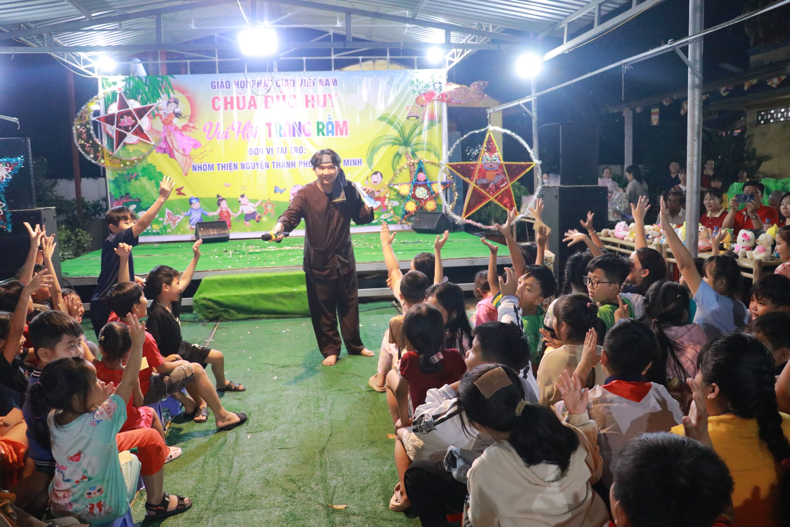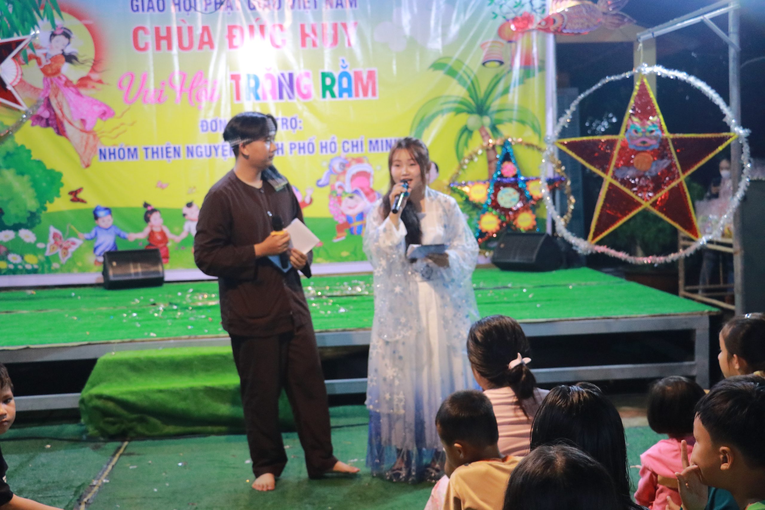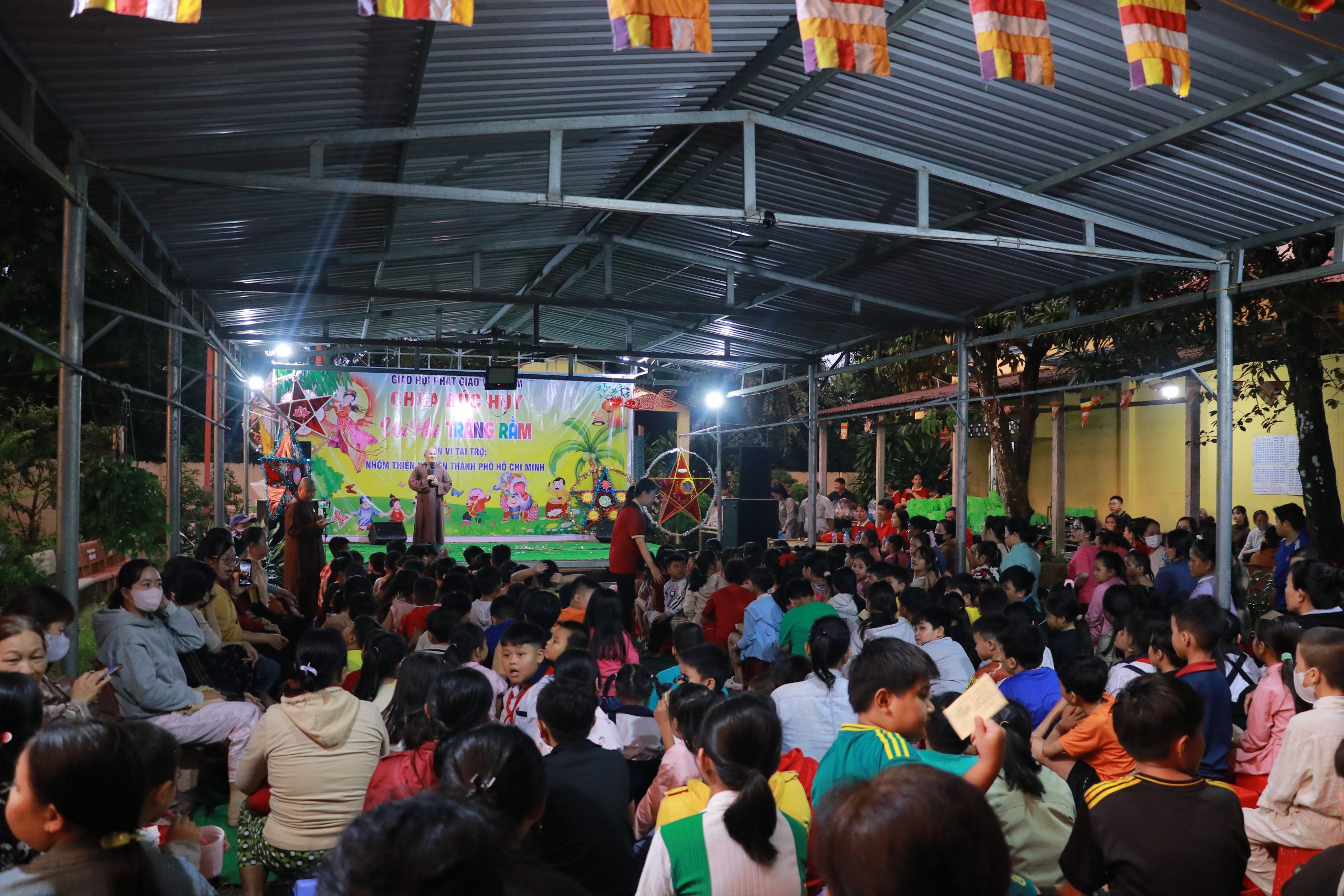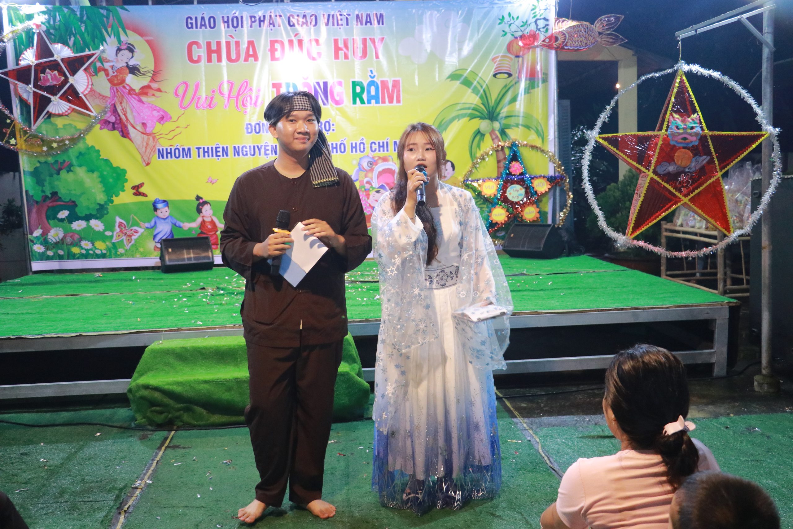 Tại đêm hội, các em nhỏ cùng gặp gỡ Chú Cuội và Chị Hằng, tham gia vào các hoạt động hoạt náo vui nhộn và cùng thưởng thức các tiết mục văn nghệ. Dịp này, chùa Đức Huy đã kết nối quý mạnh thường quân trao hơn 300 phần quà cho các em nhỏ tham dự, tổng trị giá 30 triệu đồng.