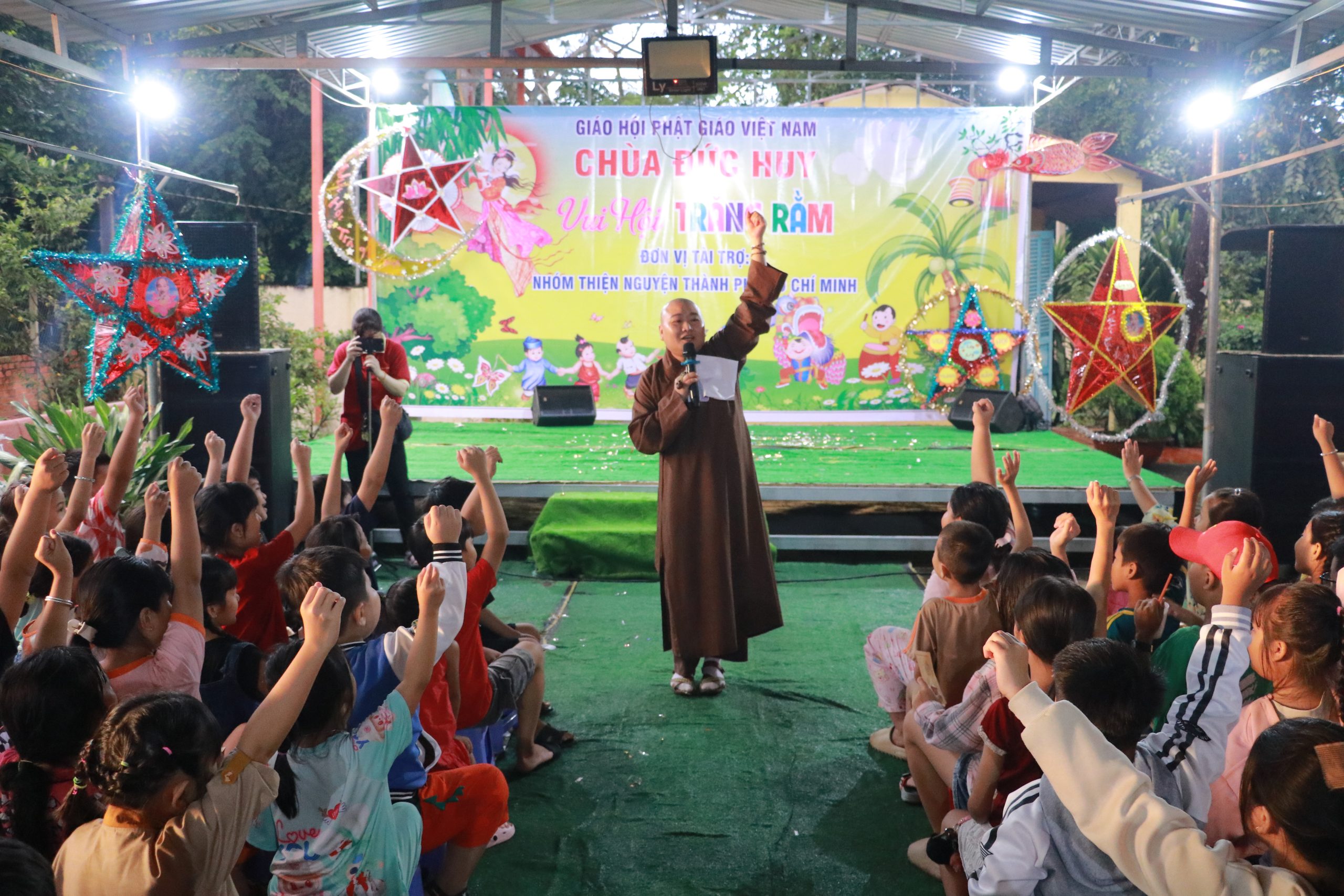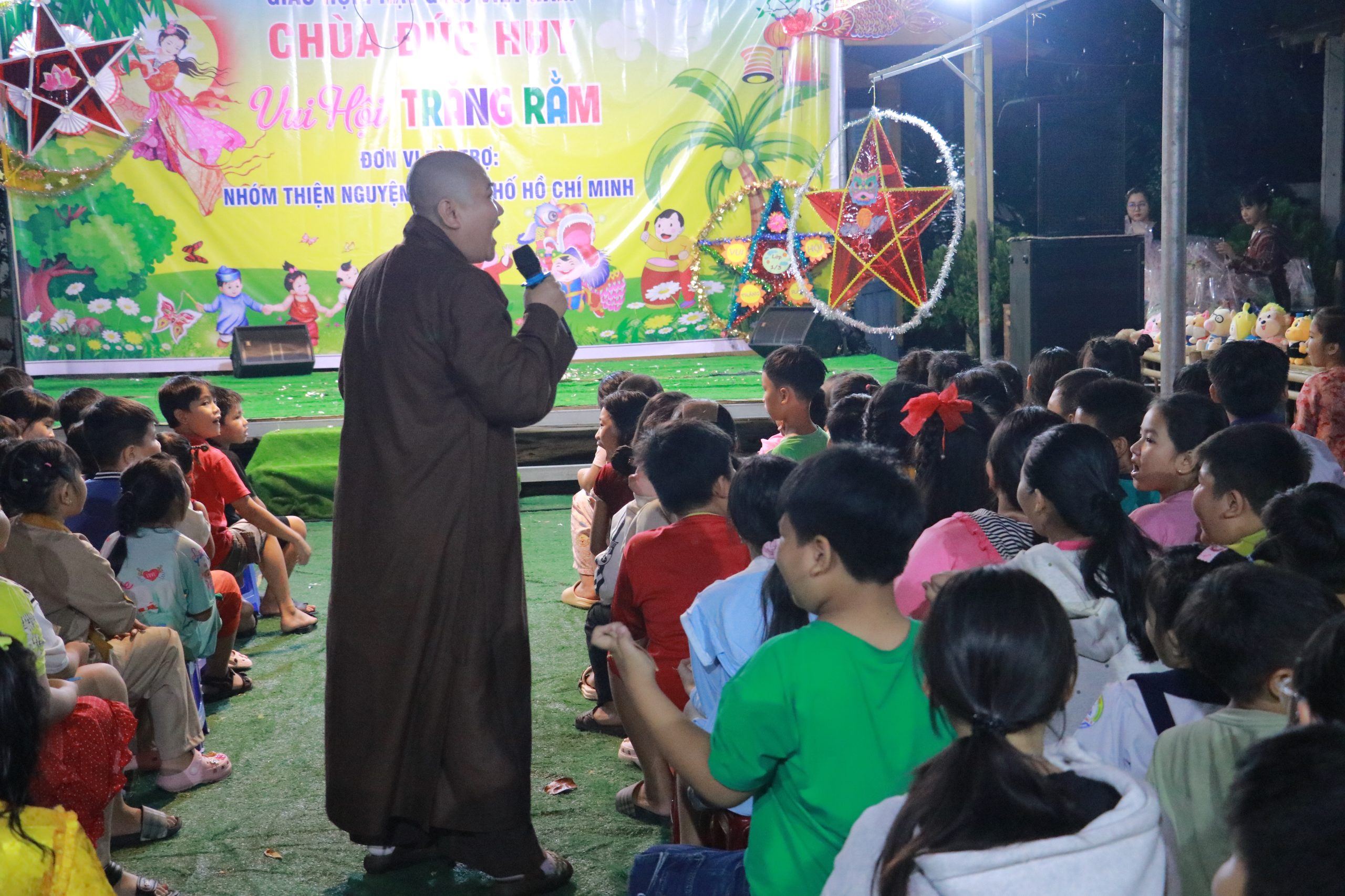 Phát biểu khai mạc, Đại đức Thích Trí Huệ đã gửi lời chào đón các em nhỏ đến tham dự đêm hội. Trong nhiều năm qua, chùa Đức Huy cùng quý mạnh thường quân và Phật tử địa phương luôn dành sự quan tâm, chăm lo cho các em học sinh Trường Tiểu học Đức Lập Thượng B, một điểm trường còn nhiều khó khăn, xa trung tâm. Chính nhờ những tấm lòng nhân ái ấy, chương trình Trung thu hằng năm đã đem tình thương và sự sẻ chia đến gần hơn các em. Sau cùng, Đại đức gửi lời tri ân đến quý mạnh thường quân, quý Phật tử và các tình nguyện viên đã cùng đồng hành, góp phần thắp sáng thêm ánh trăng yêu thương cho các em trong đêm hội năm nay.