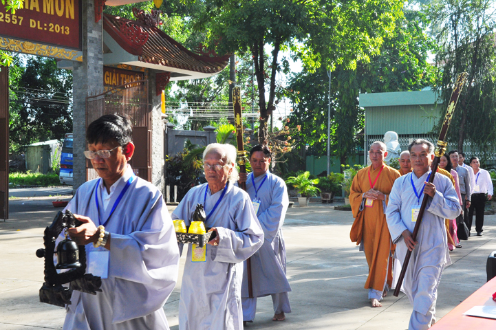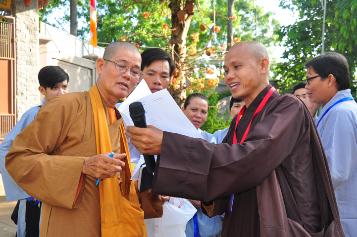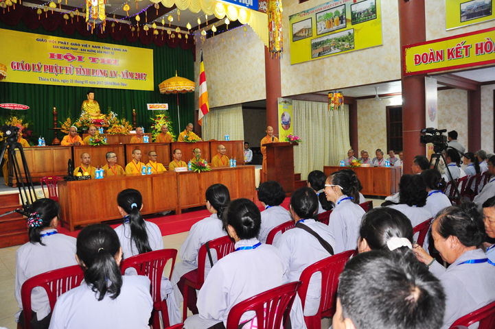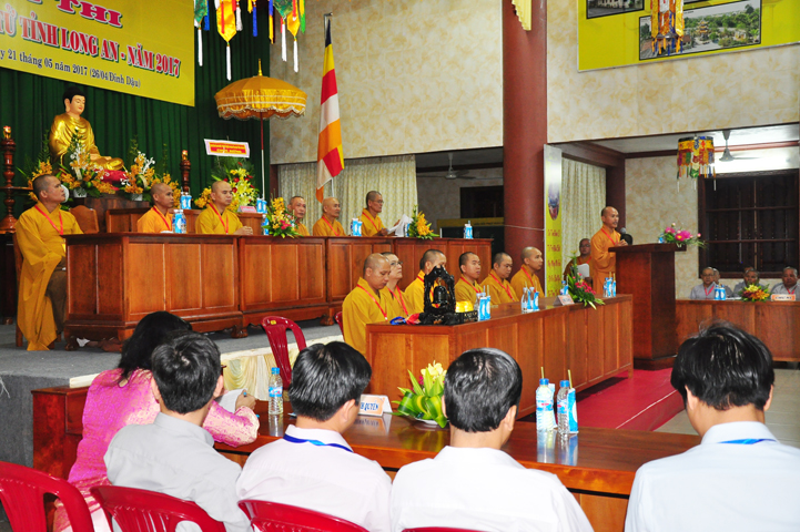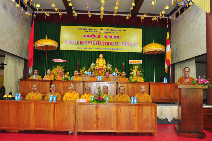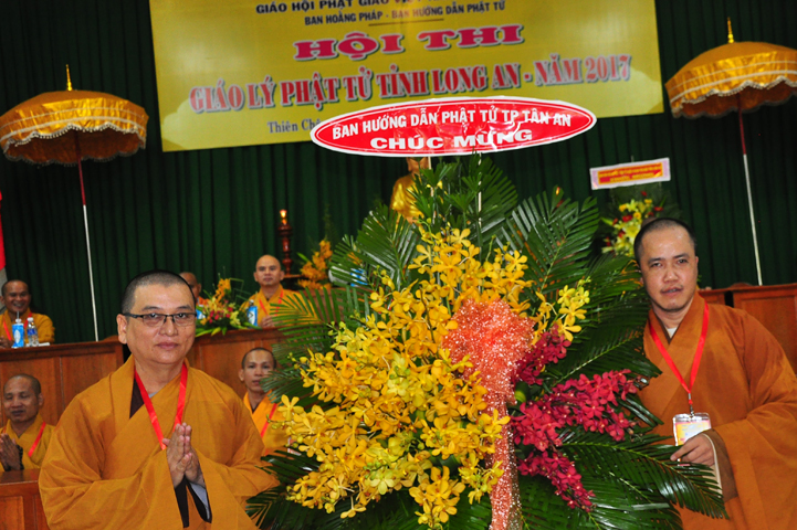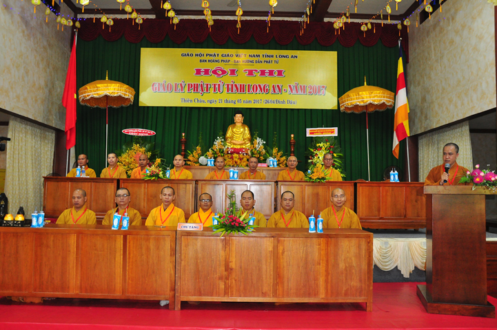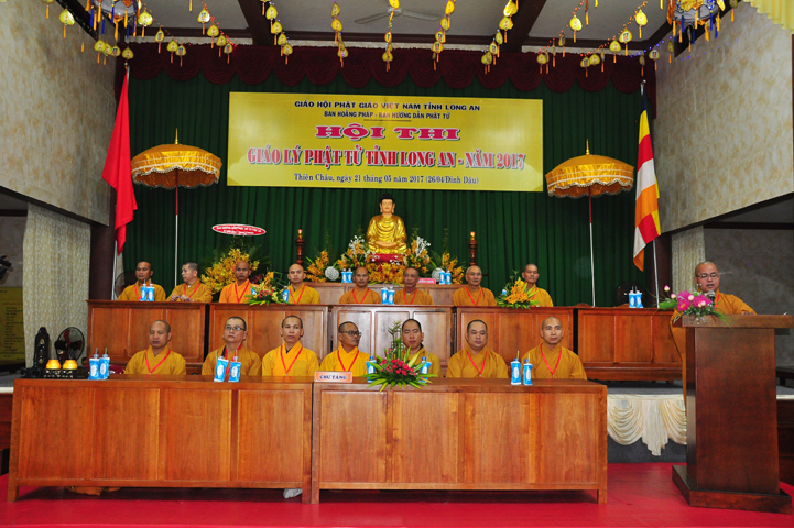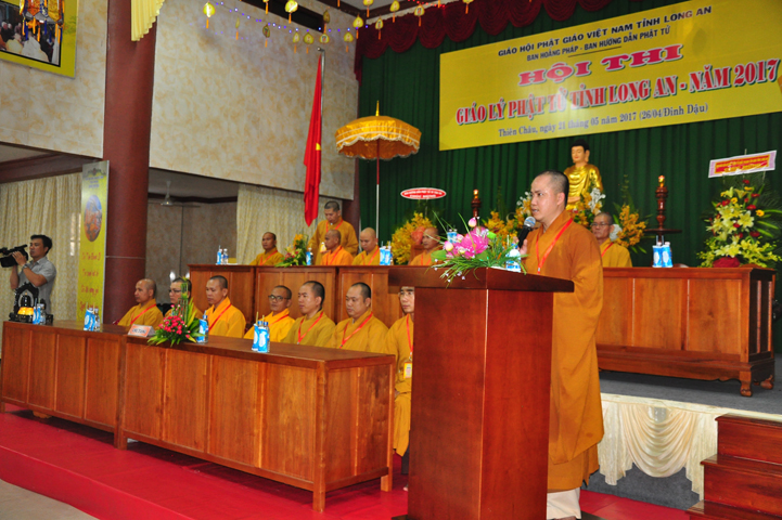 Đạo từ tai buổi lễ khai mạc hội thi, HT Thích Thiện Huệ – Chứng minh BTS GHPGVN tỉnh Long An đã tán dương Chư tôn đức trong Ban tổ chức đã tạo điều kiện để có được hội thi này. Hòa thượng tỏ bày sự hoan hỷ khi lắng nghe lời dẫn của xướng ngôn viên, lời phát biểu khai mạc của Đại đức đồng trưởng ban tổ chức, lời phát biểu của bà Phó chủ tịch UBMTTQ tỉnh Long An.