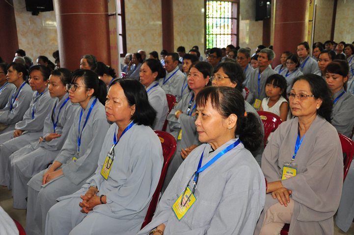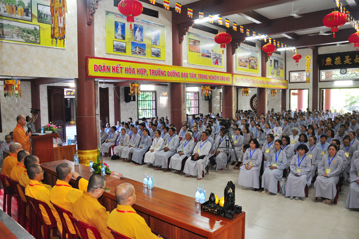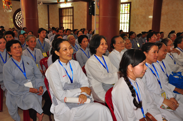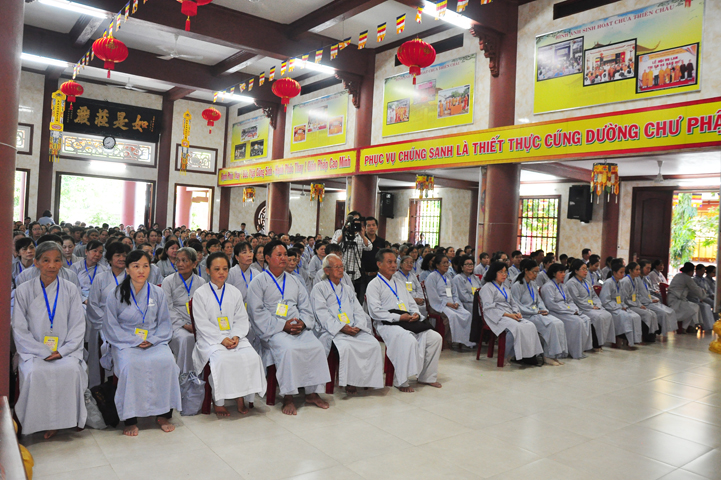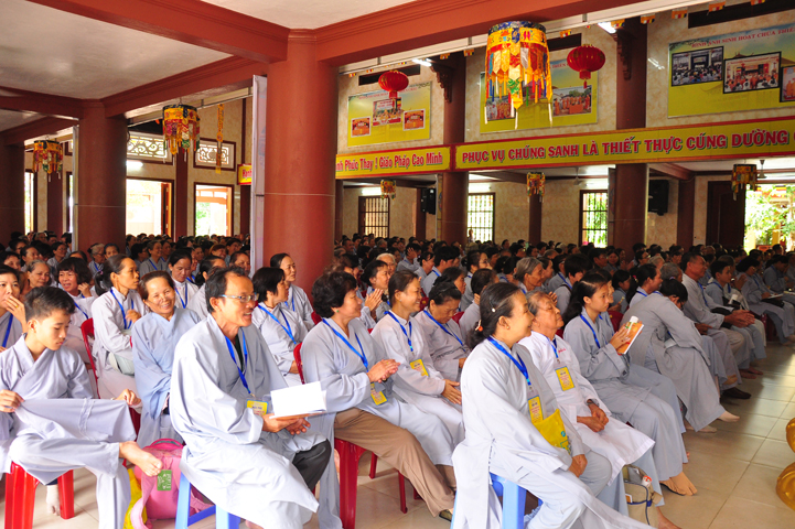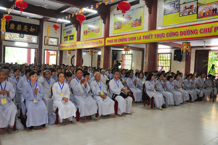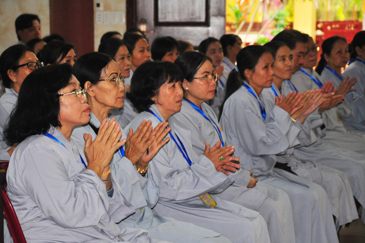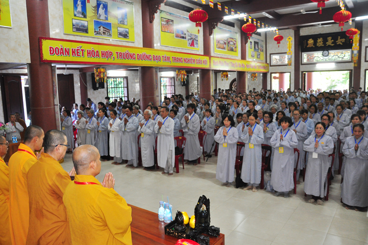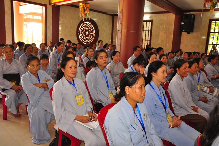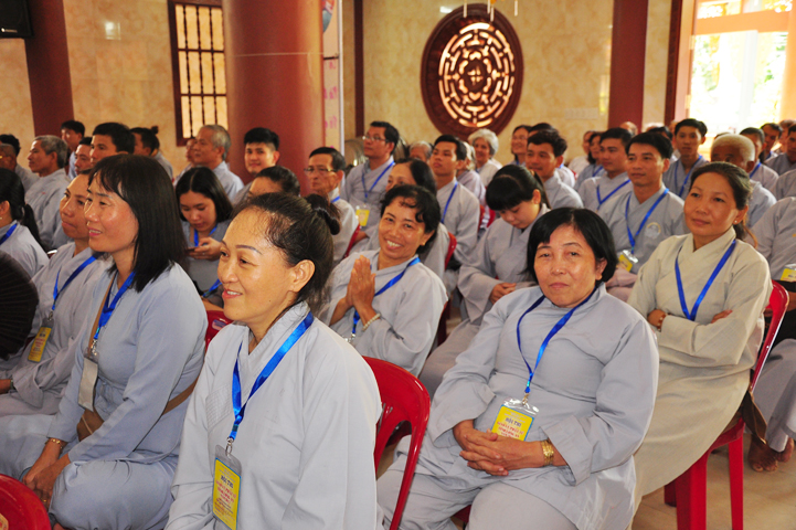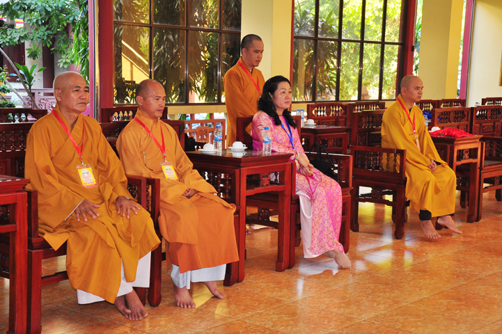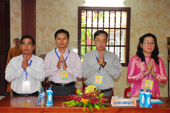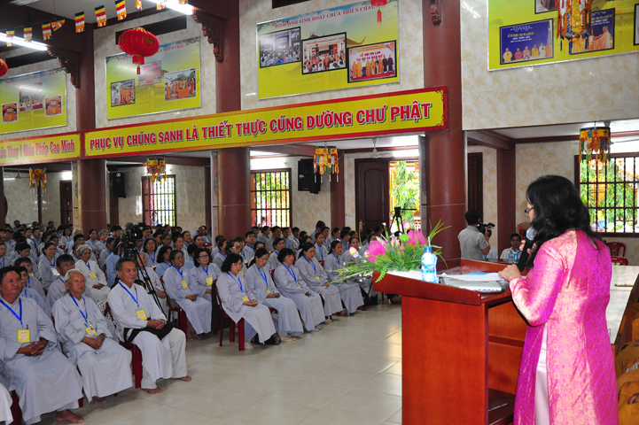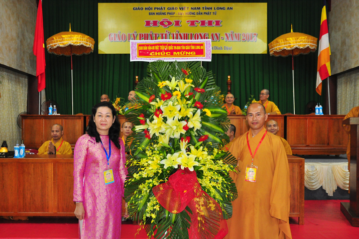 Tiếp theo đó đại biểu Chính Quyền tham dự, bà Phạm Ngọc Tiệp – Phó chủ tịch UBMTTQVN tỉnh Long An đã phát biểu: Phật giáo có mặt từ rất sớm ở nước ta. Phật giáo đã gắn bó, đồng hành và có nhiều đóng góp to lớn cho đất nước với tinh thân “Hộ quốc an dân ”. Bà phó chủ tịch đã nhắc lại câu nói bất hủ của nhà khoa học Ensten: “Nếu có một Tôn giáo nào có khả năng đáp ứng được những nhu cầu của khoa học hiện đại, thì đó chính là Phật giáo. Ba điều về Phật giáo của nhà khoa học Ensten cũng được bà nhắc lại: (1) Không cần đi tìm đạo Phật nơi khoa học vì đạo Phật đã đầy đủ tính chất khoa học, (2) Nếu cần theo một tôn giáo, (Ensten) Tôi sẽ chọn Phật giáo, (3) Từ thế kỷ 21 trở đi, không có Tôn giáo nào có thể phát triển mạnh trên thế giới bằng đạo Phật.