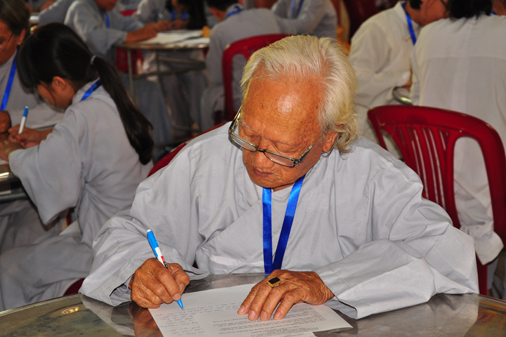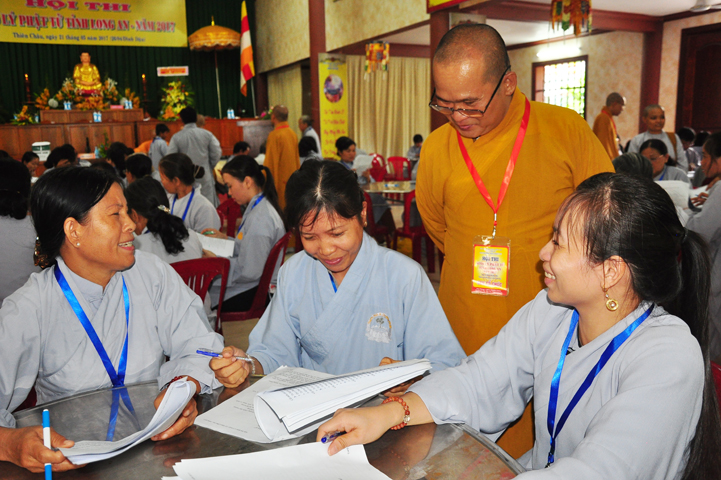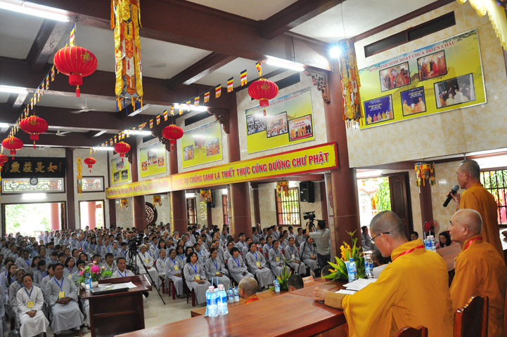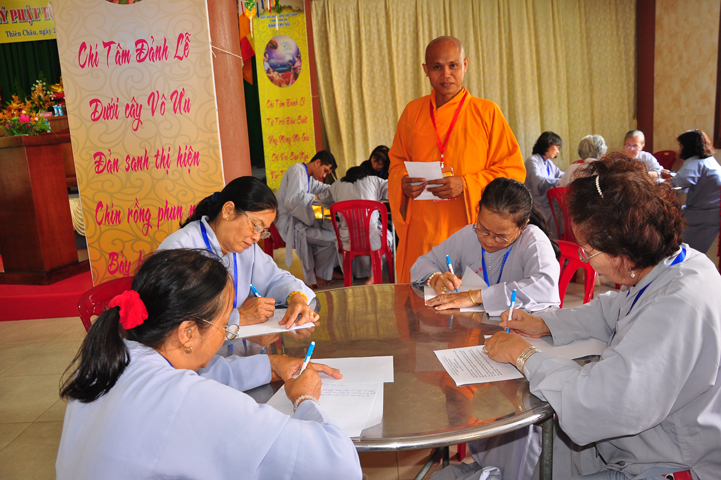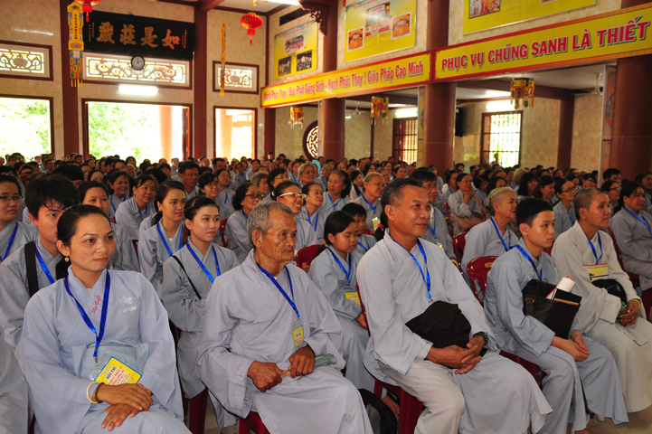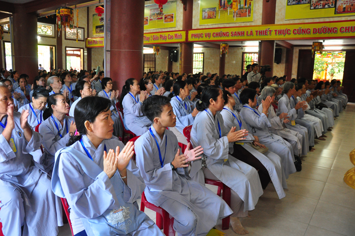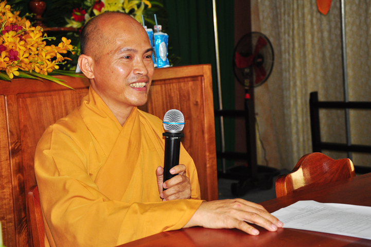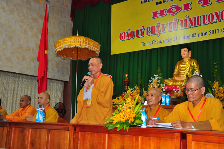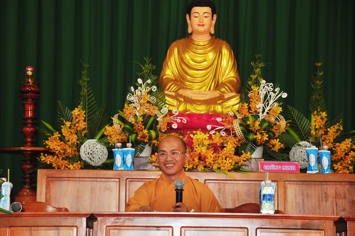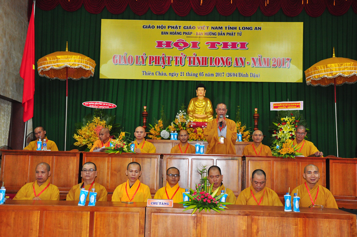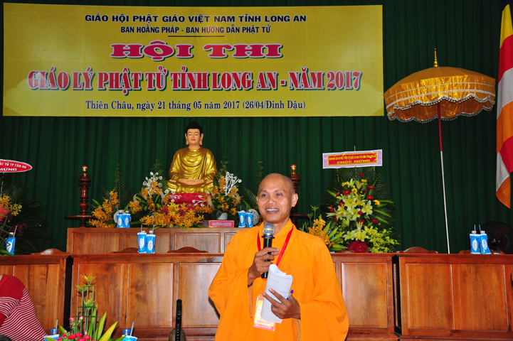 Hòa thượng có lời khen ngợi quý Phật tử đã hân hoan trở về tham dự hội thi, điều đó chứng tỏ sự thâm hiểu giáo lý đạo Phật. Tại tỉnh Long An, Ban hoằng pháp và Ban Hướng dẫn Phật tử đã đồng hành cùng với Chư tôn đức BTS GHPGVN tỉnh Long An trong việc hoằng dương Phật pháp và hướng dẫn quý Phật tử tu học. Hòa thượng đã ghi nhận sự học tập Phật pháp của quý Phật tử trong thời gian vừa qua để hôm nay tham dự hội thi. Hòa thượng hy vọng quý Phật tử đem hết tâm lực để thi cử. Nếu đạt kết quả cao thì tốt, còn chưa đạt thì cũng không có gì làm mất hoan hỷ mà hãy cố gắng thêm.