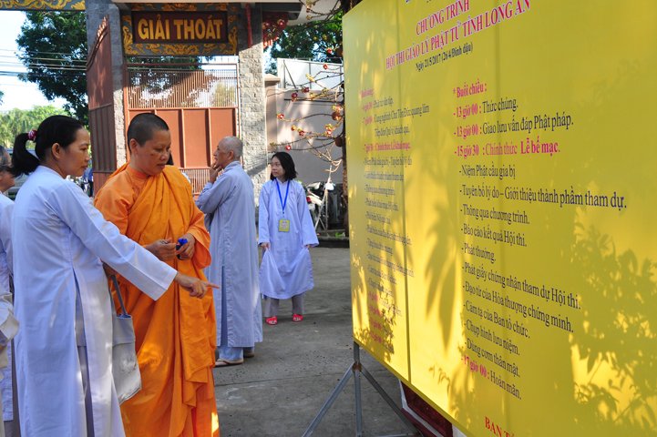 Chứng minh và tham dự buổi lễ gồm có: HT Thích Thiện Huệ – Chứng minh BTS GHPGVN tỉnh Long An và Tp Tân An; ĐĐ Thích Lệ Trí – UV HĐTS, Trưởng ban Hoằng pháp GHPGVN tỉnh Long An, đồng trưởng ban BTC hội thị; TT. Thích Từ Thiện – Trưởng ban BTS GHPGVN tỉnh Long An; ĐĐ Thích Lệ Tấn – Phó trưởng ban Thường trực BTS GHPGVN liên huyện thị Tân Thạnh – Kiến Tường – Vĩnh Hưng; ĐĐ Thích Lệ Ngôn – UV BTS GHPGVN tỉnh Long An, giáo thọ trường TCPH tỉnh Long An; ĐĐ. Thích Thiện Danh – Phó thư ký kiêm Chánh văn phòng BTS GHPGVN tỉnh Long An, ĐĐ Thích An Nhựt – Trưởng ban Hướng dẫn Phật tử GHPGVN tỉnh Long An, trưởng ban BTC hội thi cùng Chư tôn đức Tăng Ni hiện diện.