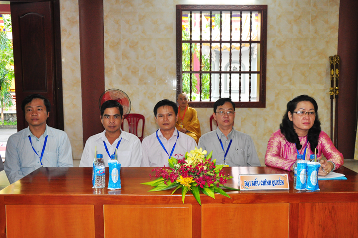 Về phía quan khách chính quyền tham dự gồm có: Bà Phạm Ngọc Tiệp – Phó Chủ Tịch UBMTTQVN tỉnh Long An, Ông Nguyễn Văn Mưng – Phó Ban Tôn giáo tỉnh Long An; Ông Nguyễn Thanh Sơn – UV TT, trưởng Ban Tôn giáo Dân tộc UBMTTQVN tỉnh Long An, Ông Ngô Tấn Hùng – Phó chủ tịch UBND phường 3