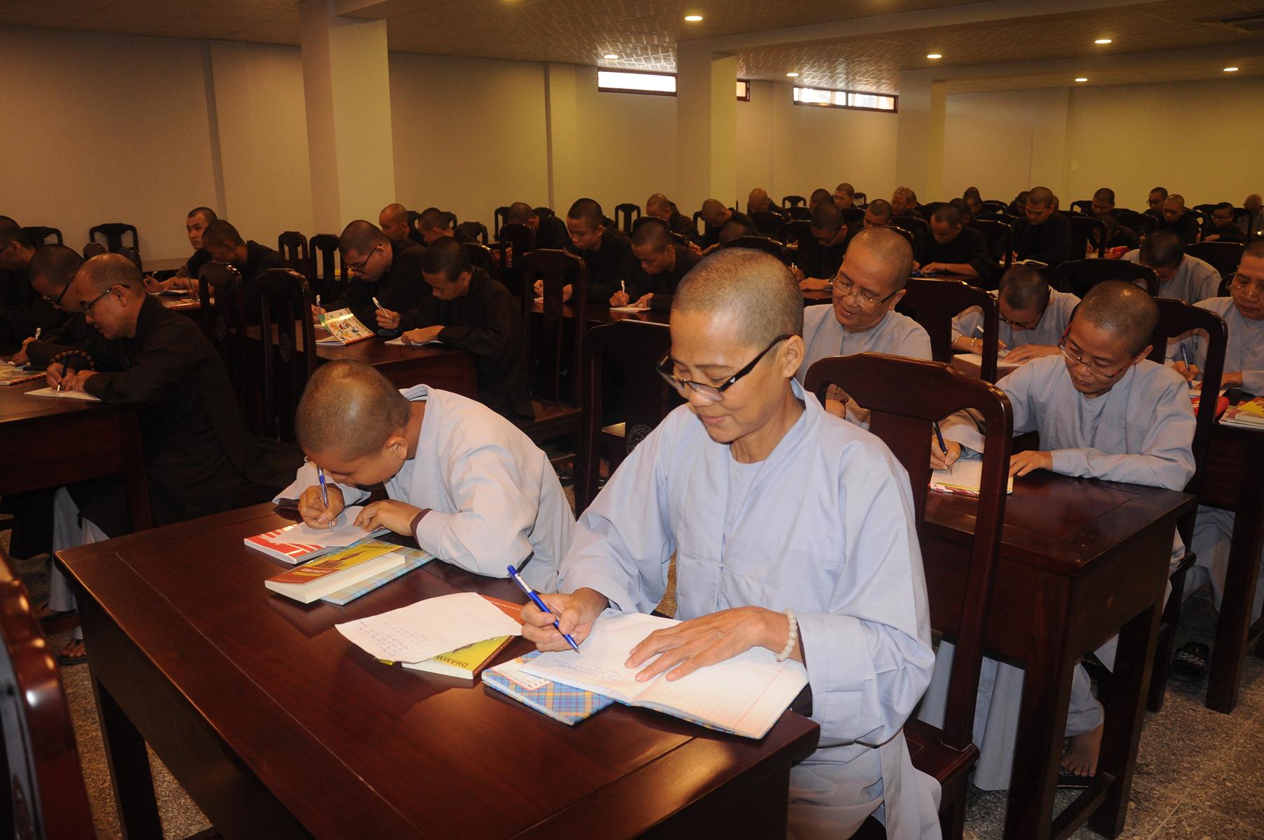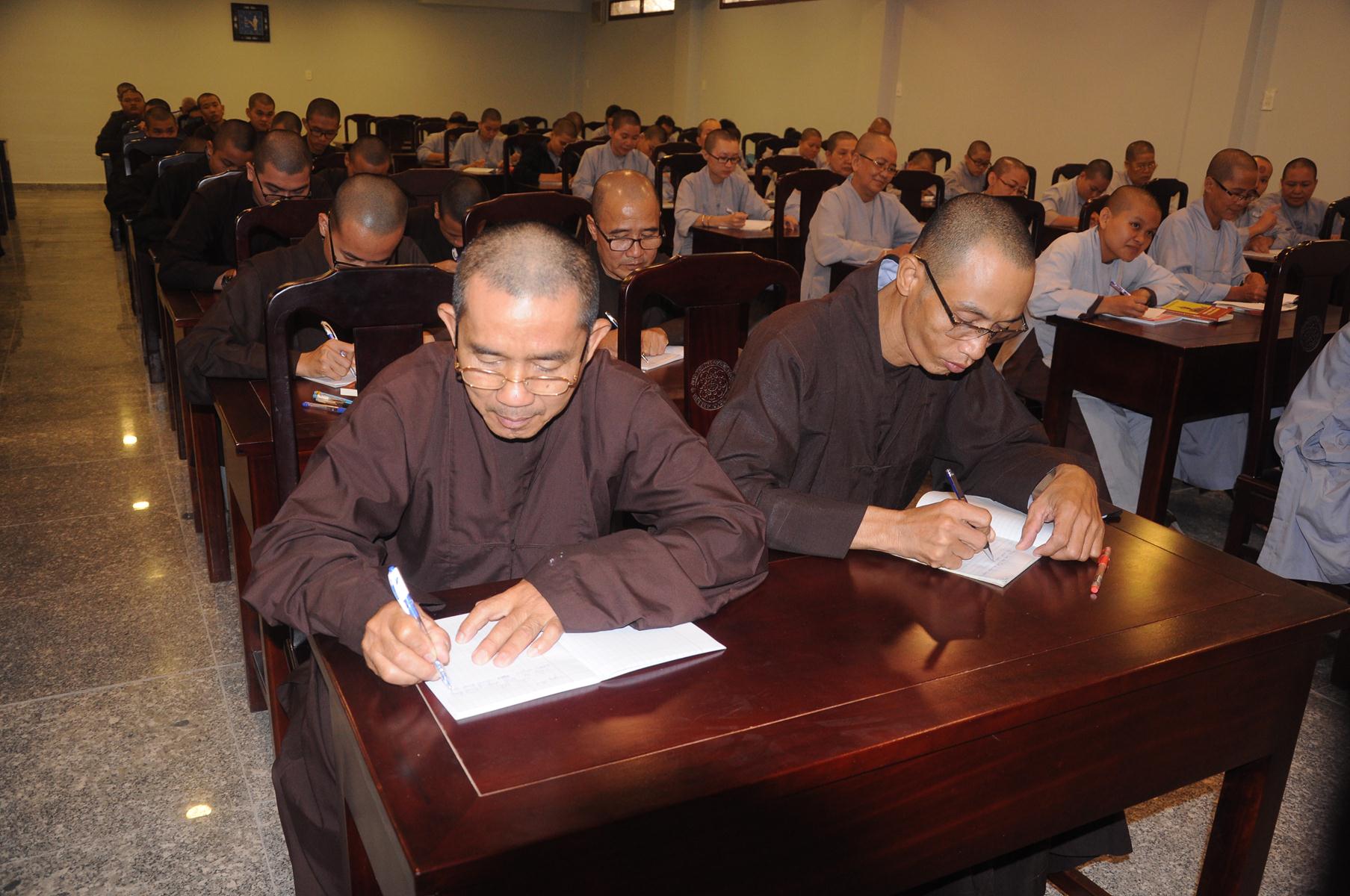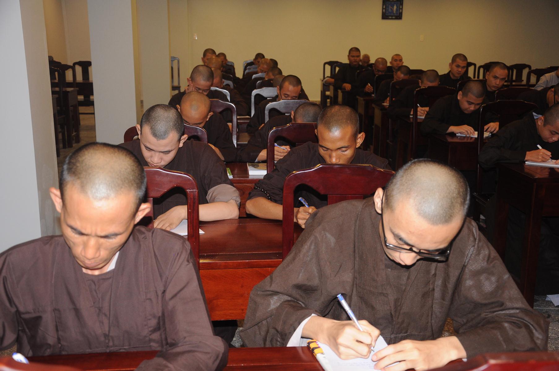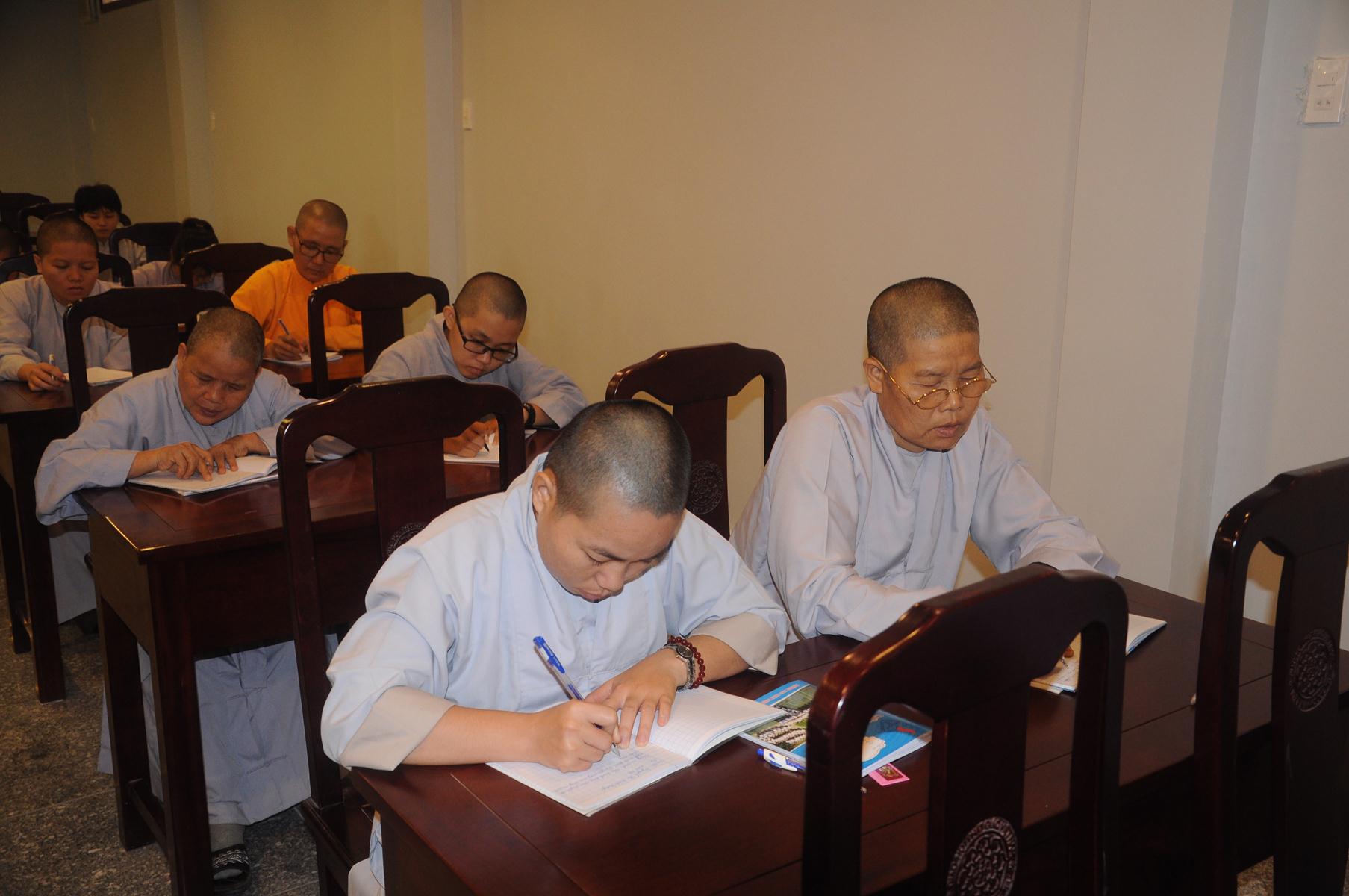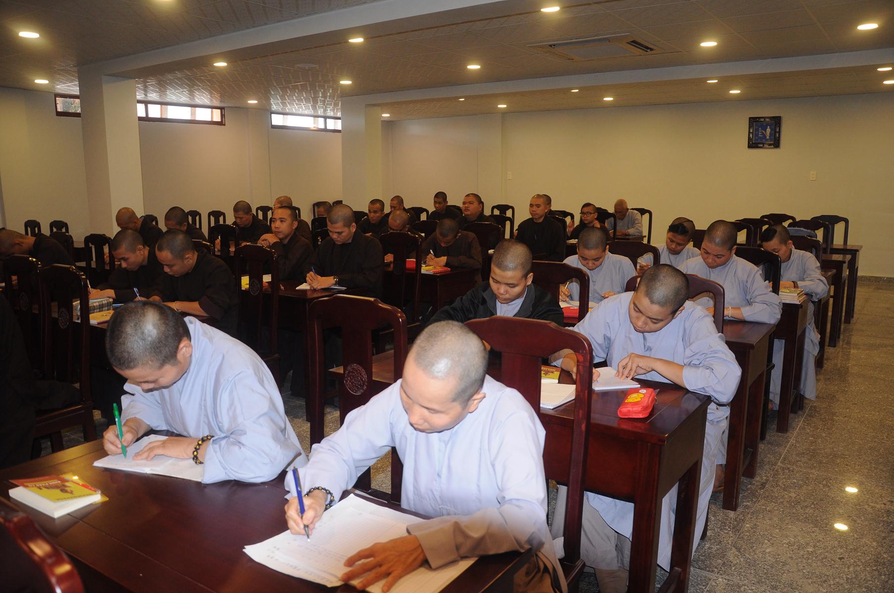 Sau cùng, Hòa thượng cho Tăng Ni sinh làm bài kiểm tra 15 phút tại lớp với hai câu hỏi đơn giản: Tăng Ni sinh hãy cho biết nhân duyên nào mình xuất gia và nguyện vọng của Tăng Ni sinh hiện nay là gì?.
