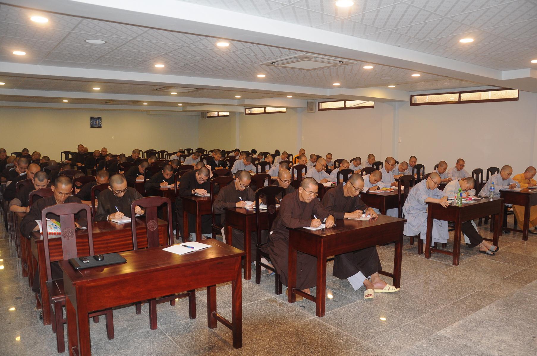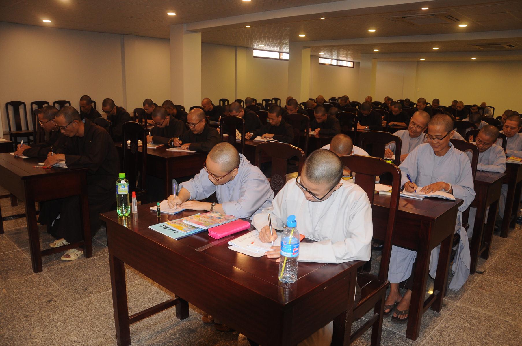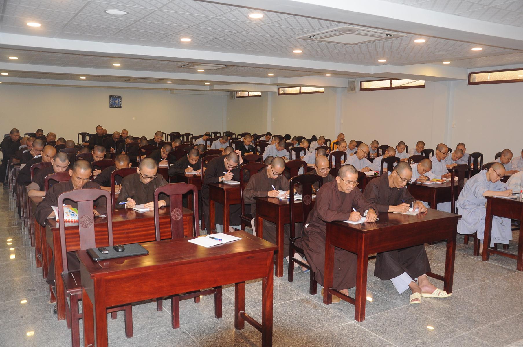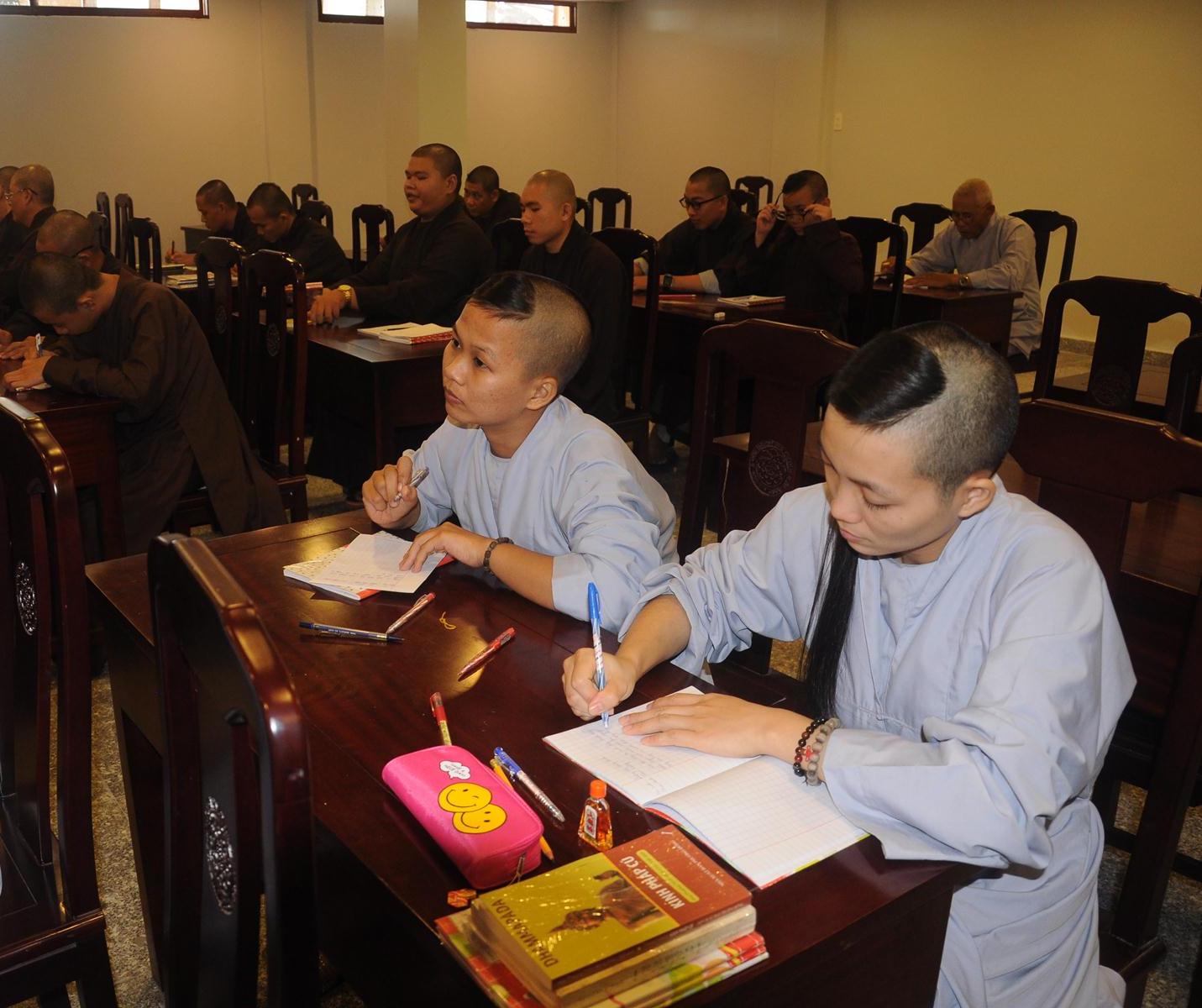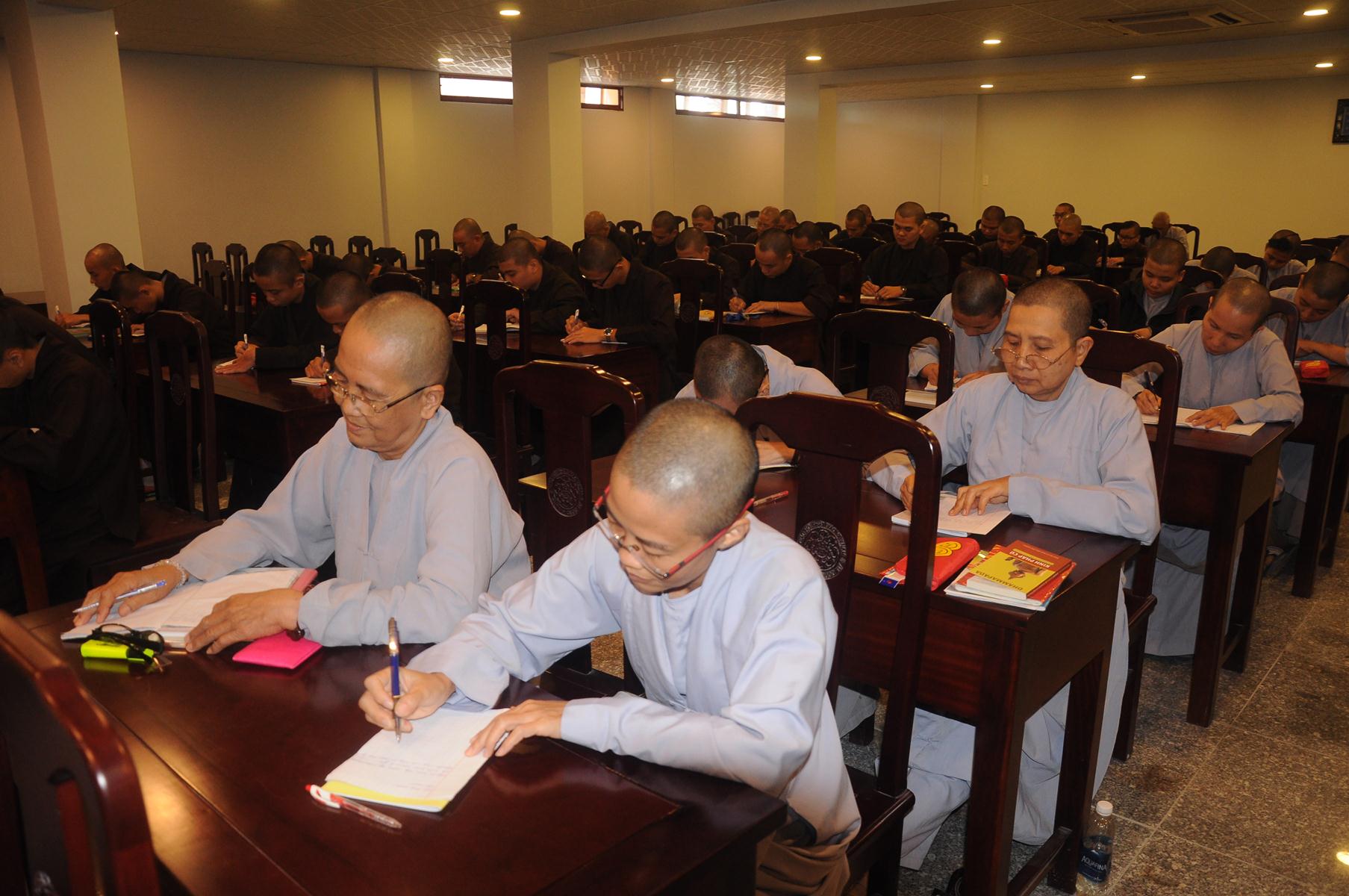 Sau cùng, Hòa thượng cho Tăng Ni sinh làm bài kiểm tra 15 phút tại lớp với hai câu hỏi đơn giản: Tăng Ni sinh hãy cho biết nhân duyên nào mình xuất gia và nguyện vọng của Tăng Ni sinh hiện nay là gì?.