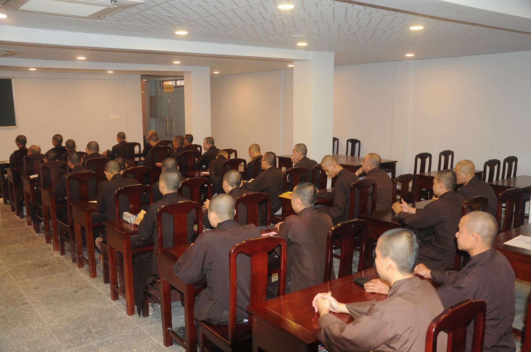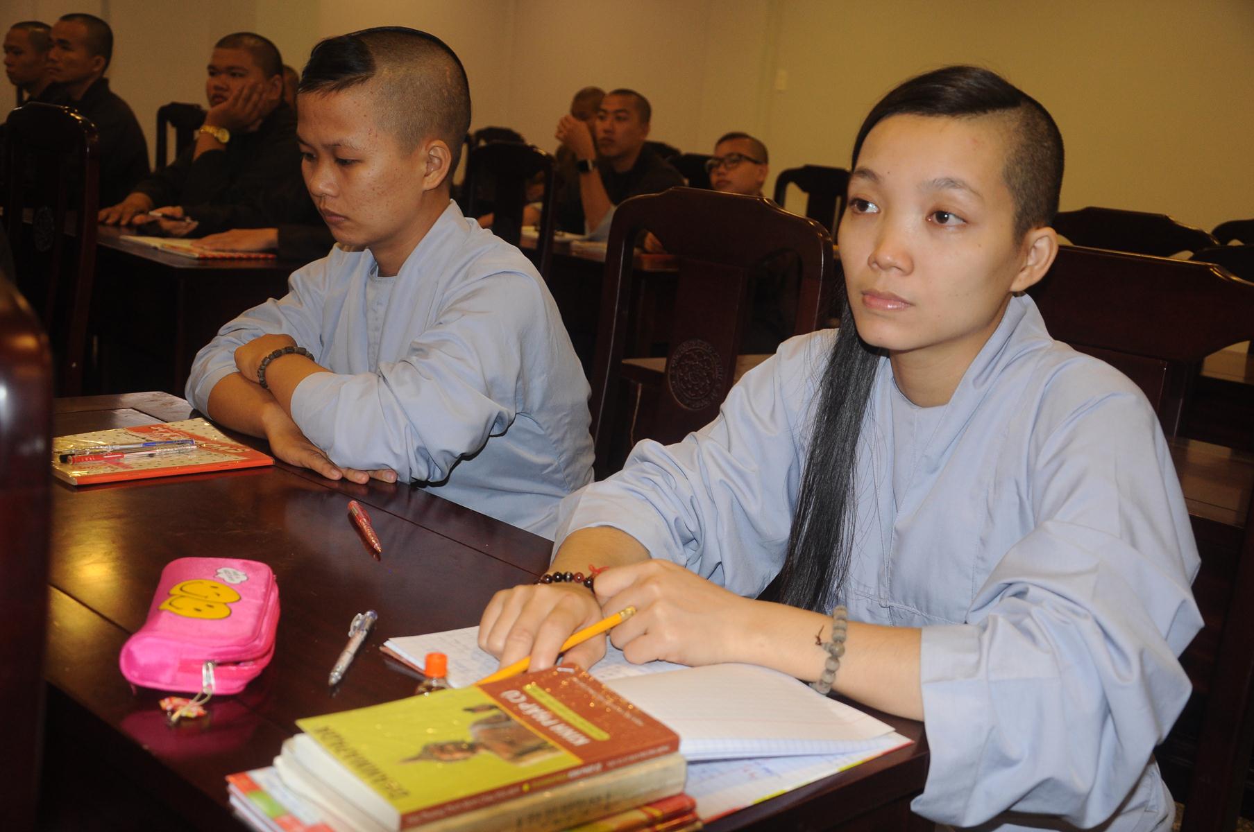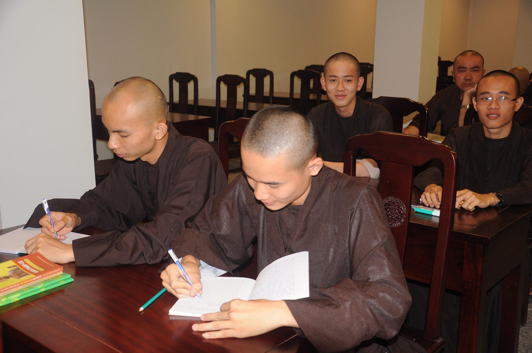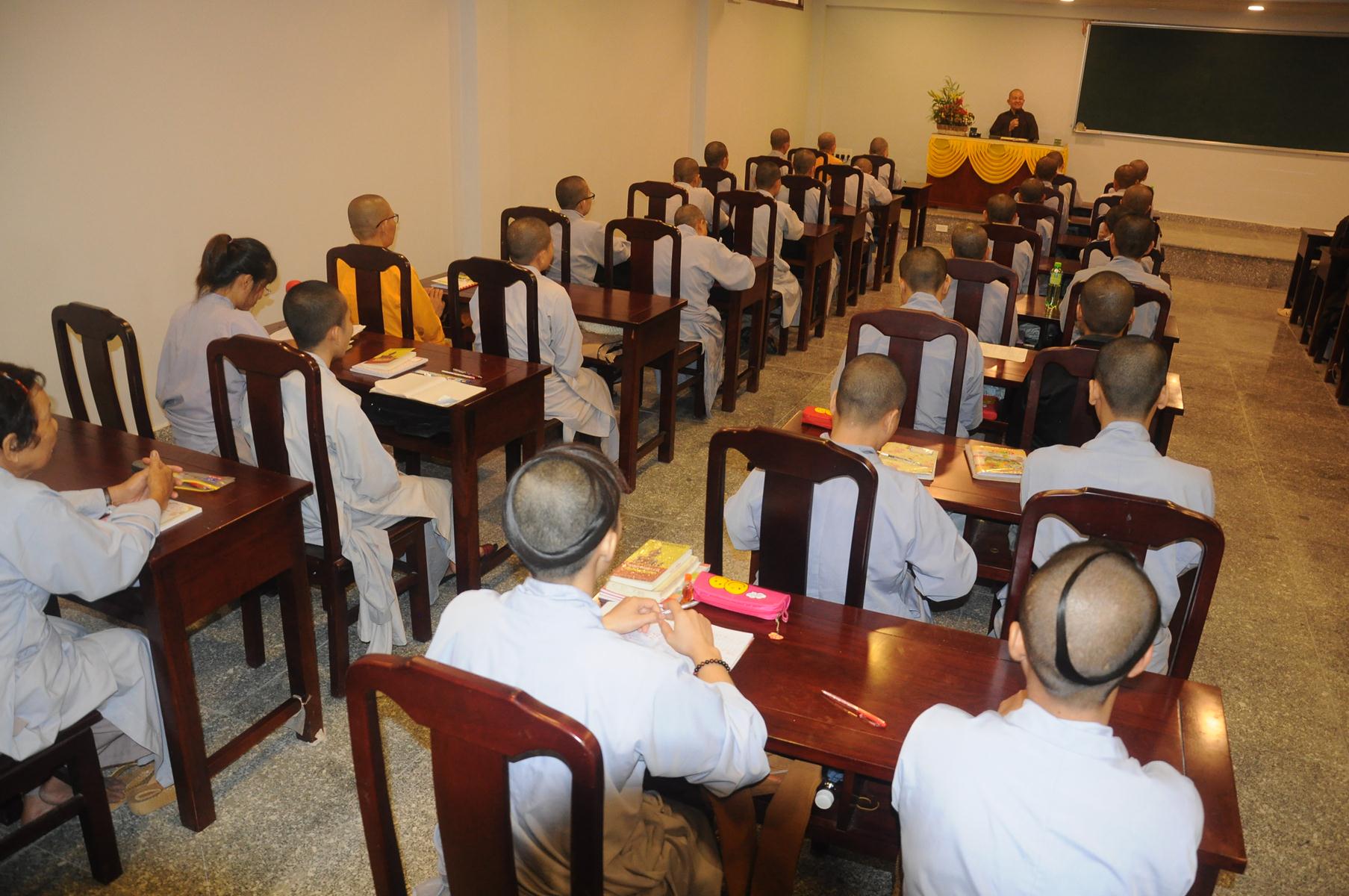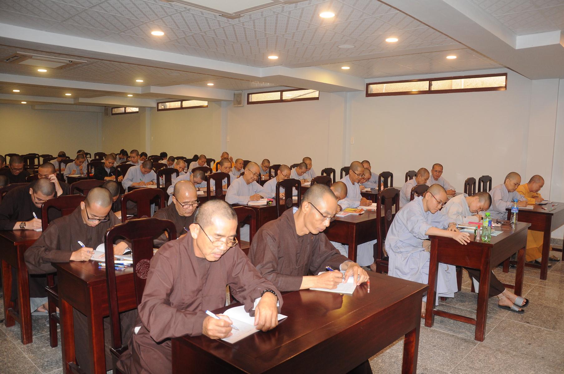 Sau cùng, Hòa thượng cho Tăng Ni sinh làm bài kiểm tra 15 phút tại lớp với hai câu hỏi đơn giản: Tăng Ni sinh hãy cho biết nhân duyên nào mình xuất gia và nguyện vọng của Tăng Ni sinh hiện nay là gì?.