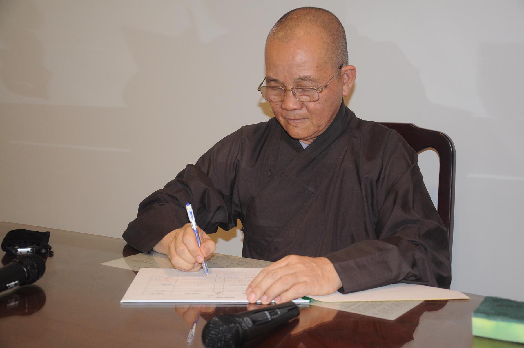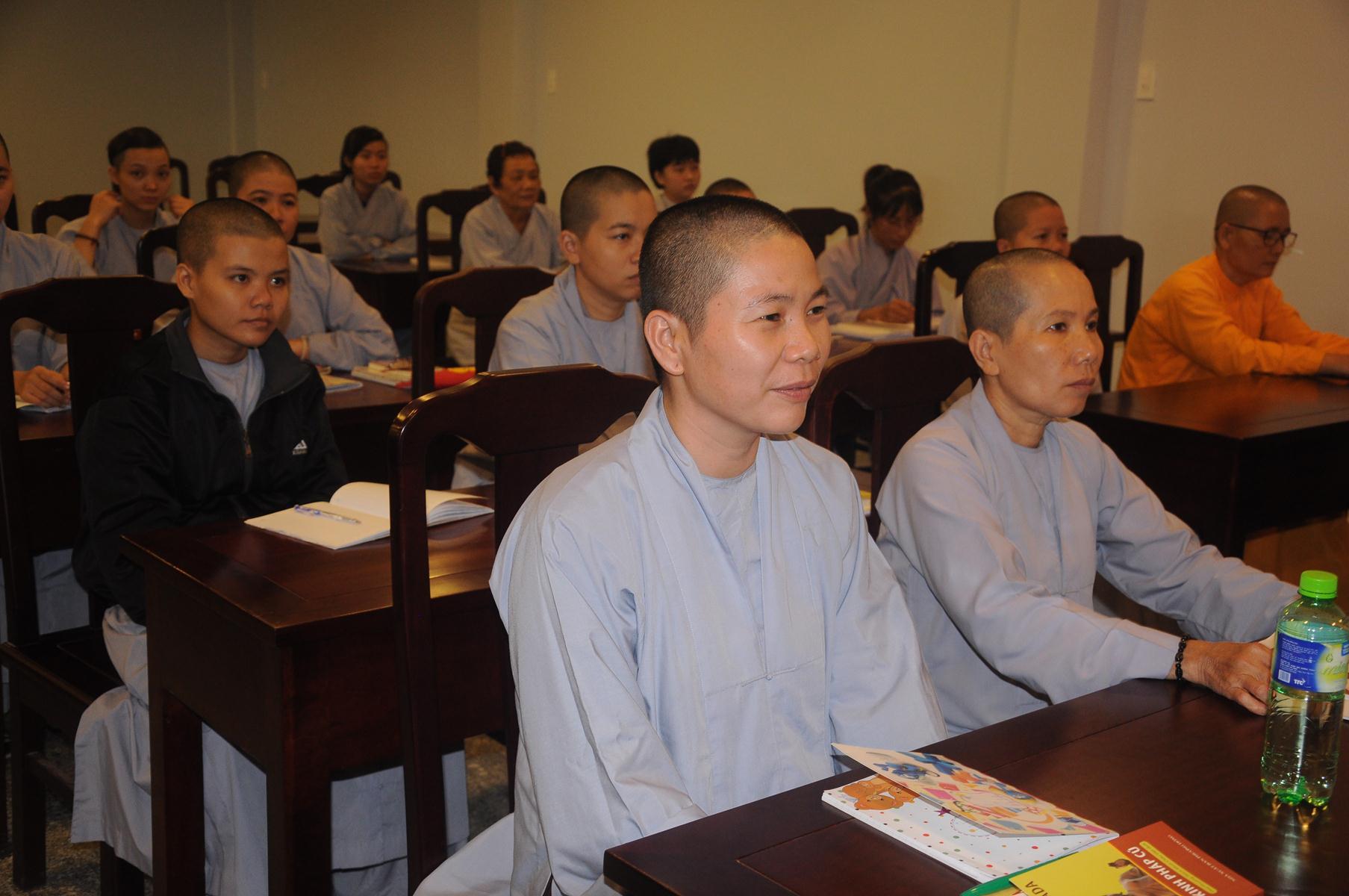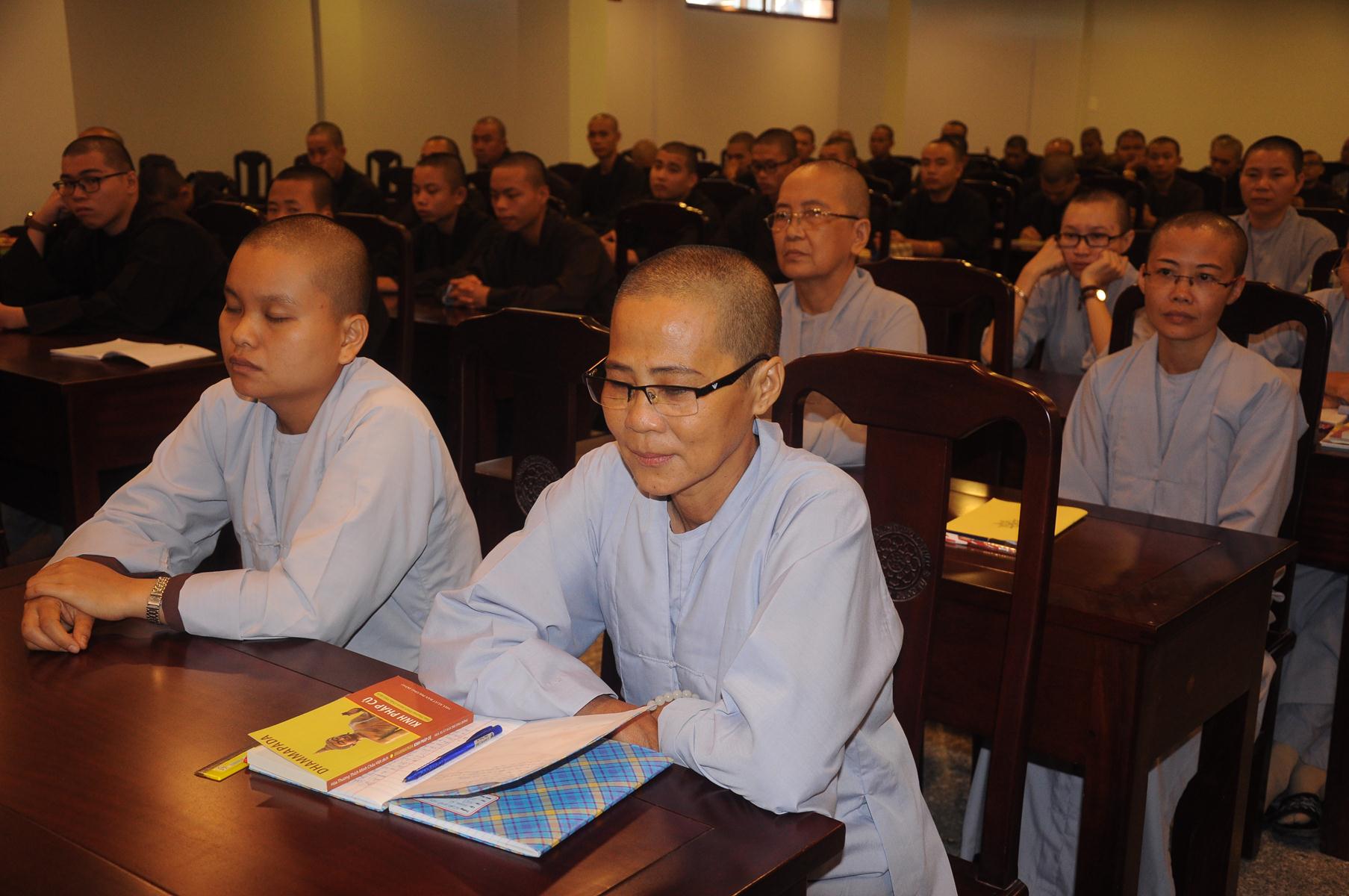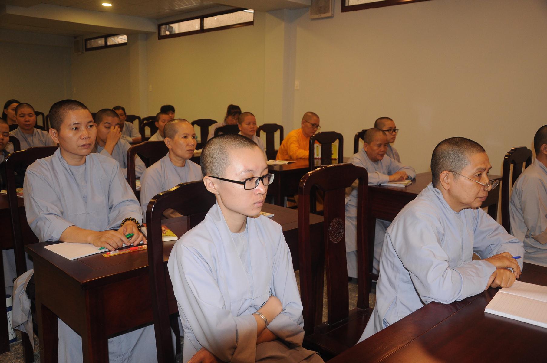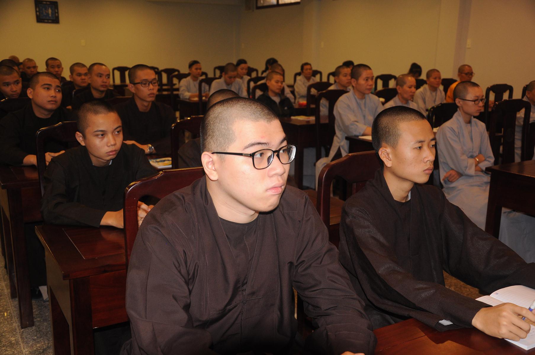 Sau cùng, Hòa thượng cho Tăng Ni sinh làm bài kiểm tra 15 phút tại lớp với hai câu hỏi đơn giản: Tăng Ni sinh hãy cho biết nhân duyên nào mình xuất gia và nguyện vọng của Tăng Ni sinh hiện nay là gì?.