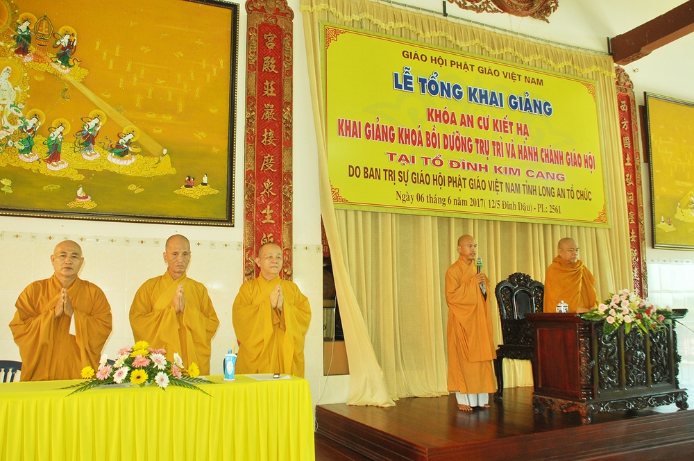 Tại khoá bồi dưỡng kiến thức trụ trì và hành chánh giáo hội do BTS GHPGVN tỉnh Long An tổ chức tại Tổ đình Kim Cang năm 2017, Phật lịch 2561, buổi giảng đầu tiên được cung nghinh HT Thích Giác Toàn – Phó Chủ Tịch Hội Đồng Trị Sự GHPGVN, Phó Thường Trực Ban Giáo Dục Tăng Ni TW GHPGVN, Phó Viện trưởng Thường trực Học Viện PGVN tại TP.HCM, Phó Tổng Biên Tập Báo Giác Ngộ, Giáo Phẩm Thường Trực Hệ Phái Khất sĩ, trụ trì Pháp Viện Minh Đăng Quang, quận 2 và Tịnh xá Trung Tâm, quận Bình Thạnh, Tp.HCM, đã hoan hỷ quang lâm thuyết giảng chủ đề “Trách nhiệm trụ trì trong định hướng tu tập, hoằng hóa trước thời duyên ”.