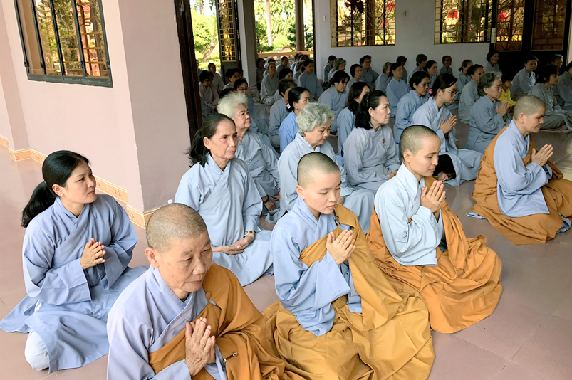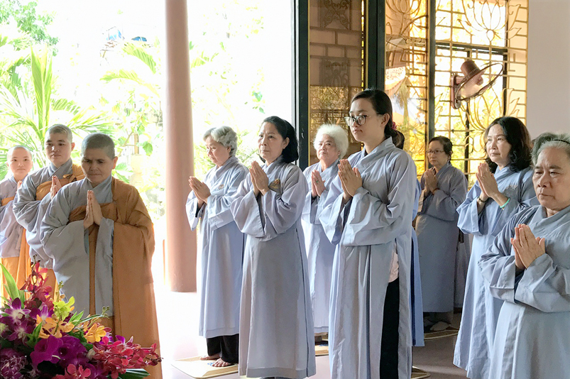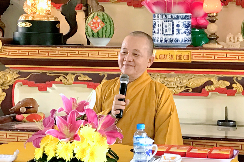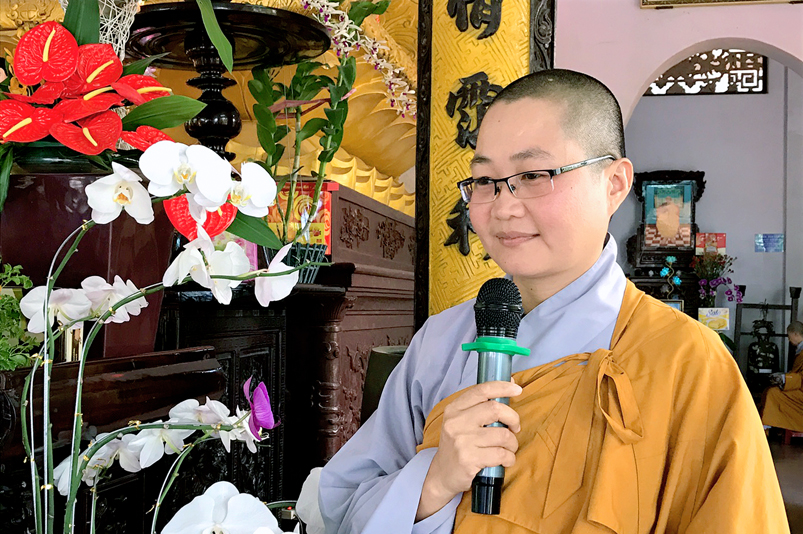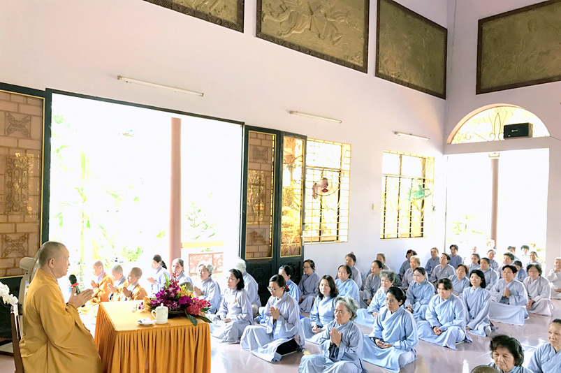 Hòa thượng thuyết giảng cho Ni chúng cùng đạo tràng Phật tử chùa Tôn Vân về sự thương yêu tương kính, về nét đặc thù trong sự tu tập của hai chúng tại gia cùng xuất gia. Là người đệ tử Phật, cần phải thiết lập được mối tương quan, tương duyên với xã hội theo tinh thần duy tuệ thị nghiệp mà đức Thế Tôn đã dạy, vì tất cả vạn vật trên cõi đời này, đều tồn tại mật thiết với nhau theo định luật nhân duyên quả. Hòa thượng chỉ ra con đường an vui nhất đó chính là con đường lấy sự an vui của mọi người làm sự an vui của chính mình. Theo Phật Học Giáo Khoa Thư, Hòa thượng dạy cho hàng Phật tử cách tu tập chuyển đổi nghiệp lực của mình, ý thức được nổi khổ niềm đau của cuộc đời đều khởi đầu bởi tham, sân và si, thể hiện qua hành vi của thân, khẩu, ý, nên cần lấy bố thí để đối trị tham lam, lấy nhẫn nhục dập tắt lửa sân hận, lấy học hỏi đập tan si mê. Hòa thượng dạy về công đức quy y Tam Bảo và hành trì Ngũ giới, Ngài vạch ra con đường tu tập để được vãng sanh về Thế Giới Cực Lạc qua phương pháp luyện tâm, nhiếp niệm theo câu niệm Phật “ miệng niệm, tai nghe và trí nhớ” đây là một phương pháp dễ thực hành, cho cả kẻ bận rộn lẫn người nhàn rỗi, cho người lớn tuổi hay thanh thiếu niên.