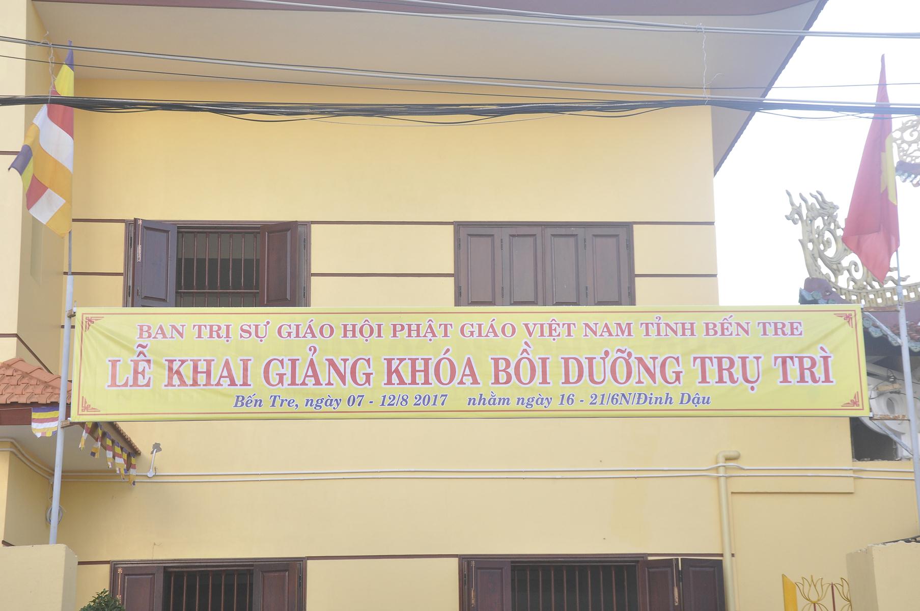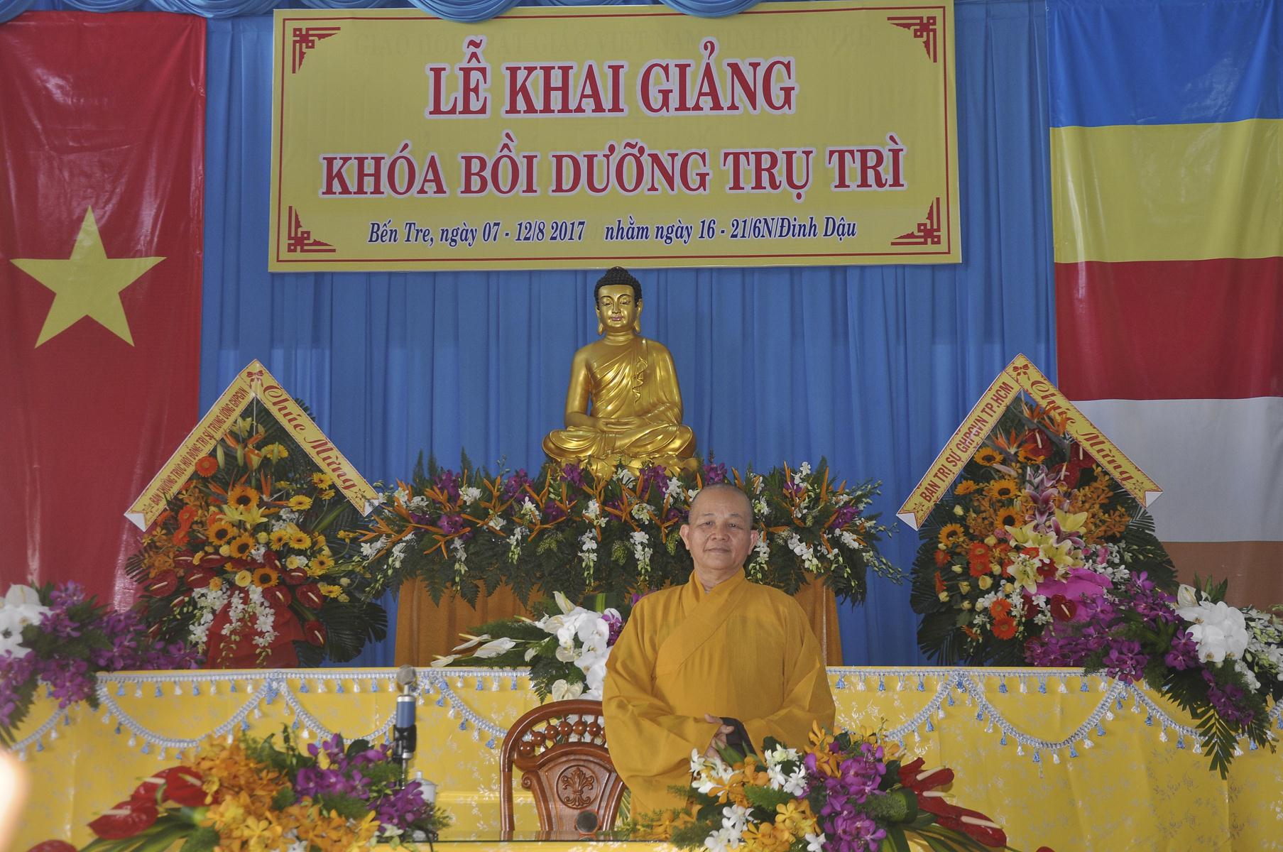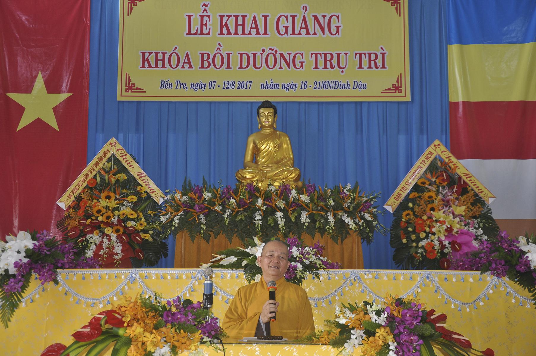 Sáng ngày 08 tháng 8 năm 2017 (nhằm 17/6 nhuần/Đinh Dậu), theo sự thỉnh cầu của Ban Tổ chức HT Thích Minh Thiện: Ủy viên Hội đồng Trị sự GHPGVN, Phó Trưởng ban Hoằng pháp TƯ, Trưởng ban Trị sự GHPGVN tỉnh Long An có thời pháp thoại cho Chư Tôn đức Tăng Ni khóa Bồi dưỡng Trụ trì tại Hội trường văn phòng Ban Trị sự GHPGVN tỉnh Bến Tre; chùa Viên Minh, số 1, Nam Kỳ Khởi Nghĩa, P2, Tp Bến Tre.