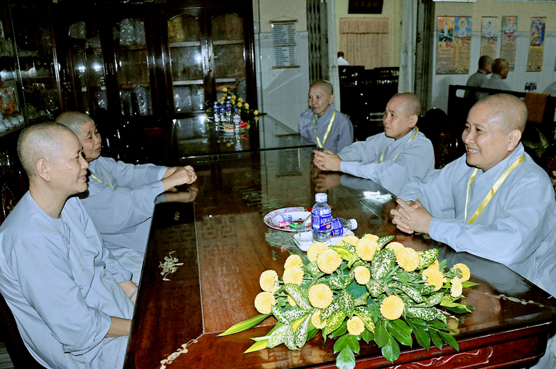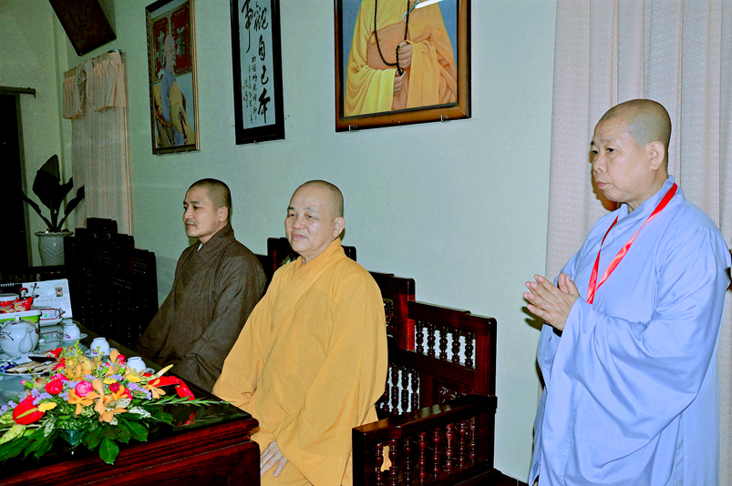 Sau khi đảnh lễ chư vị Tổ sư tiền bối khai sơn tại Ni Viện Thiên Phước, với chất giọng trầm ấm, với ánh nhìn từ bi và nụ cười thân thiện, HT Trưởng ban đã gởi lời thăm hỏi và lời cầu chúc sức khỏe, cầu chúc mọi điều tốt lành đến với Ban tổ chức Giới đàn cũng như toàn thể giới tử ni tại Ni Viên Thiên Phước