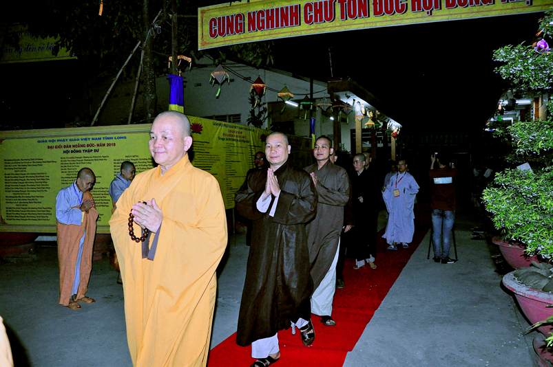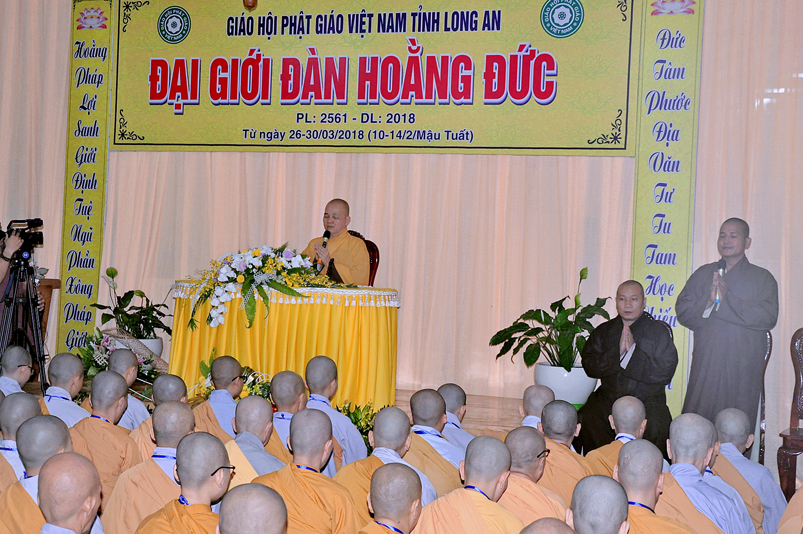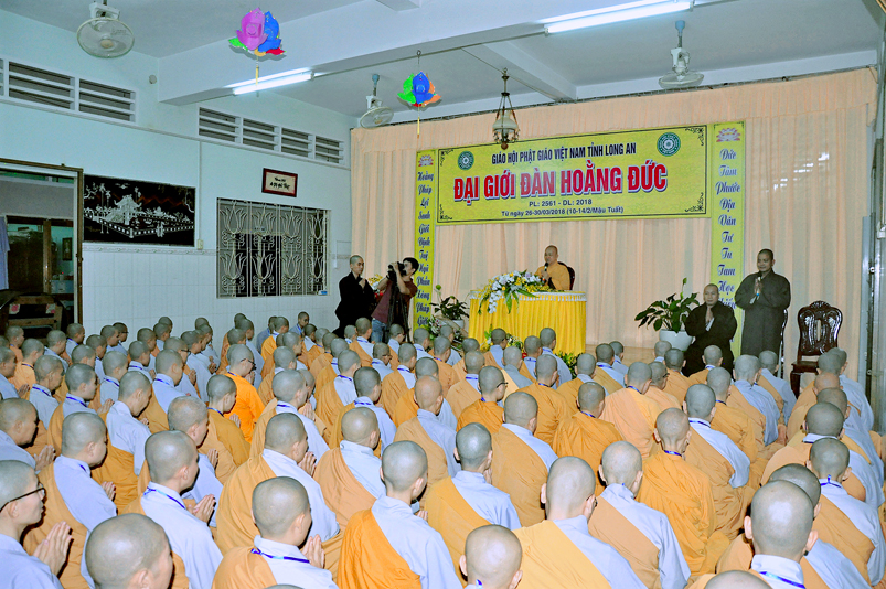 Hôm nay, ngày 26/03/2018, vào lúc 19 giờ, tất cả Ban tổ chức cũng như tất cả giới tử tại Ni Viện Thiên Phước, y hậu trang nghiêm, cung đón Chư tôn đức Ban lãnh đạo giáo Hội Phật giáo Tỉnh Long An gồm: HT.Thích Minh Thiện, Ủy viên HĐTS, Trưởng BTS kiêm Trưởng ban Tăng sự GHPGVN tỉnh Long An, Trưởng ban Tổ chức Đại Giới Đàn Hoằng Đức, Đại đức Thích Phước Hoàng- Phó ban trị sự GHPGVN tỉnh Long An; Đại đức Thích Lệ Duyên – Chánh thư ký BTS GHPGVN tỉnh Long An cùng chư tôn đức tăng trong ban tổ chức giới đàn vào thắm viếng.