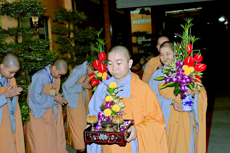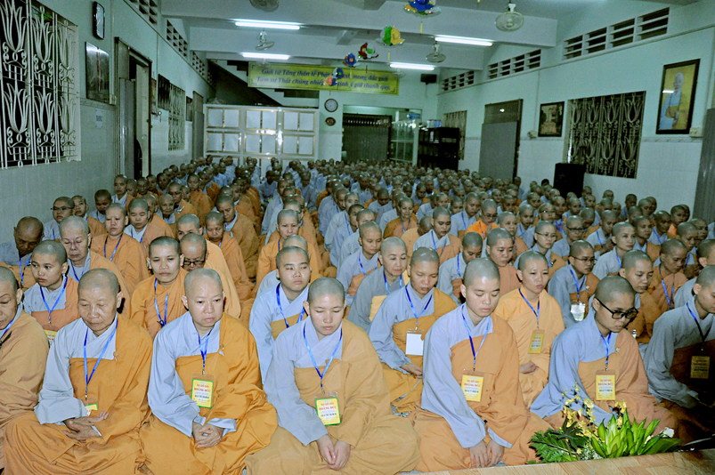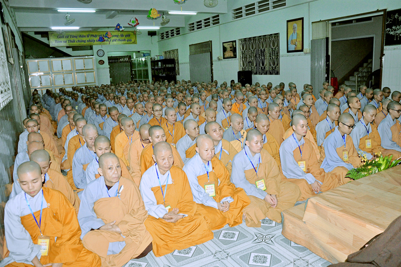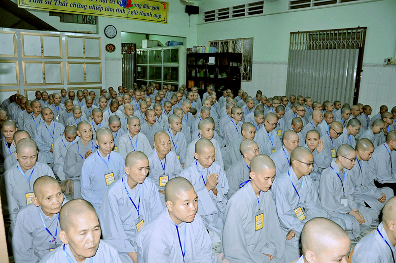 Với số lượng giới tử khá đông, Trai đường I Ni Viên Thiên Phước không đủ sức chứa, Ban quản giới tử phải sắp xếp ghế ngoài hành lang cho giới tử ngồi