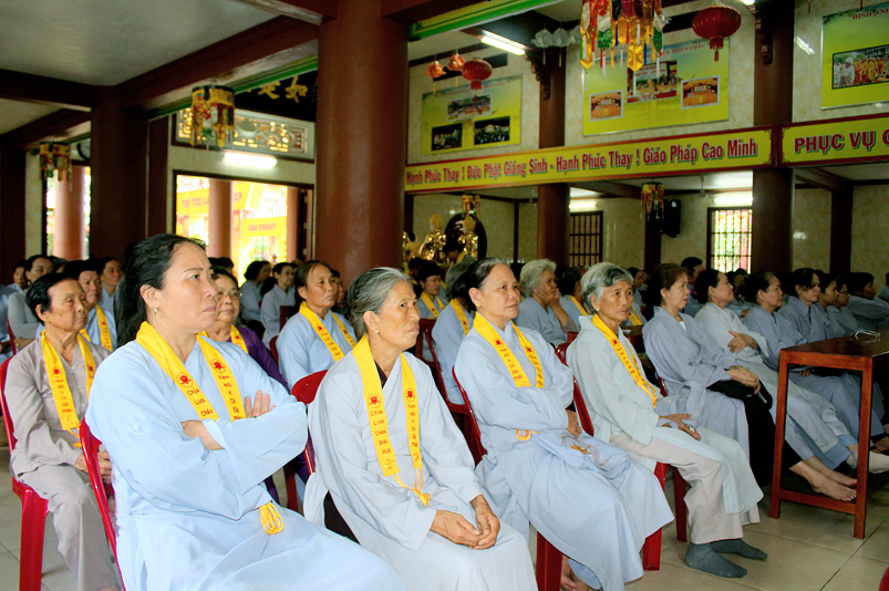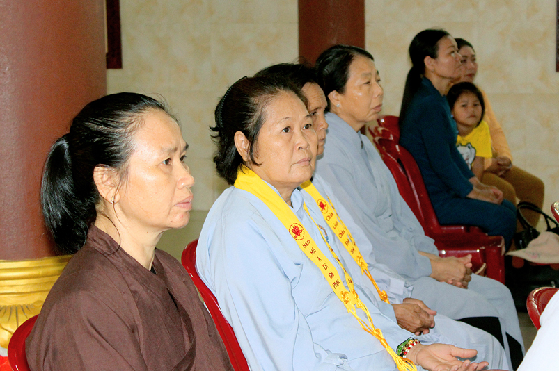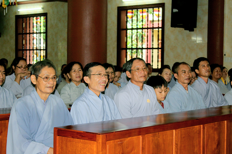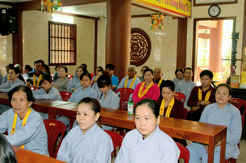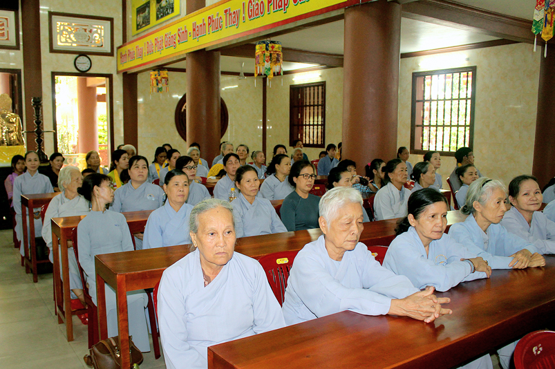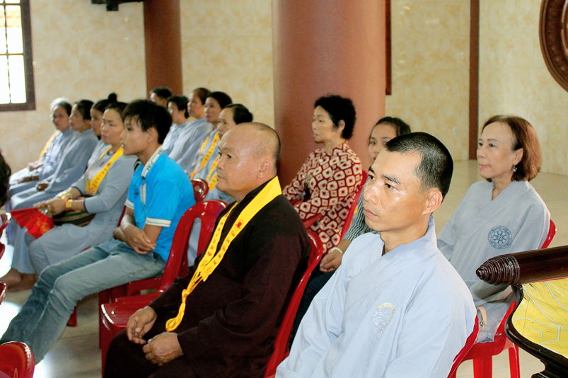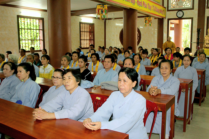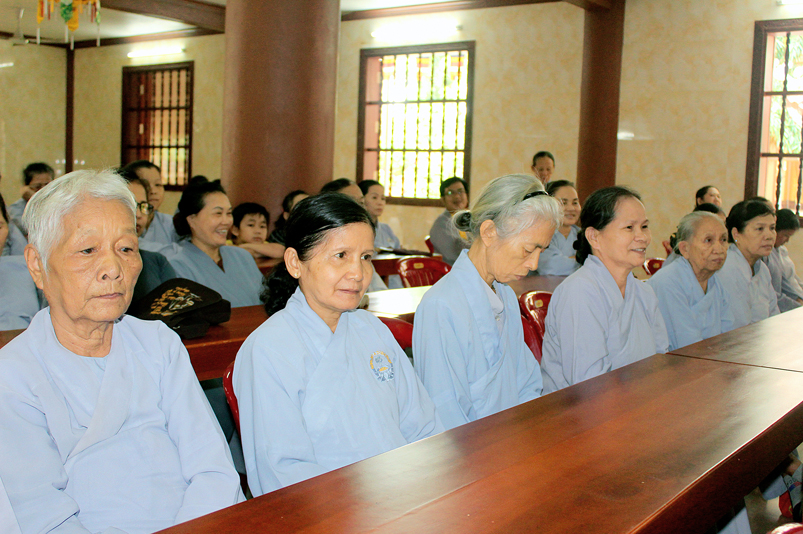 Buổi chiều, buổi tọa đàm Phật pháp rất ý nghĩa. Đại diện ban Hoằng pháp để giải đáp những nghi vấn của Phật tử, ngoài Đại đức chủ nhiệm, còn có ĐĐ. Thích Huệ Phát – UV Ban Hoằng pháp tỉnh, Trưởng ban Hoằng pháp huyện Tân Trụ và SC. Thích nữ An Diệu – Phó Thư ký Ban Hoằng pháp tỉnh. Buổi tọa đàm này tạo sự hoan hỷ của quý Phật tử .